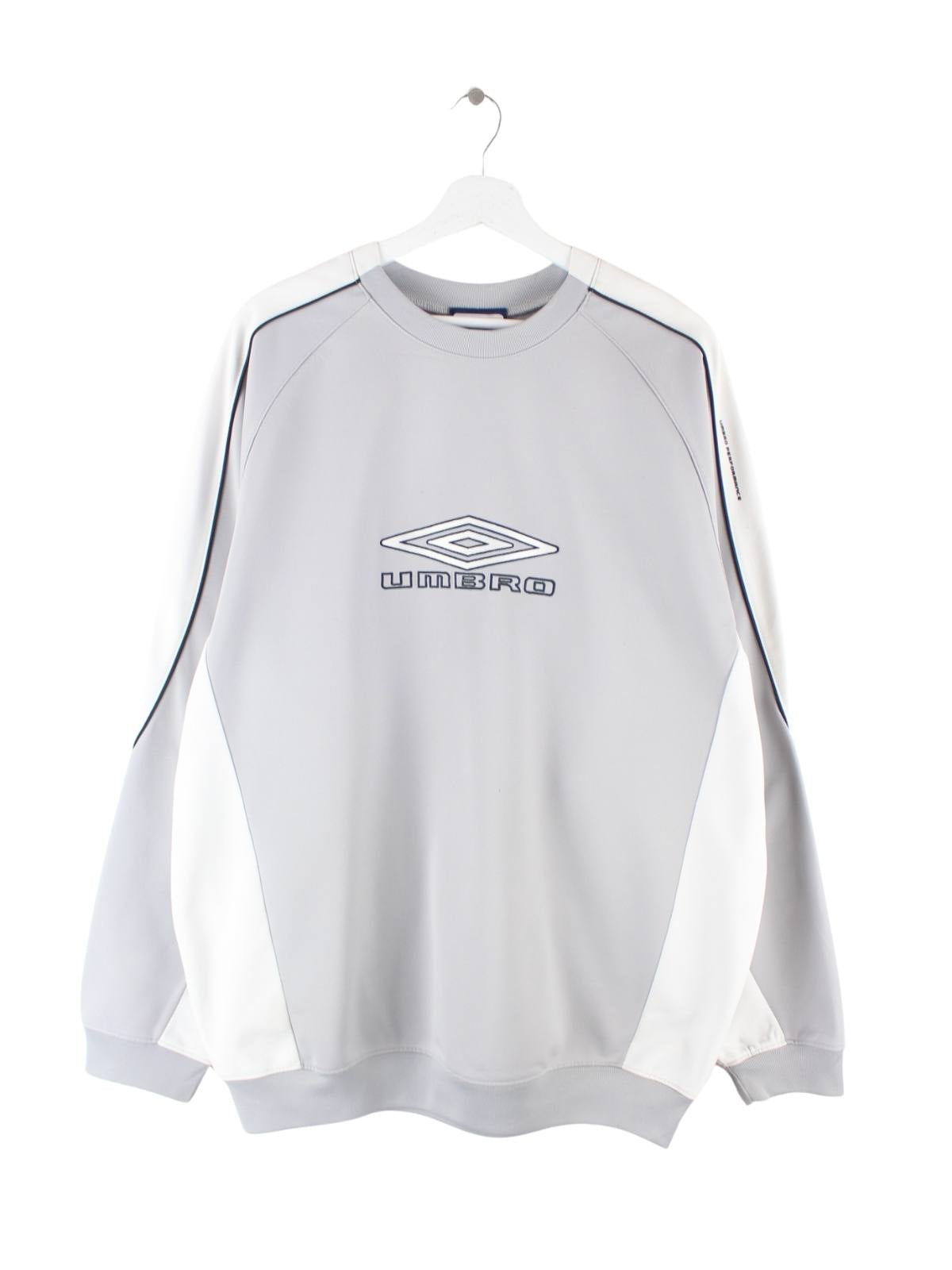 Sweater der Marke Umbro mit Stick in Größe XXL aus den 90'ern. Er ist aus Synthetik hergestellt und in Grau vorrätig.