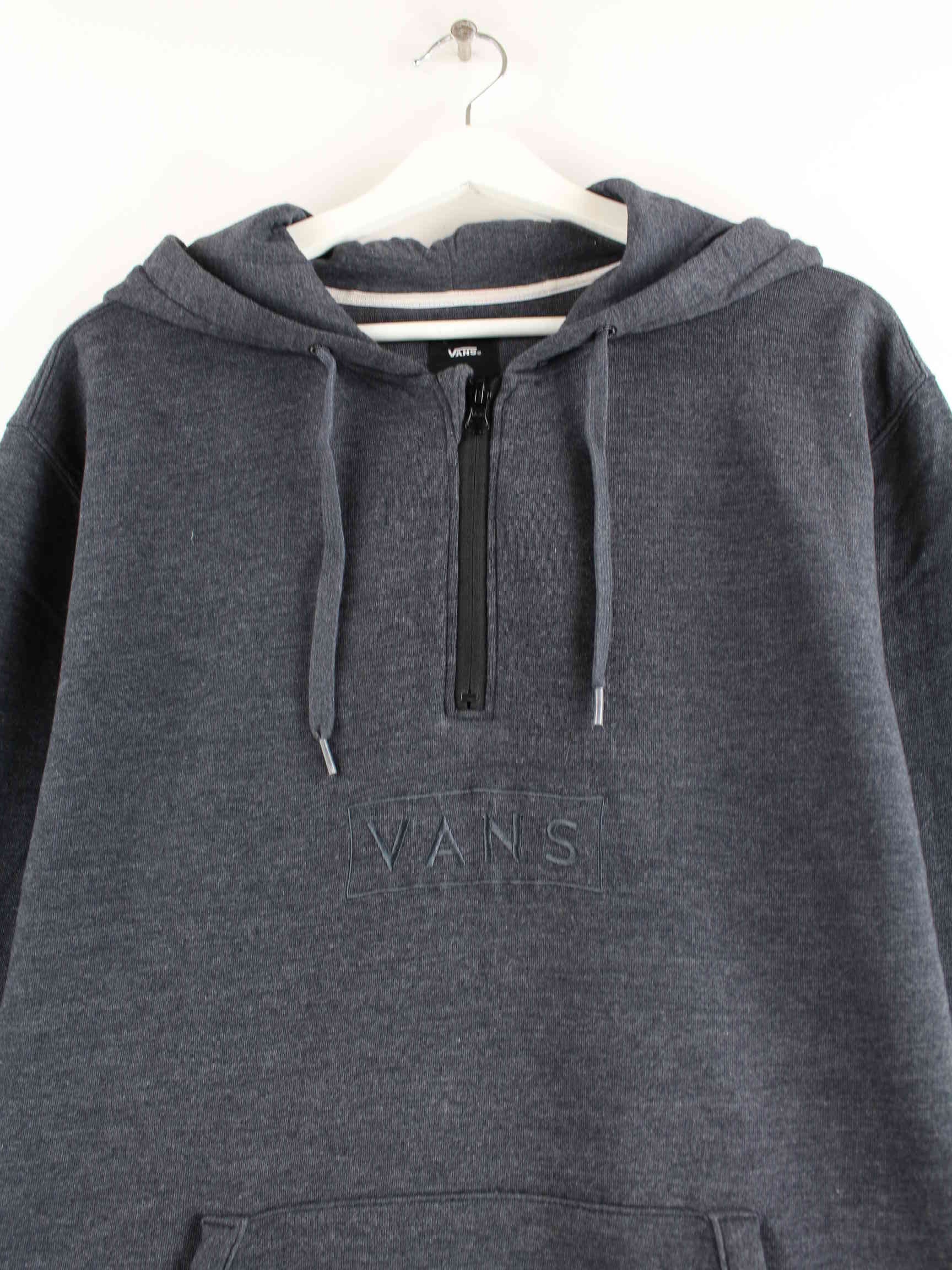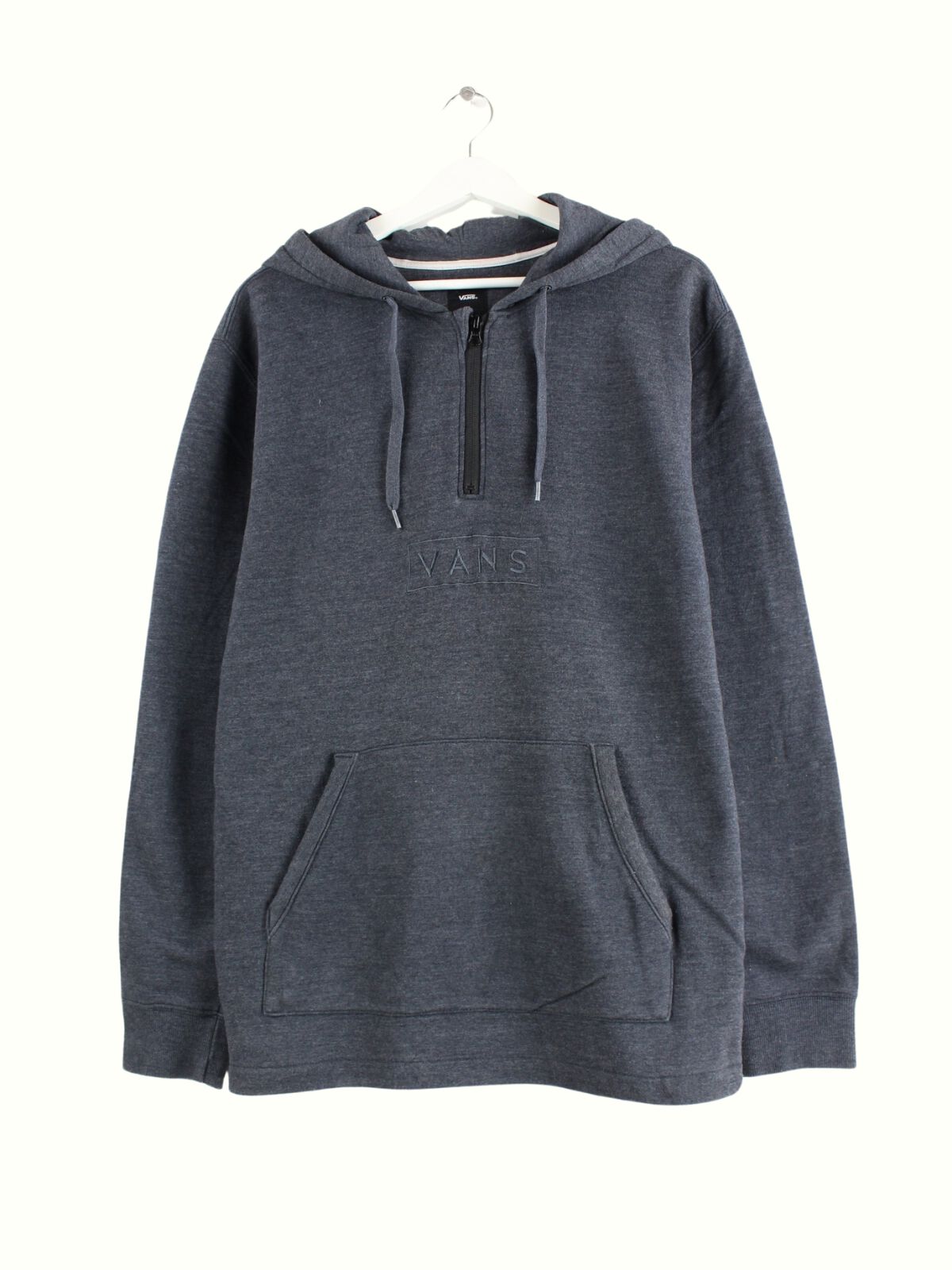 Hoodie vom Label Vans mit Stick und halbem Reißverschluß in Größe L. Er ist aus einer Baumwollmischung hergestellt und in Blau im Bestand.