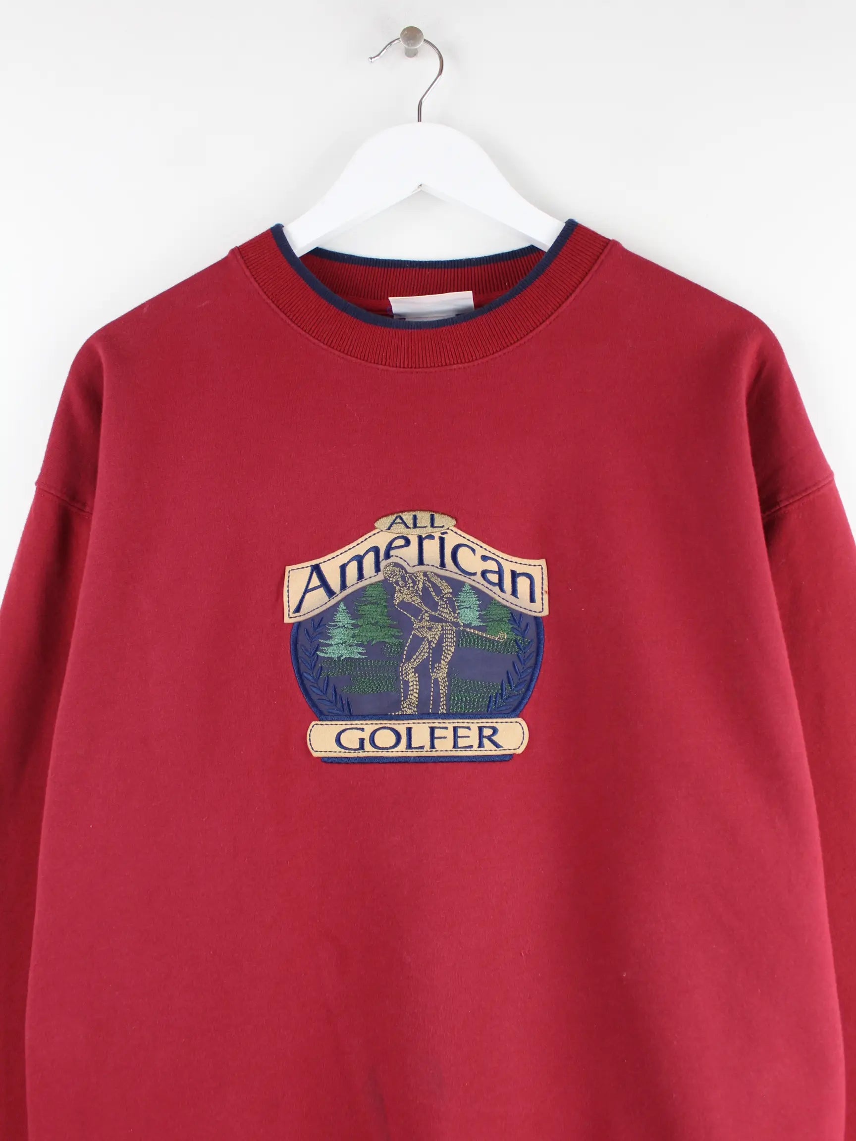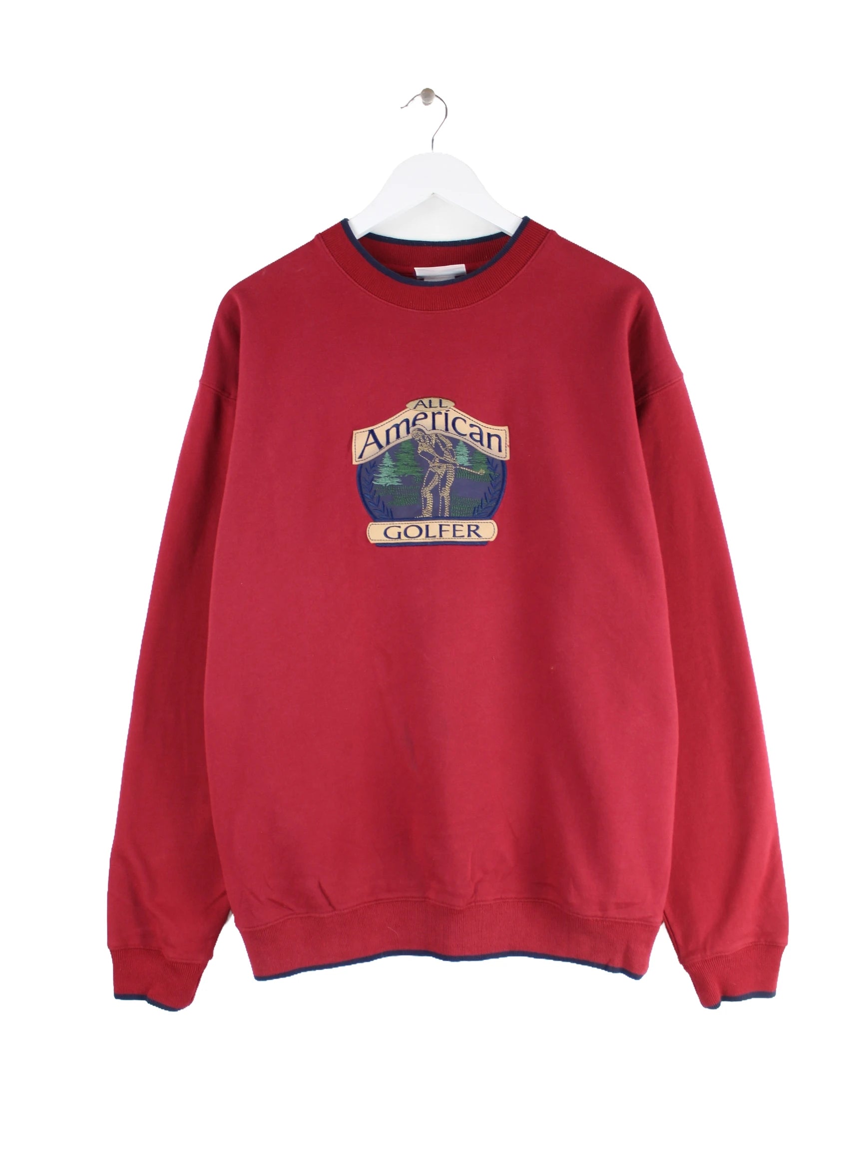 Roter Vintage Sweater in Größe L. Er ist aus einer Baumwollmischung gemacht und in gutem Zustand zu haben.