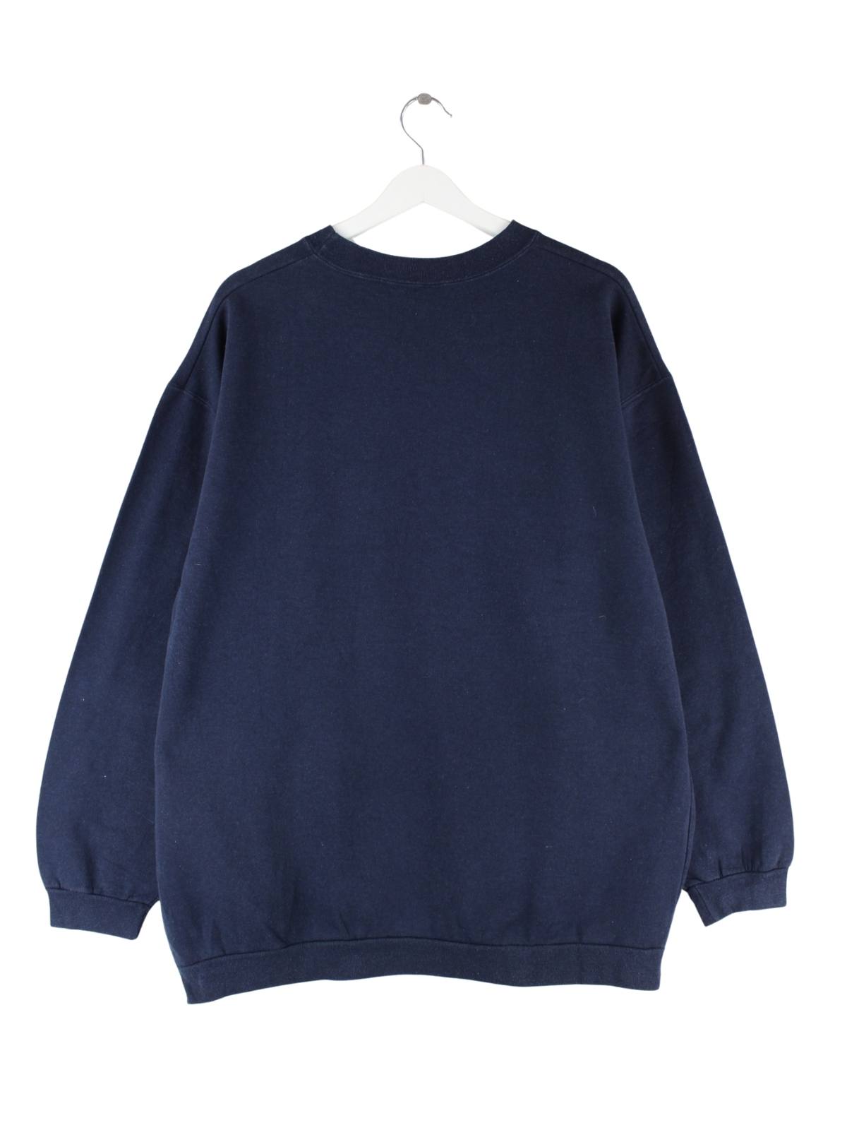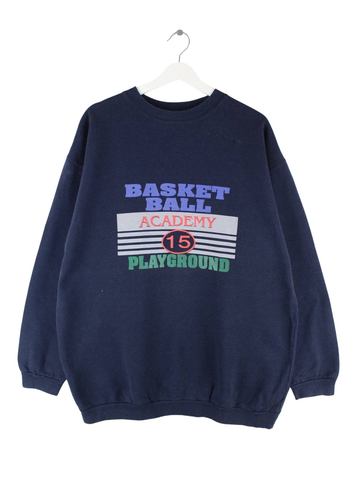 Blauer Vintage Sweater in Größe XL. Er ist aus einer Baumwollmischung und in gutem Zustand vorrätig. Mit chiquem Basketball Print.