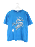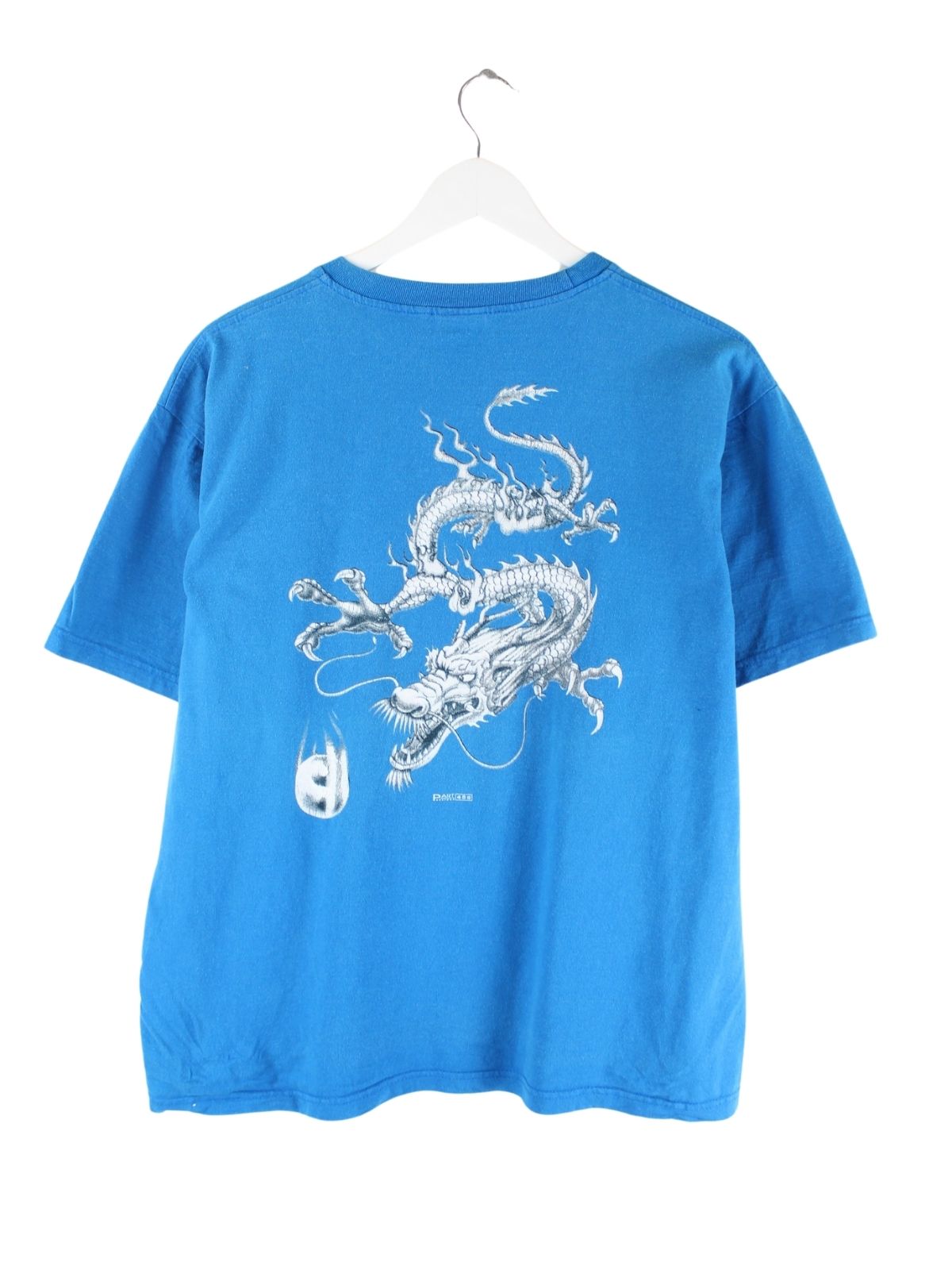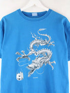 Vintage T-Shirt in Größe M. Es ist aus Baumwolle produziert und in Blau lieferbar. Mit schickem Dragon Print.