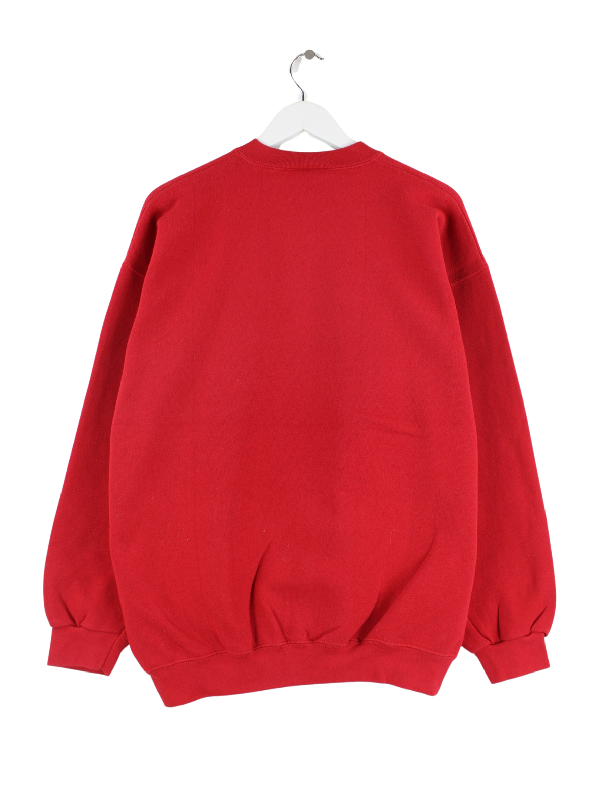 Roter Vintage Sweater mit Stick in Größe XL. Er ist aus einer Baumwollmischung und in sehr gutem Zustand in Stock.