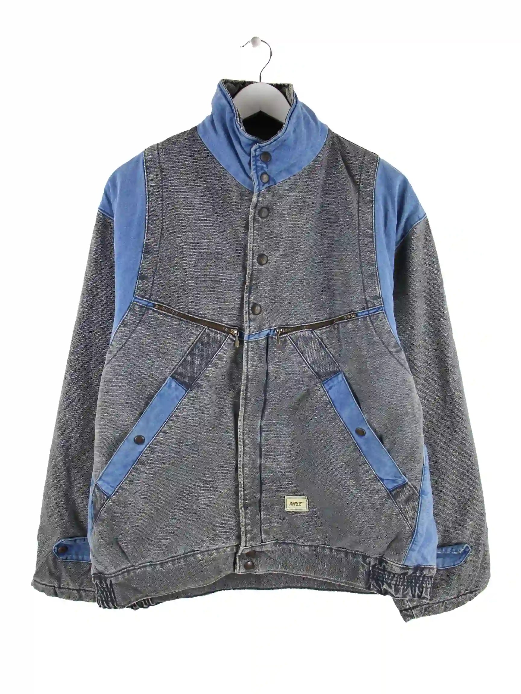 Graue Vintage Jacke aus den 80'ern in Größe L. Sie ist aus Baumwolle produziert und in sehr gutem Zustand lieferbar.