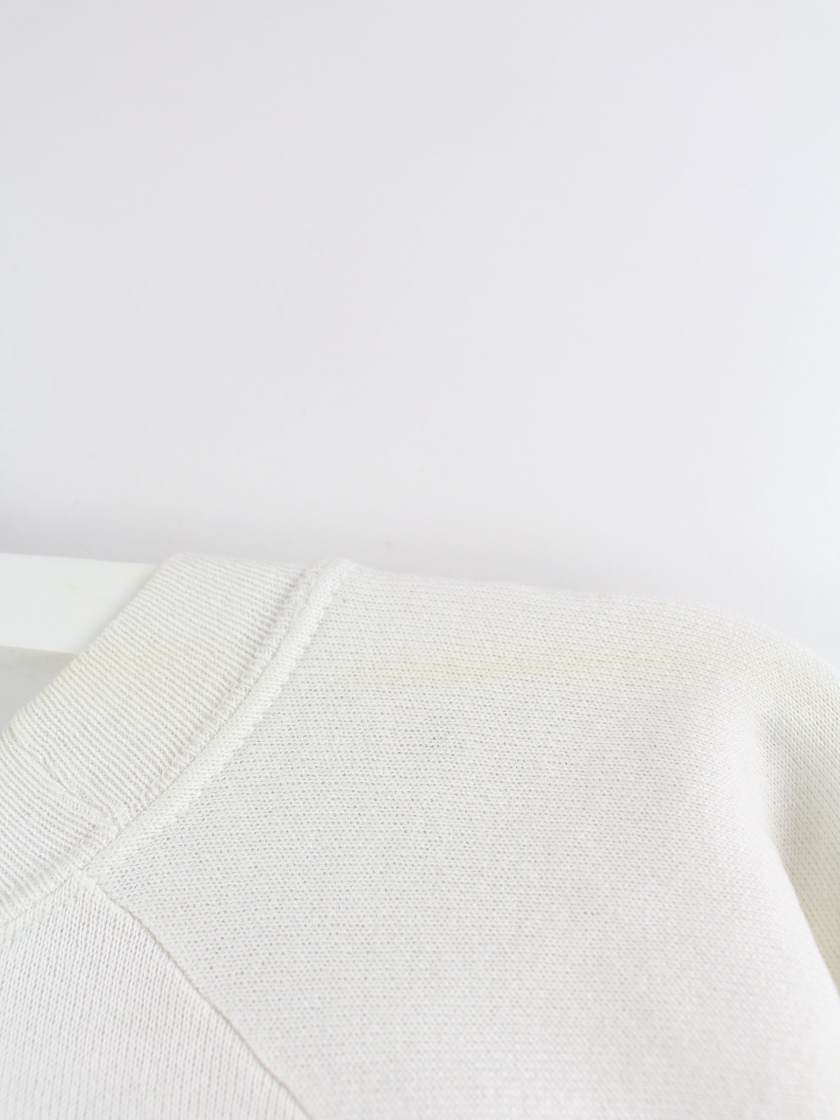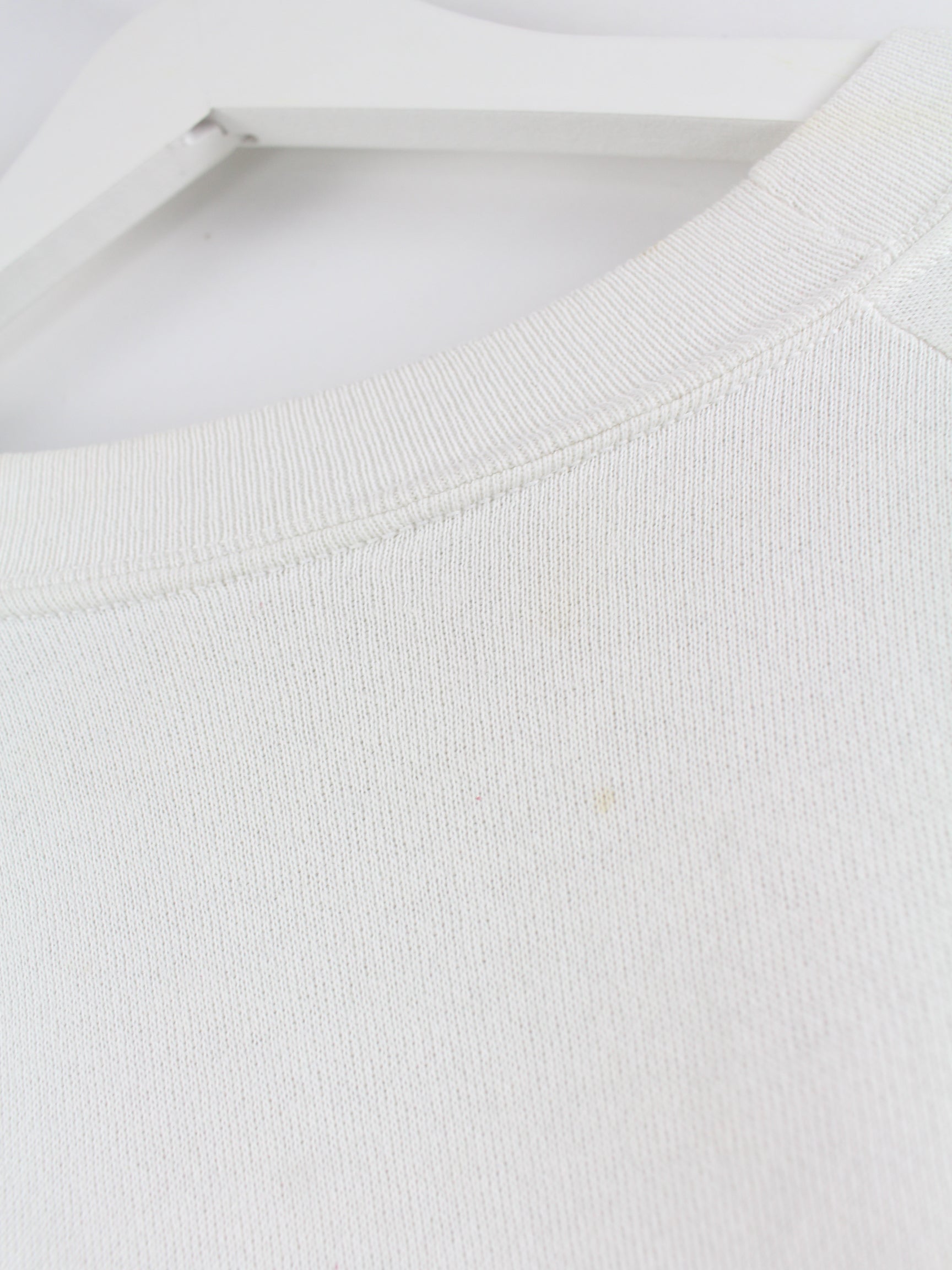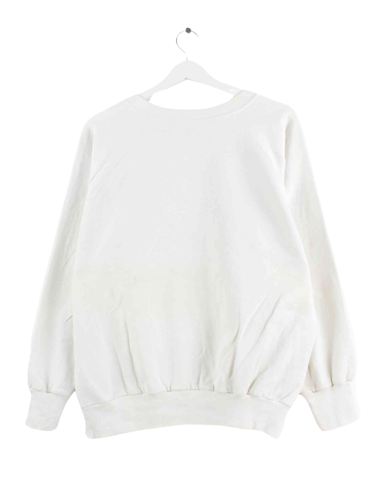 Weißer Vintage Sweater aus den 80'ern in Größe M. Er ist aus einer Baumwollmischung gefertigt und in gutem Zustand bei uns zu bekommen.