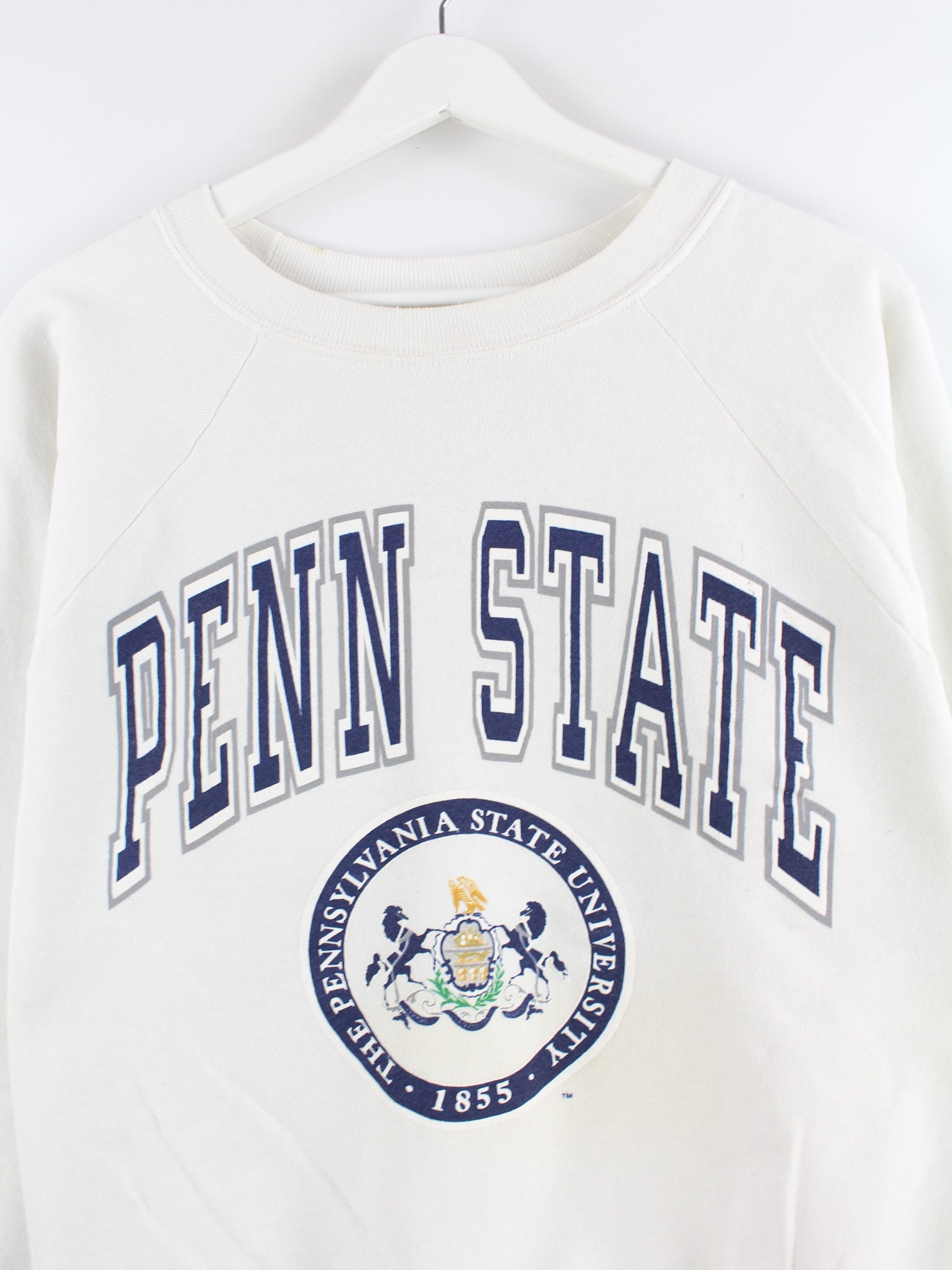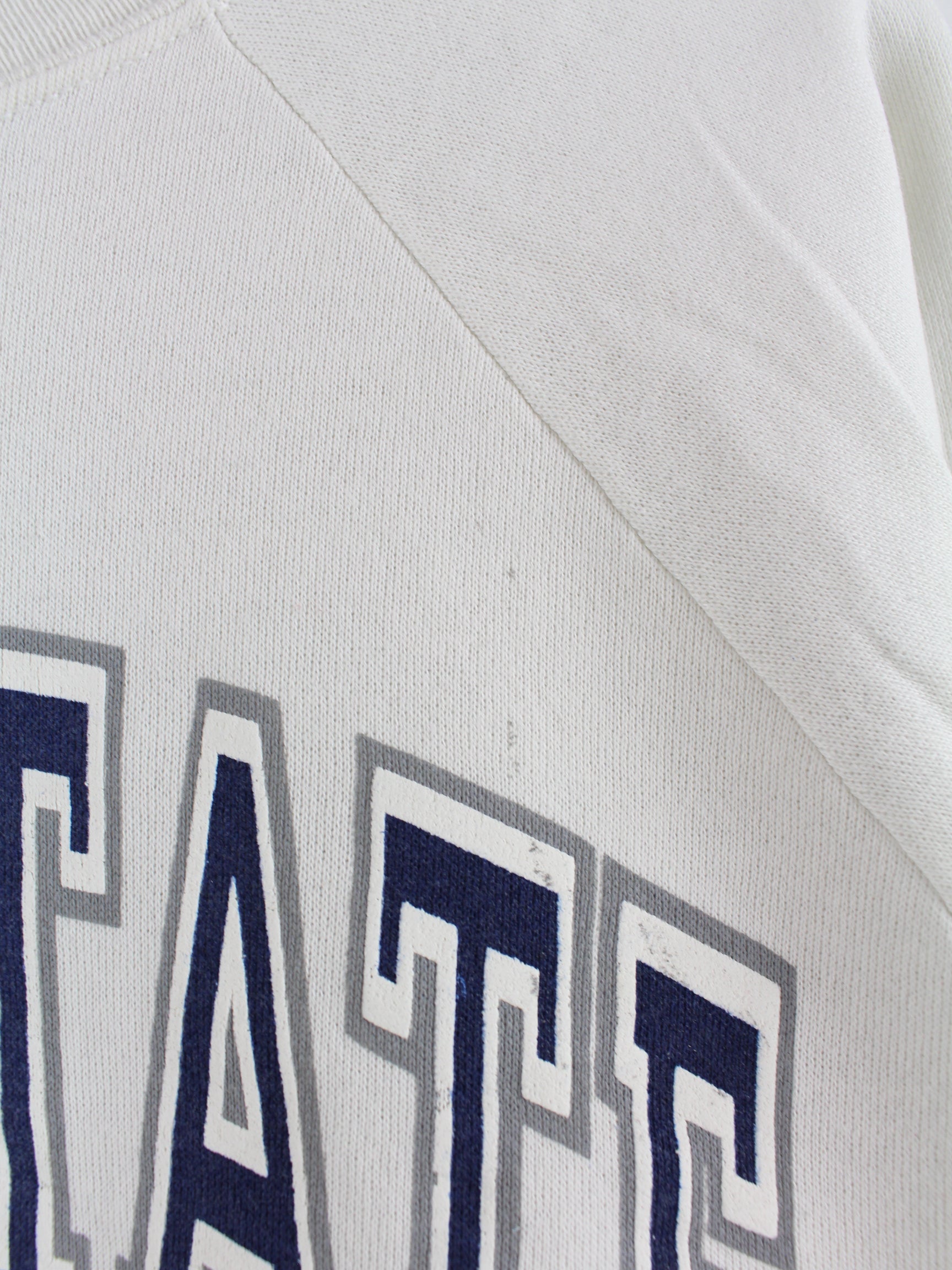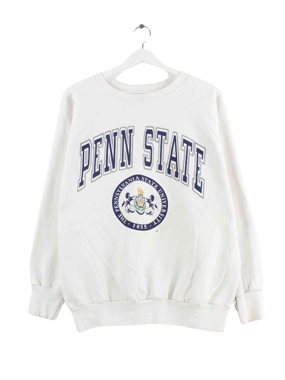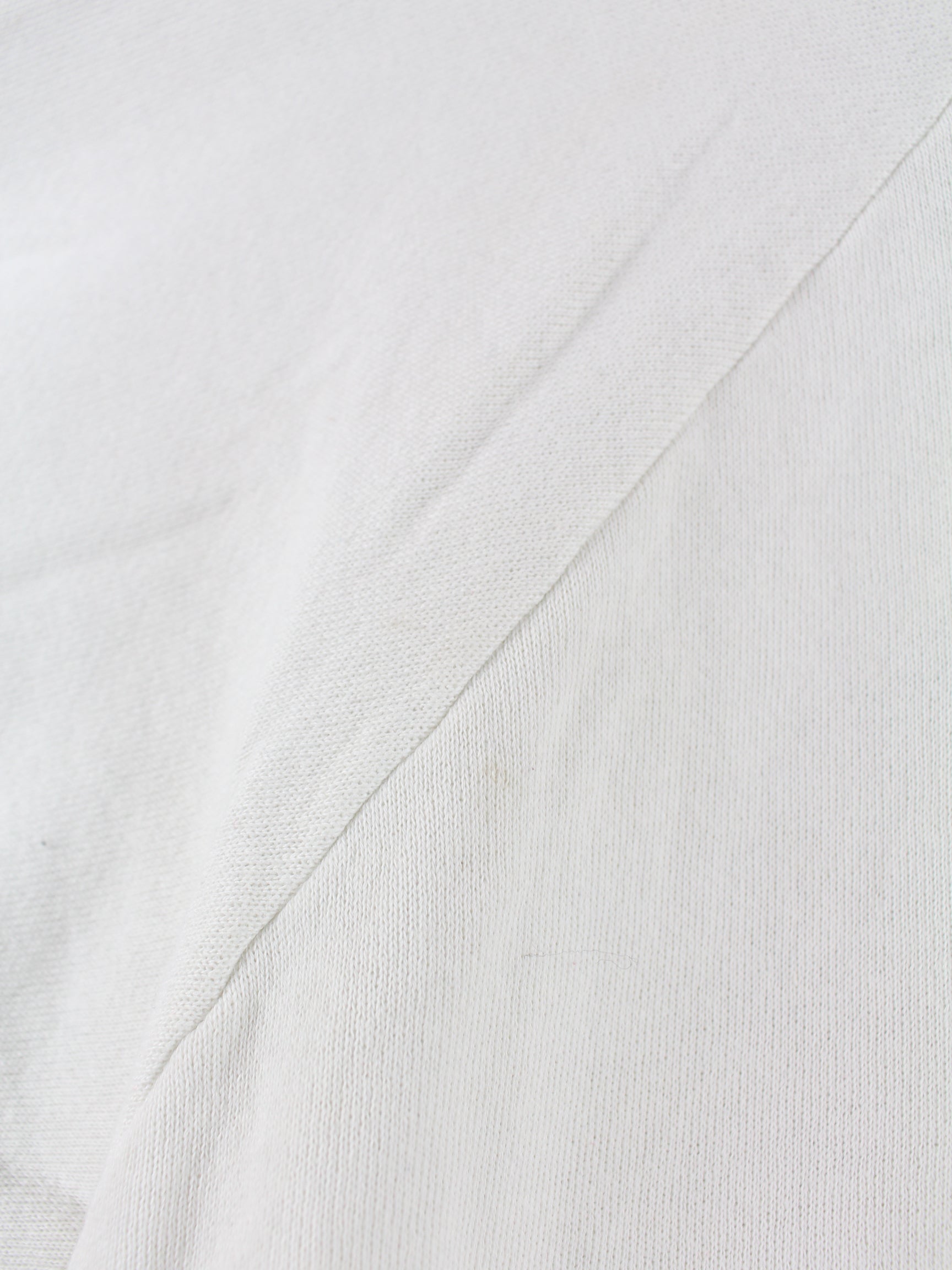 Weißer Vintage Sweater aus den 80'ern in Größe M. Er ist aus einer Baumwollmischung gefertigt und in gutem Zustand bei uns zu bekommen.