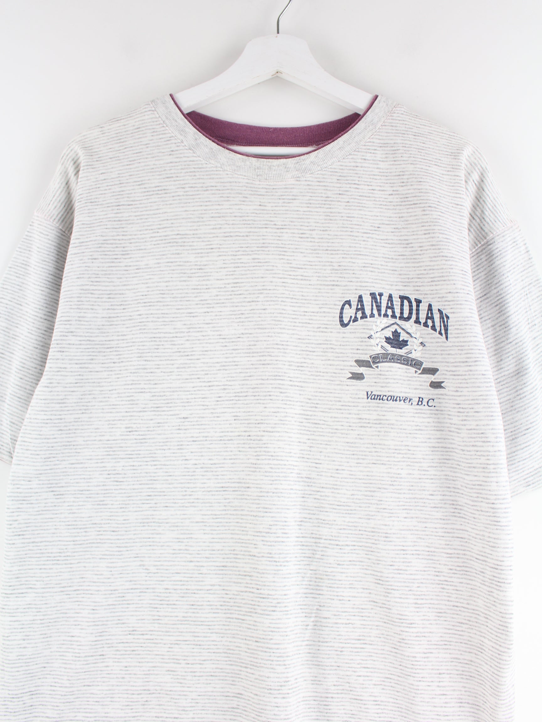 Vintage T-Shirt in Größe XL aus den 90'ern. Es ist aus Baumwolle produziert und in Grau zu bekommen. Mit schickem Canadian Print.