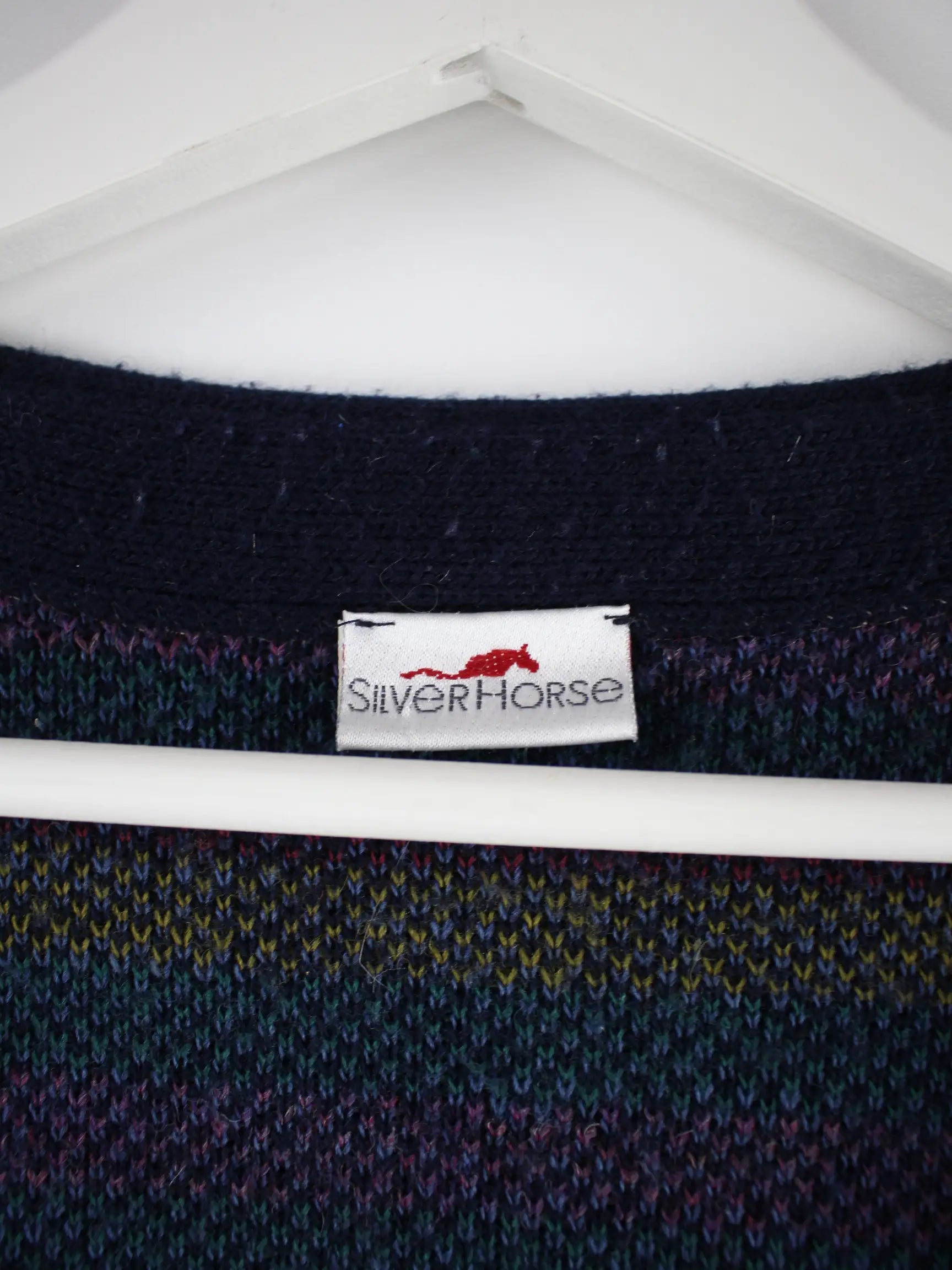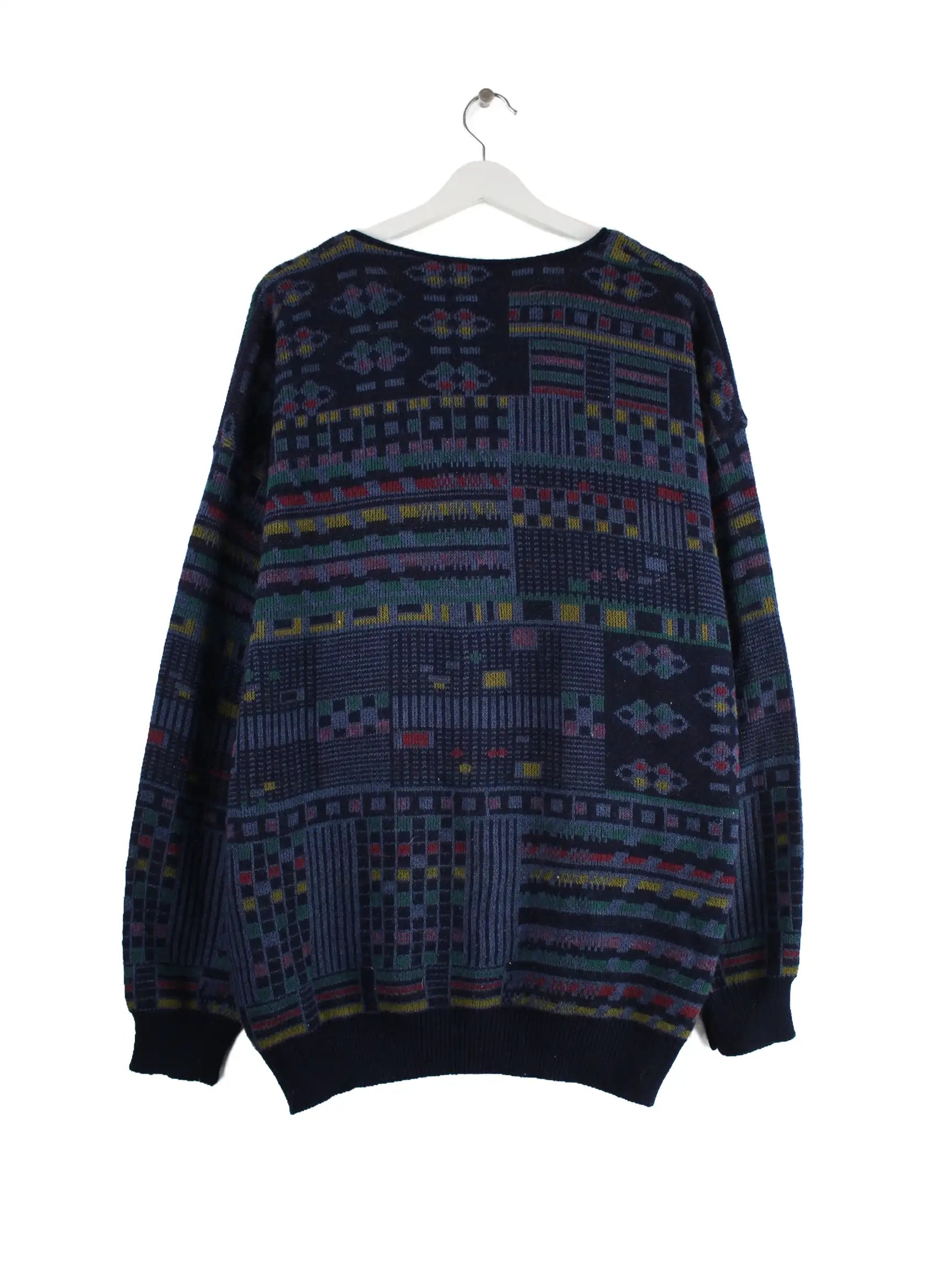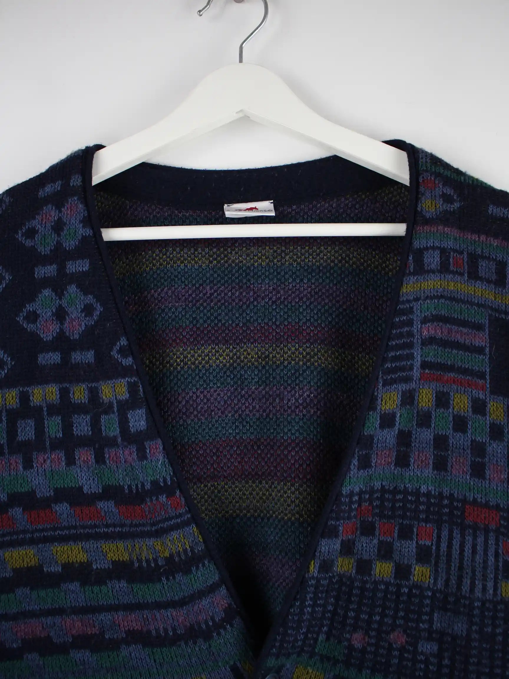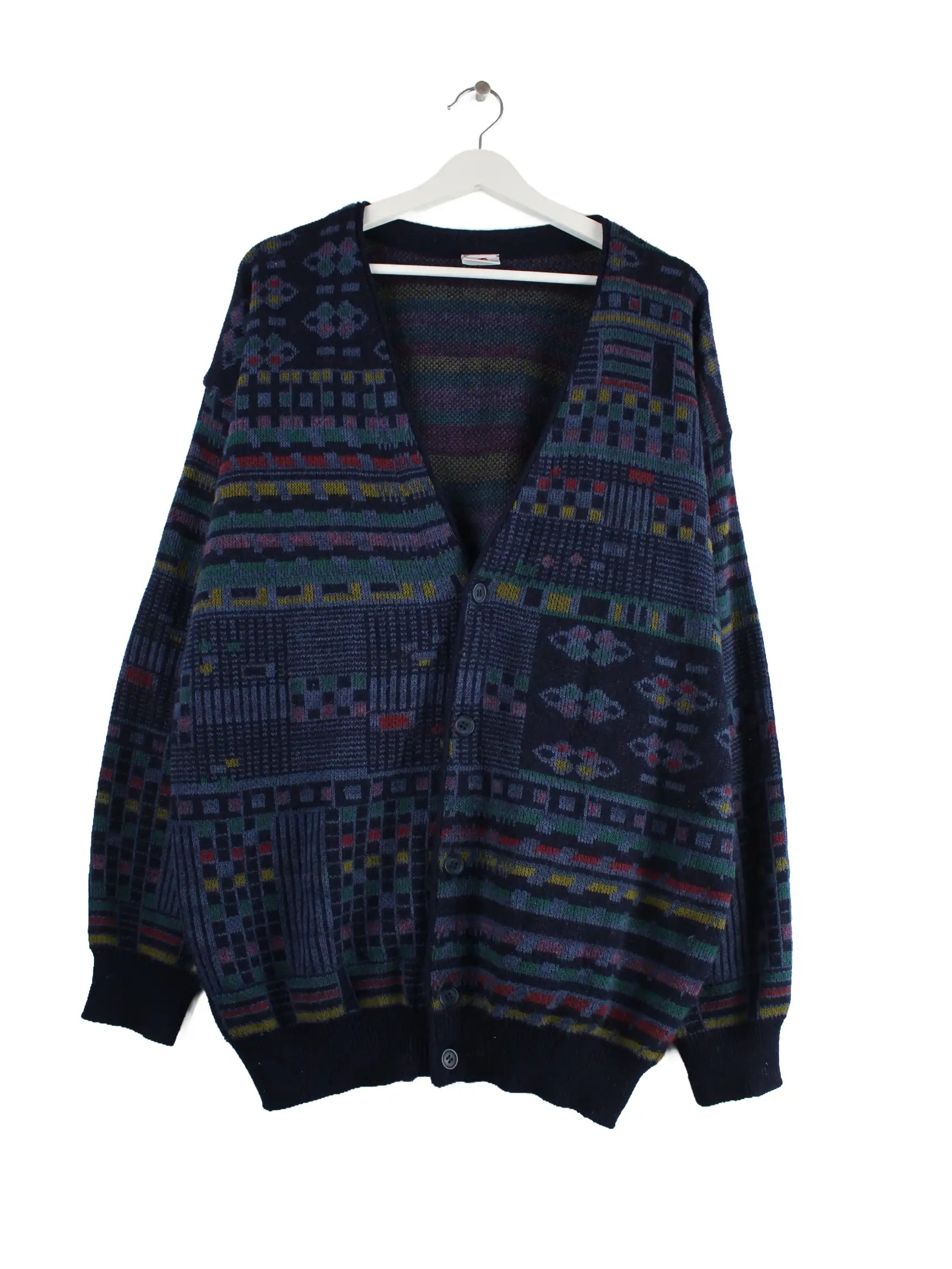 Blaue Vintage Strickjacke aus den 90'ern in Größe XXL. Sie ist aus Acryl gefertigt und in gutem Zustand vorrätig.