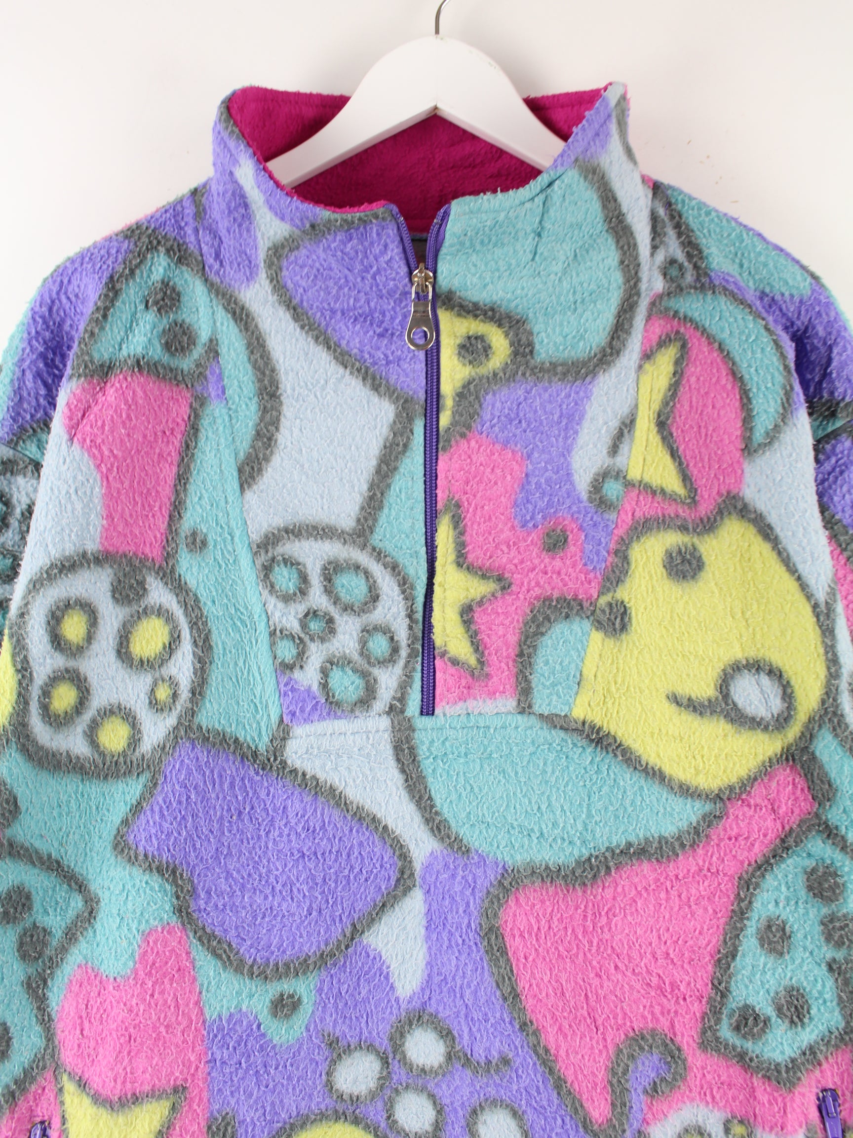 Vintage 90s Crazy Pattern Half Zip Fleece Sweater Mehrfarbig L