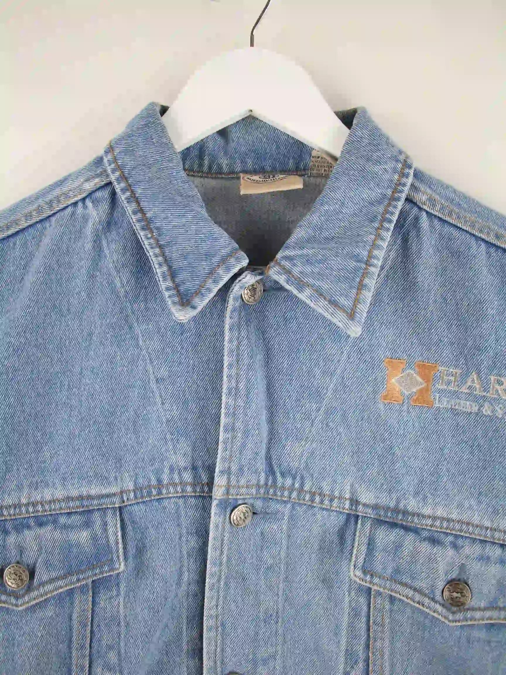 Blaue Vintage Jacke aus den 90'ern in Größe M. Sie ist aus Baumwolle gefertigt und in gutem Zustand im Angebot.
