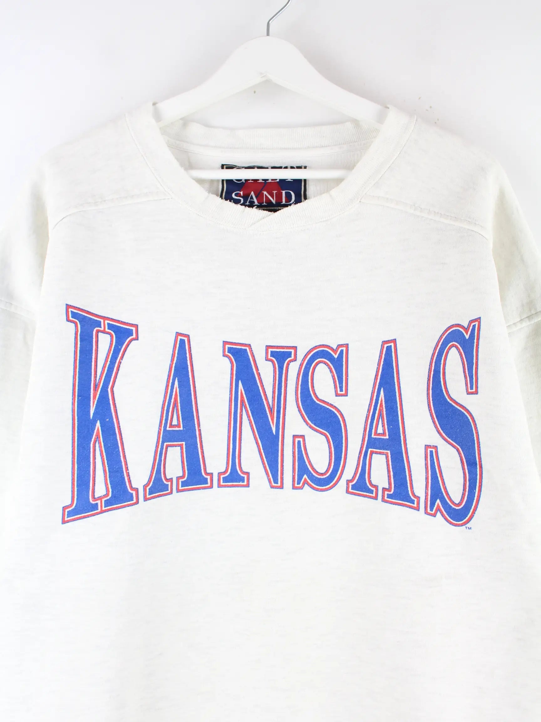 Vintage 90s Kansas Jayhawks Print Sweater Grau XL