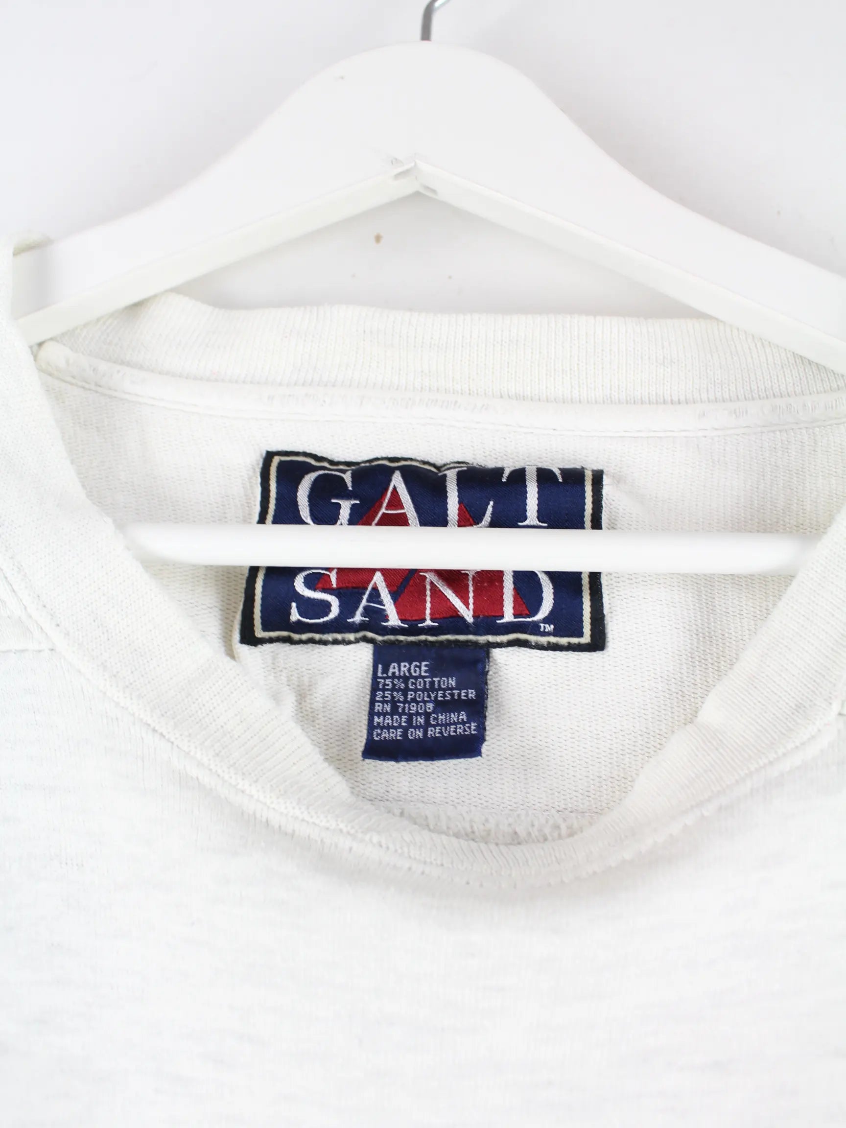 Grauer Vintage Sweater aus den 90'ern in Größe XL. Er ist aus einer Baumwollmischung und in gutem Zustand lieferbar. Mit schickem Jayhawks Print.