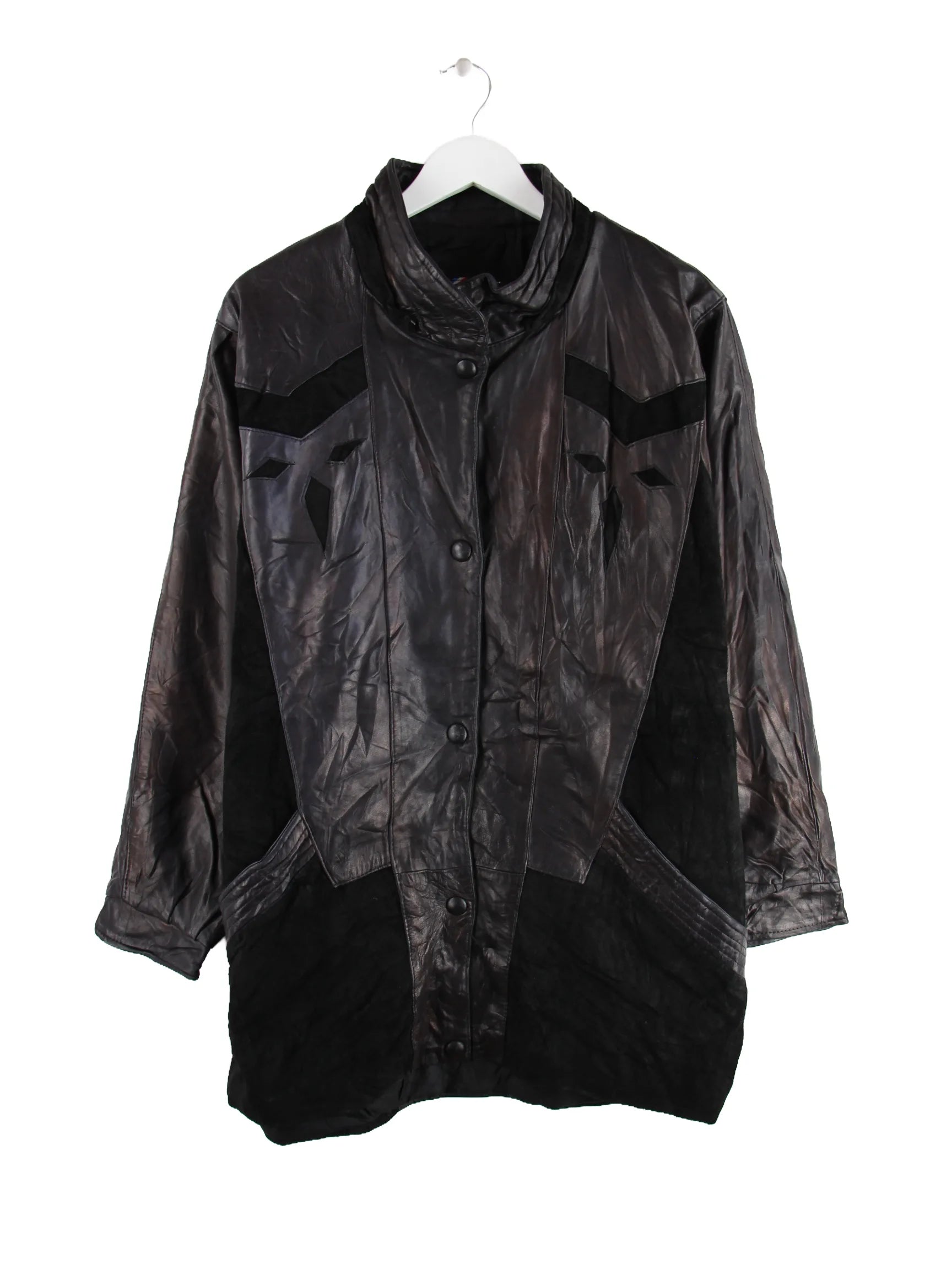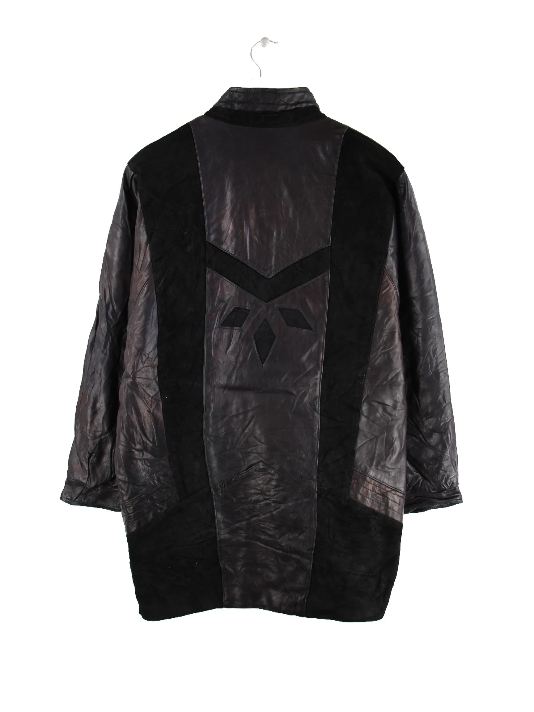 Vintage Jacke in Größe M aus den 90'ern. Sie ist aus Leder gefertigt und in Schwarz bei uns zu bekommen.