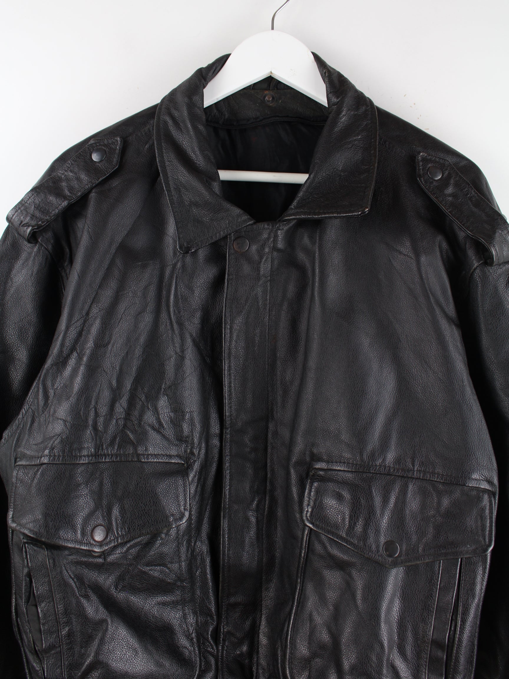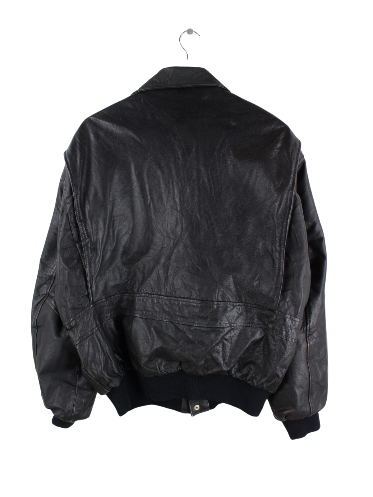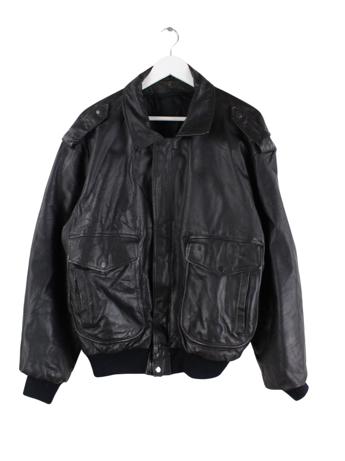 Schwarze Vintage Jacke aus den 90'ern in Größe XL. Sie ist aus Leder hergestellt und in sehr gutem Zustand auf Lager.
