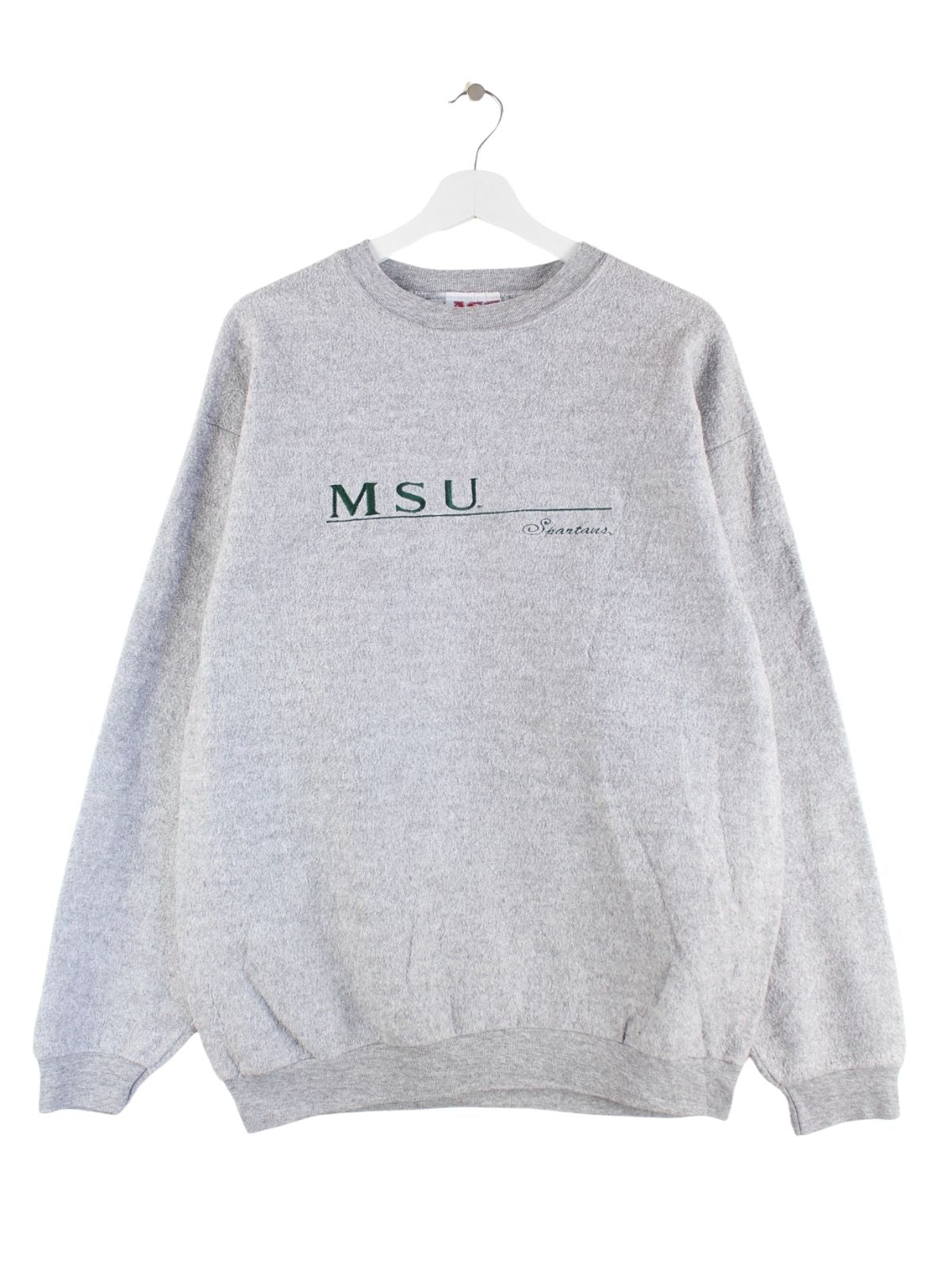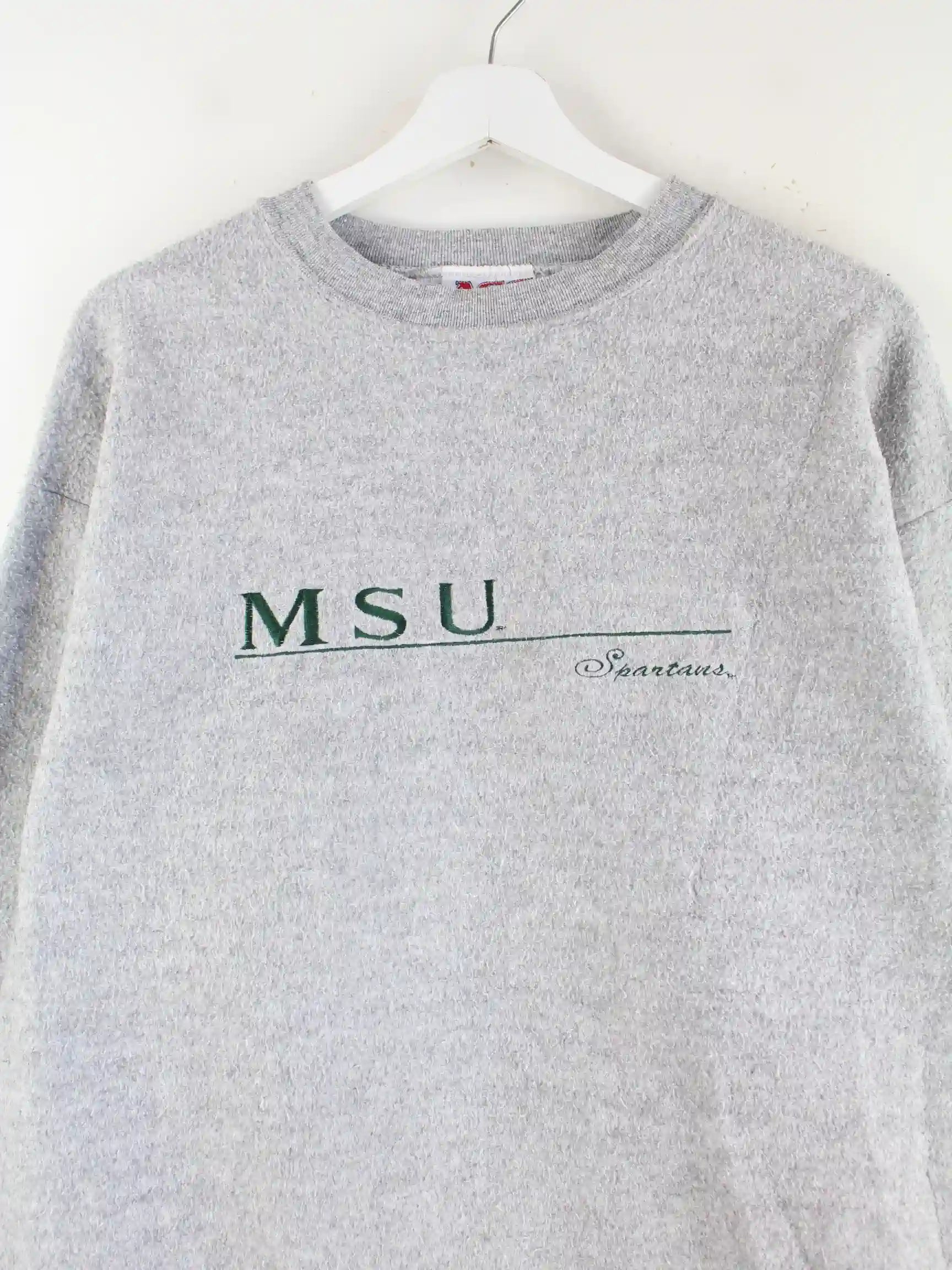 Vintage 90s MSU Spartans Embroidered Inside Out Sweater Grau XL