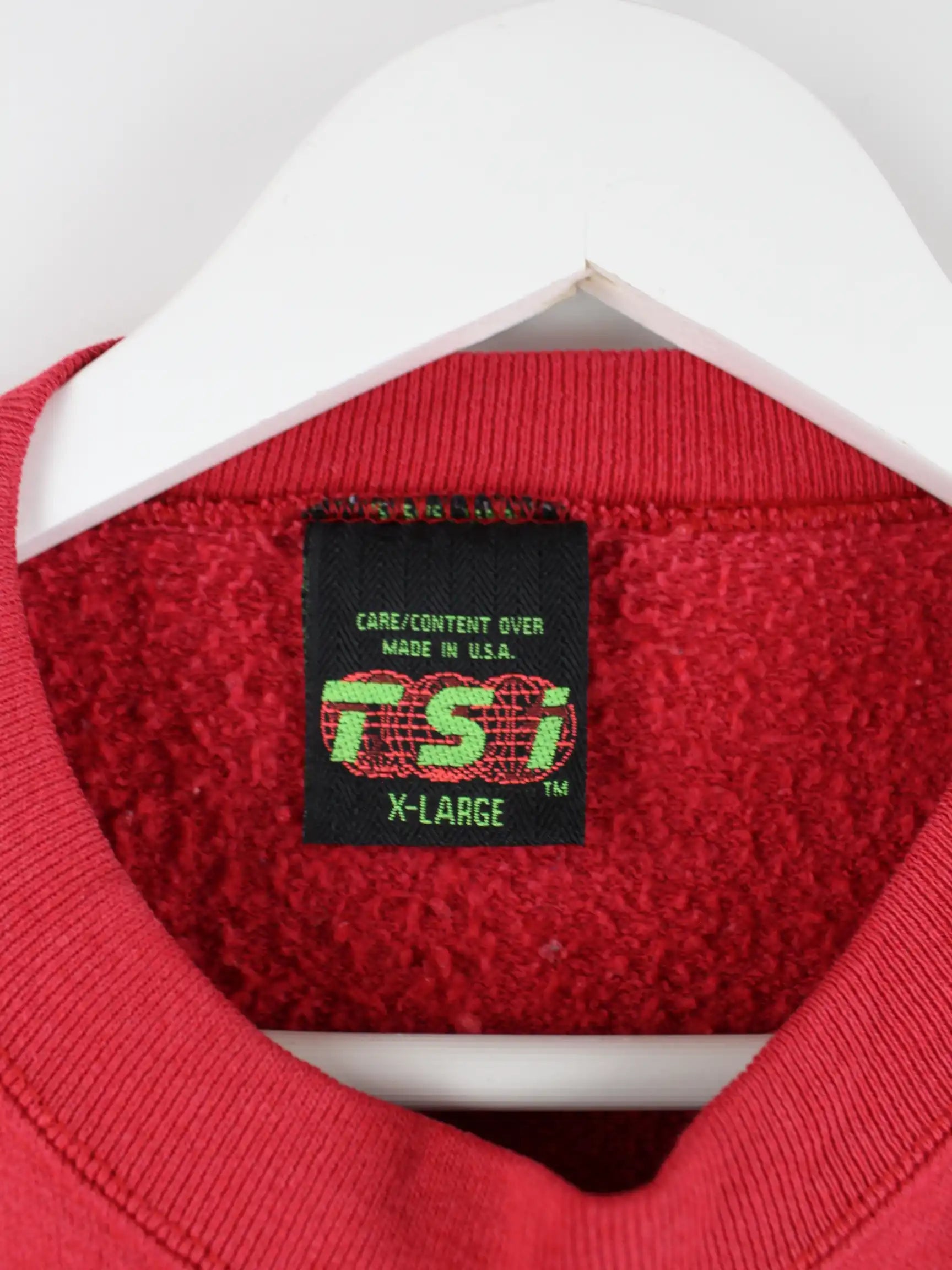 Roter Vintage Sweater aus den 90'ern in Größe L. Er ist aus einer Baumwollmischung gefertigt und in sehr gutem Zustand im Angebot.