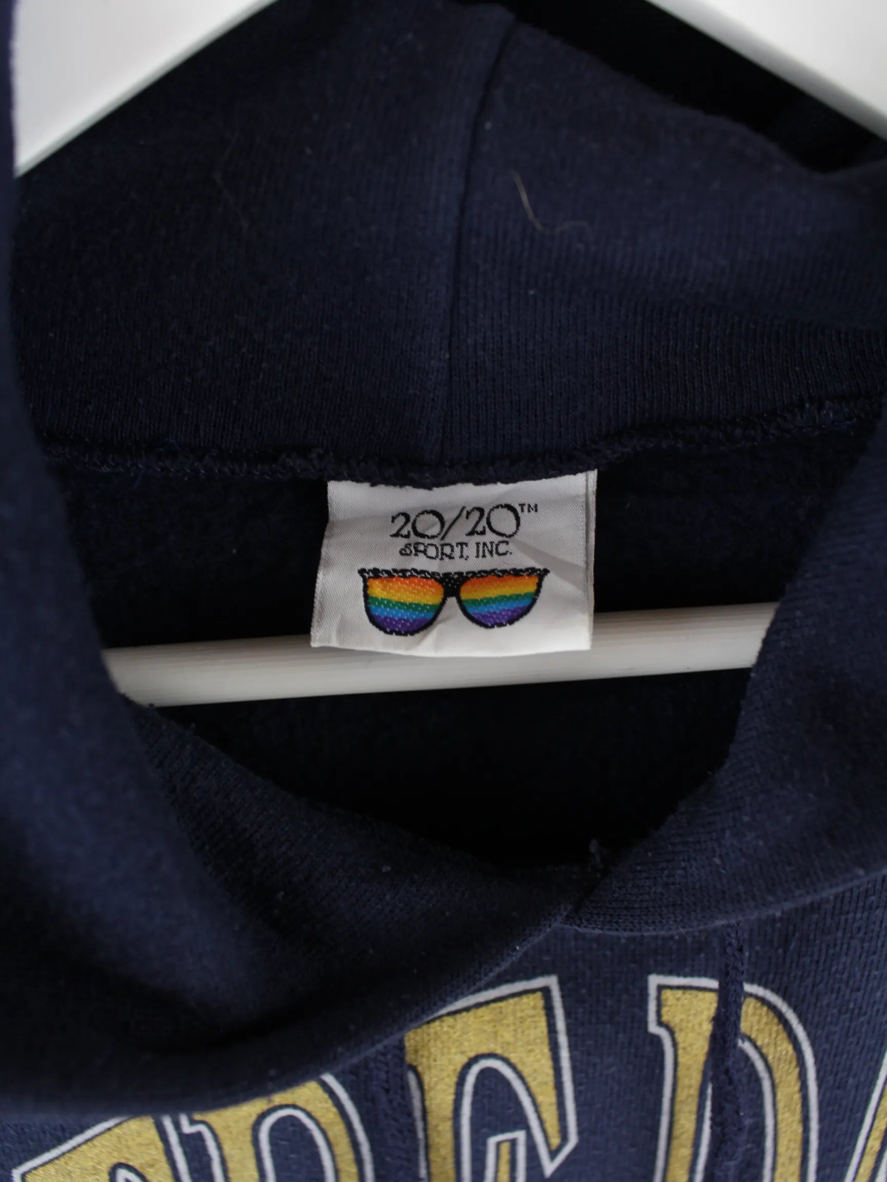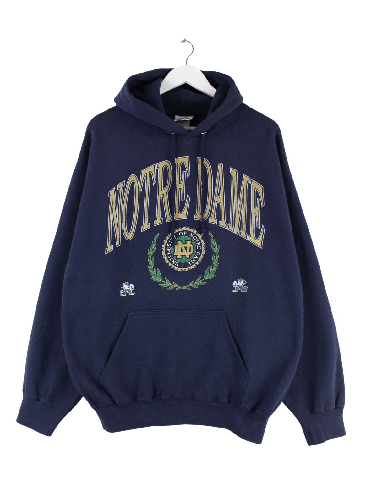 Vintage 90s Notre Dame Print Hoodie Blau XL