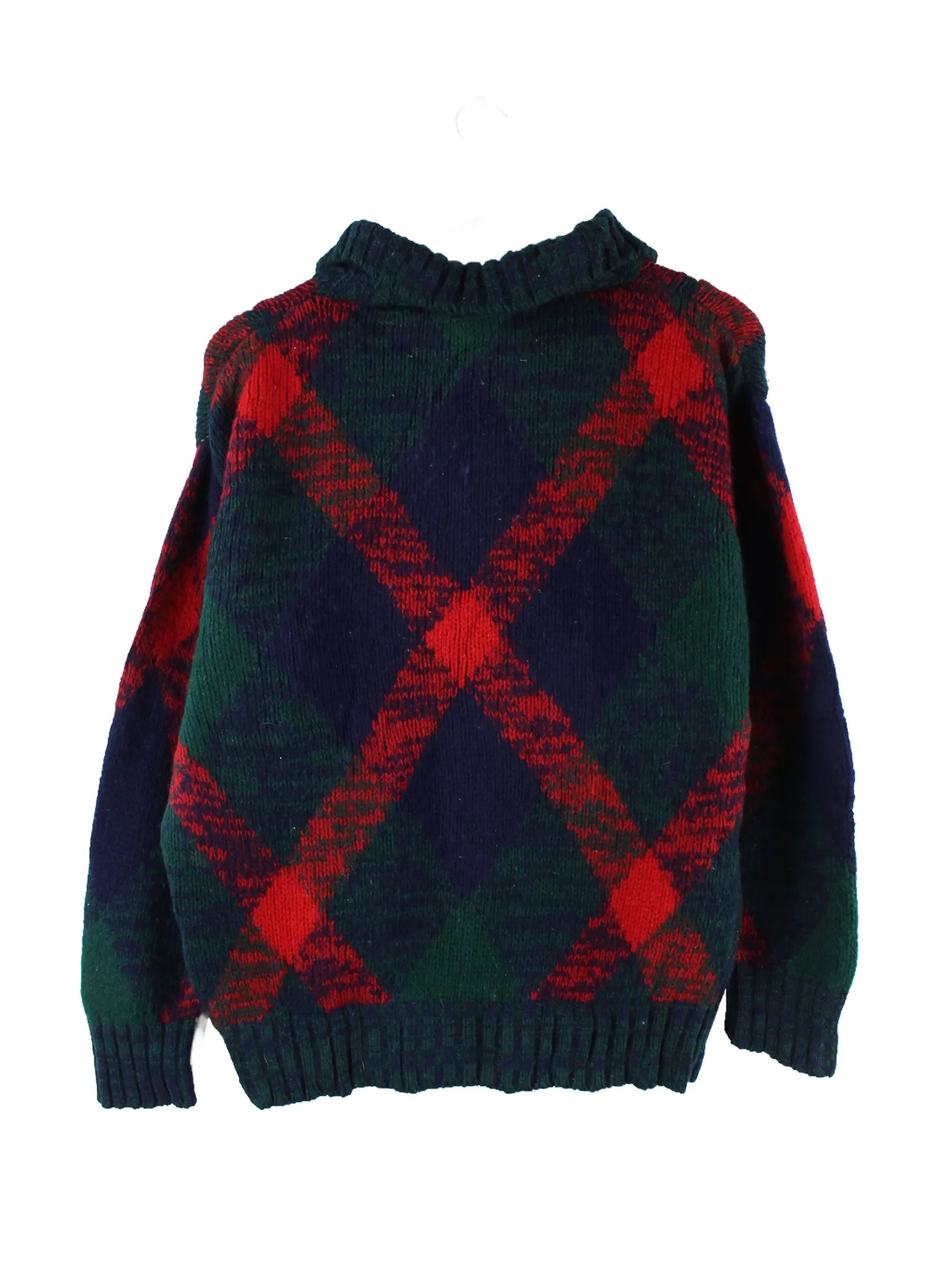 Vintage Pullover in Größe M aus den 90'ern. Er ist aus Wolle gemacht und in bunten Farben auf Lager.