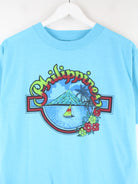 Vintage 90s Philipines Print Single Stitch T-Shirt Blau L