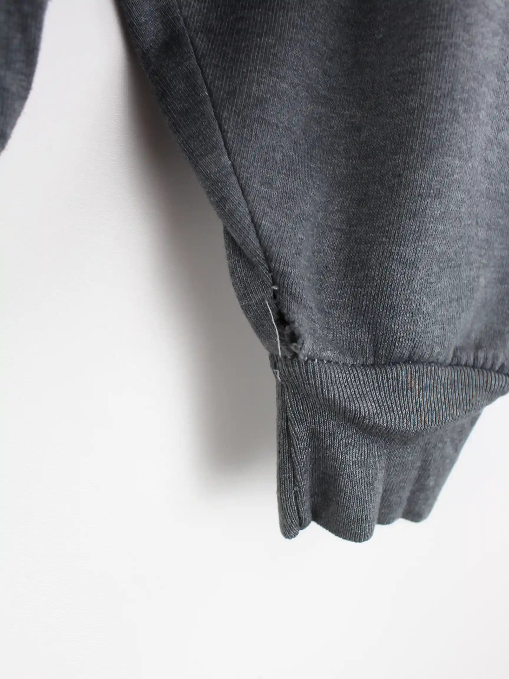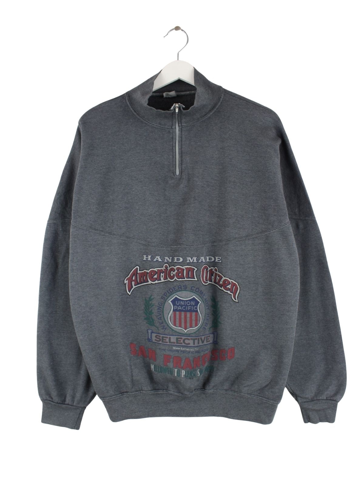 Vintage Sweater mit kurzem Reißverschluß in Größe L aus den 90'ern. Er ist aus einer Baumwollmischung hergestellt und in Grau auf Lager. Mit schönem Francisco Print.