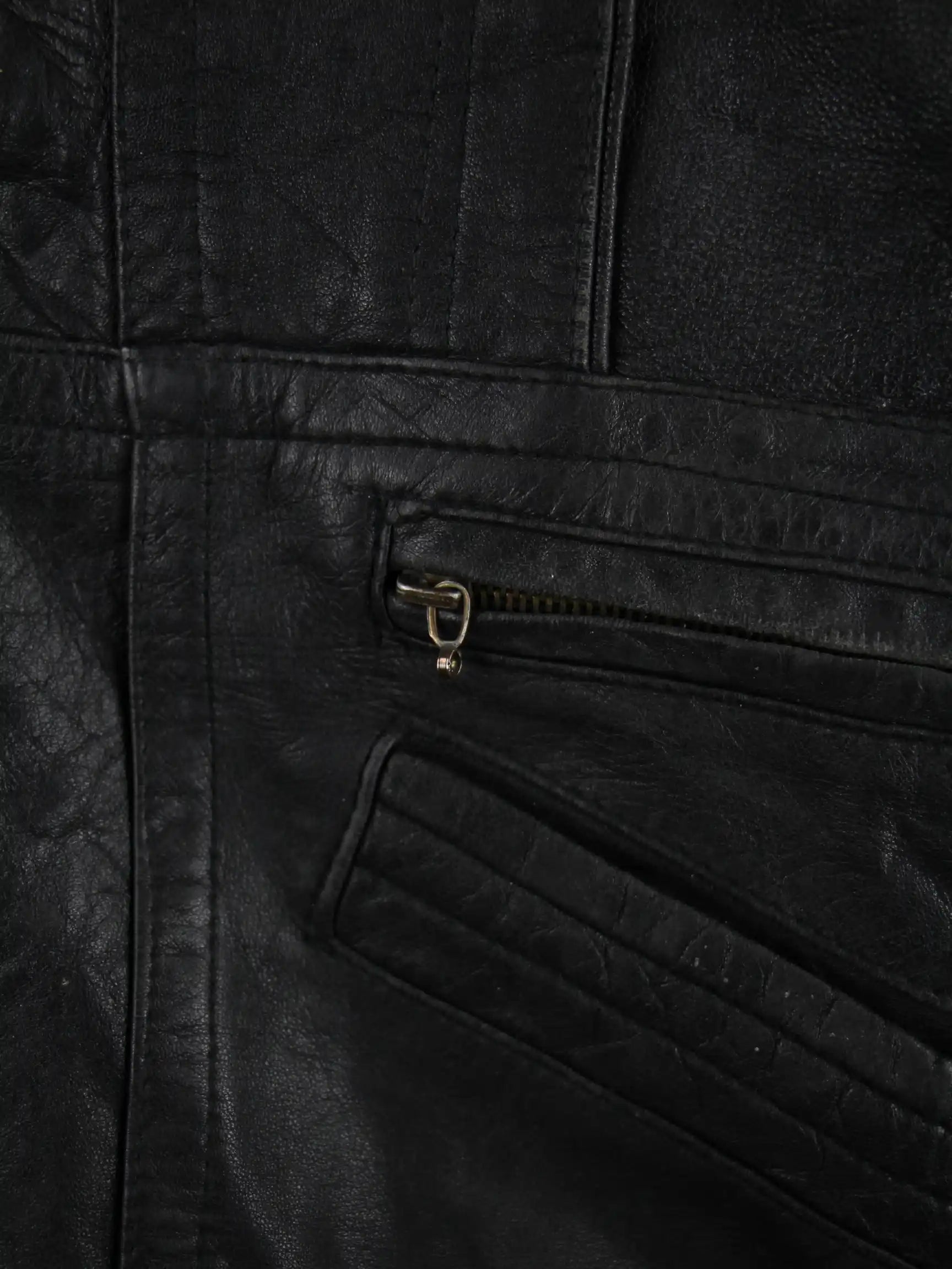 Schwarze Vintage Jacke aus den 90'ern in Größe L. Sie ist aus Leder gemacht. Den Zustand würden wir als 'In Ordnung' bezeichnen (vergl. Bilder).