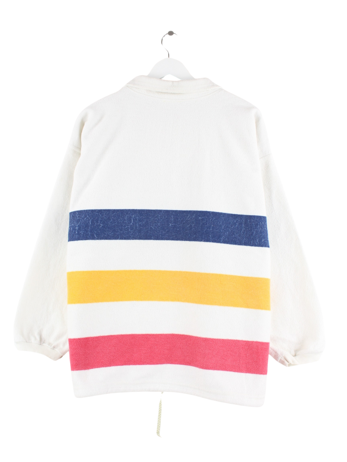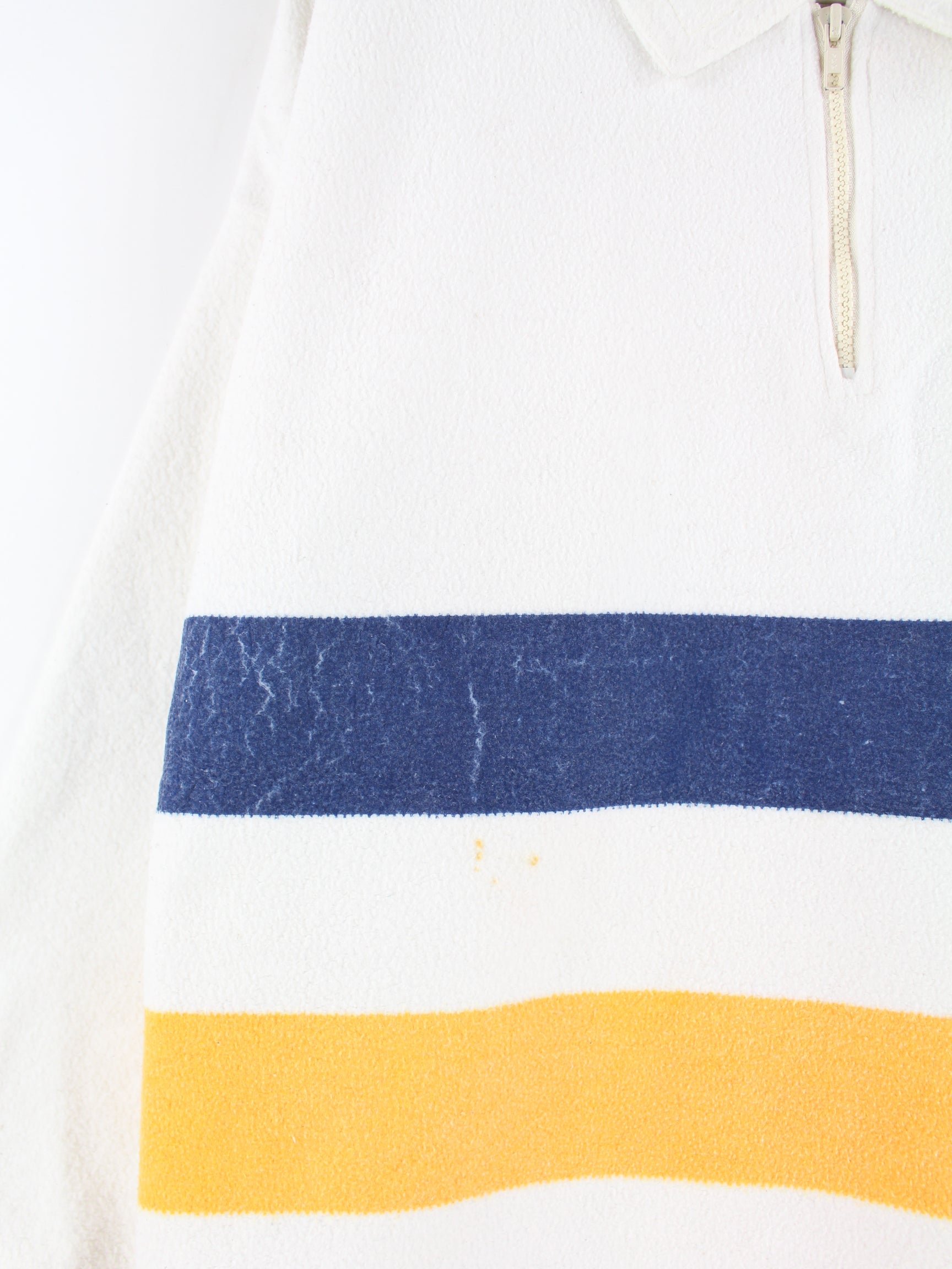 Vintage 90s Striped Half Zip Fleece Sweater Weiß XL