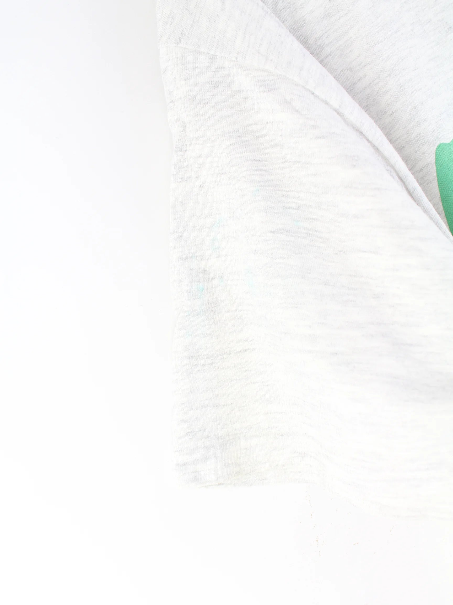 Vintage T-Shirt in Größe L aus den 90'ern. Es ist aus Baumwolle produziert und in Grau im Angebot. Mit chiquem Swatch Print.