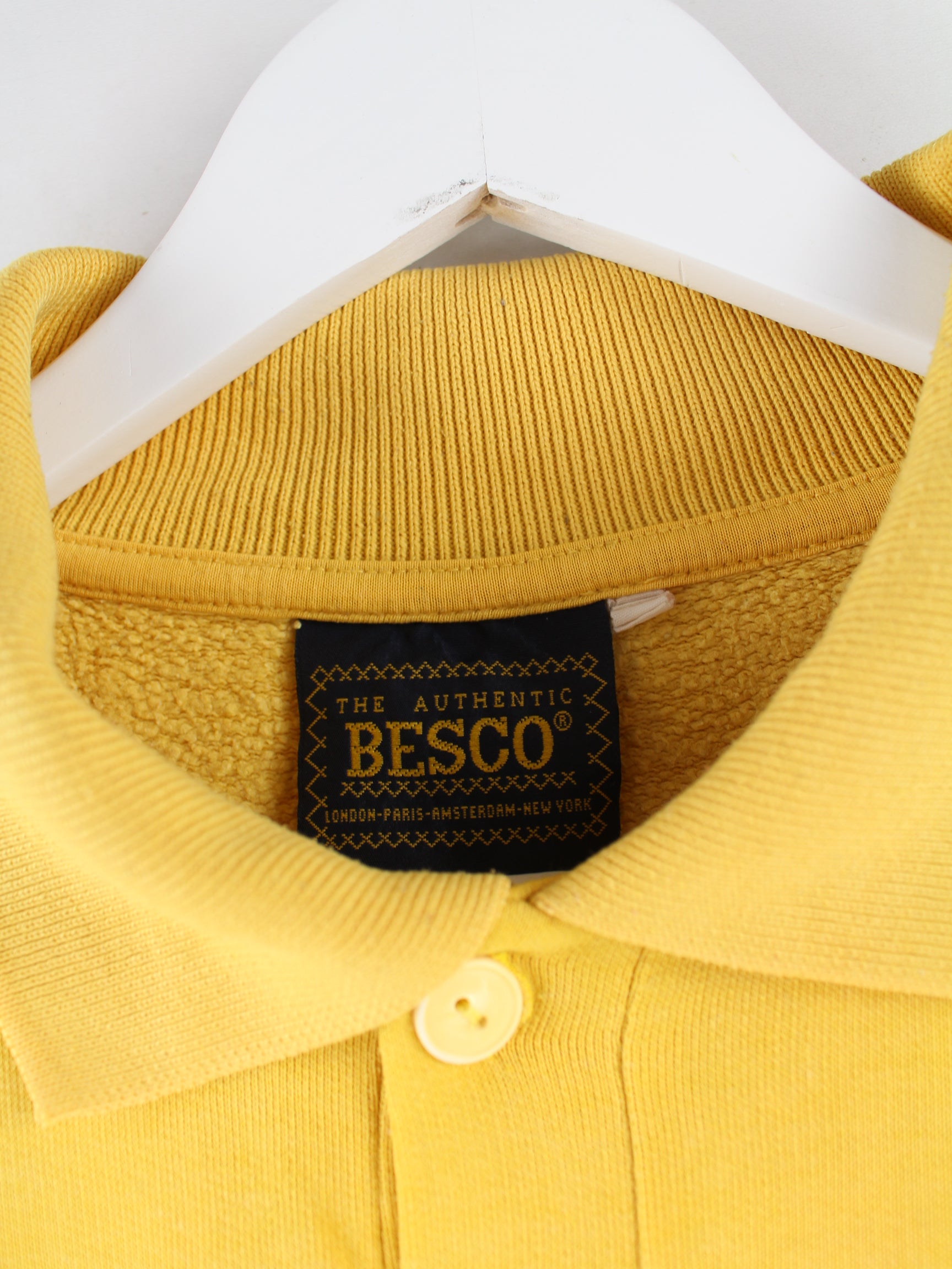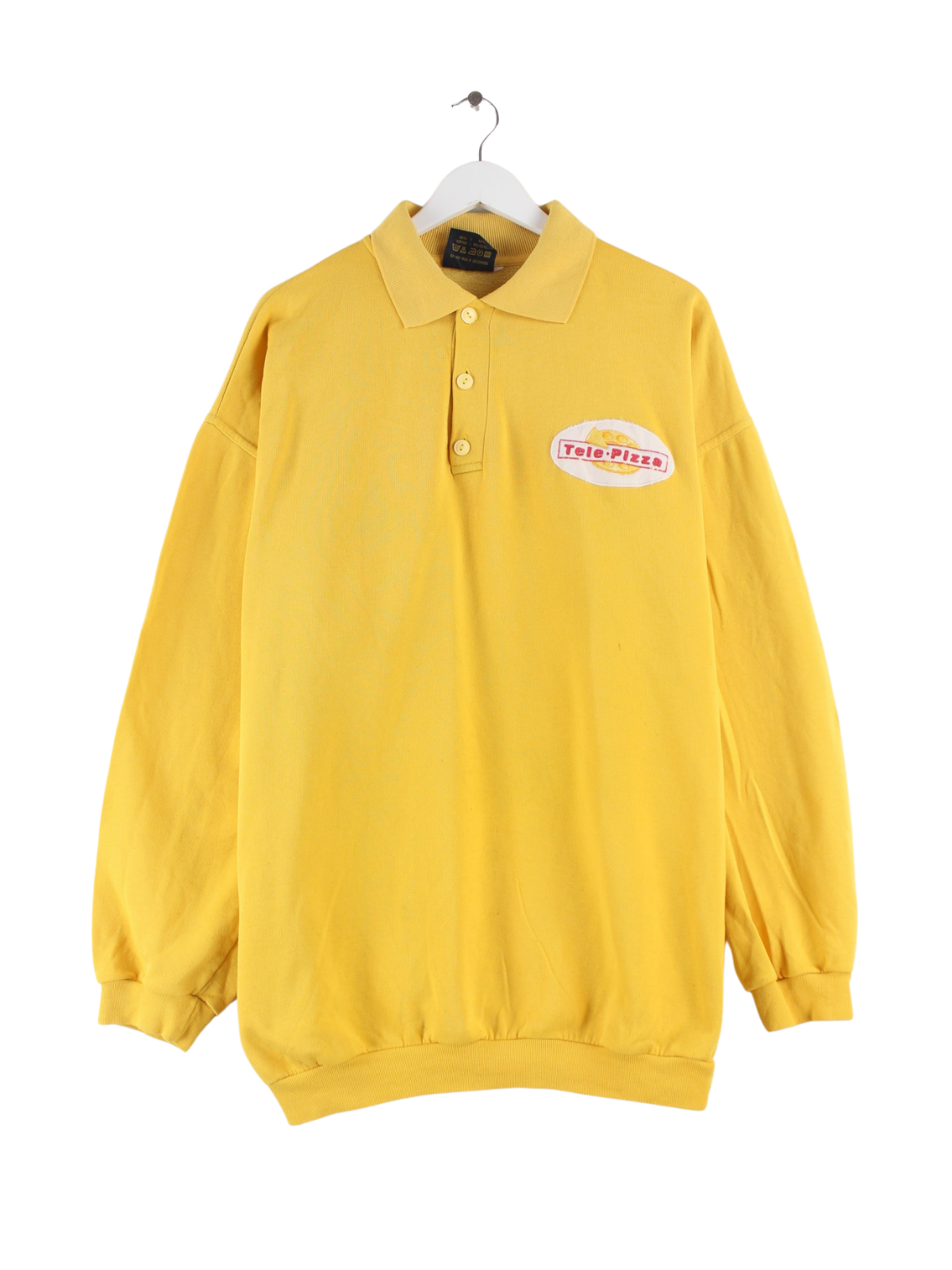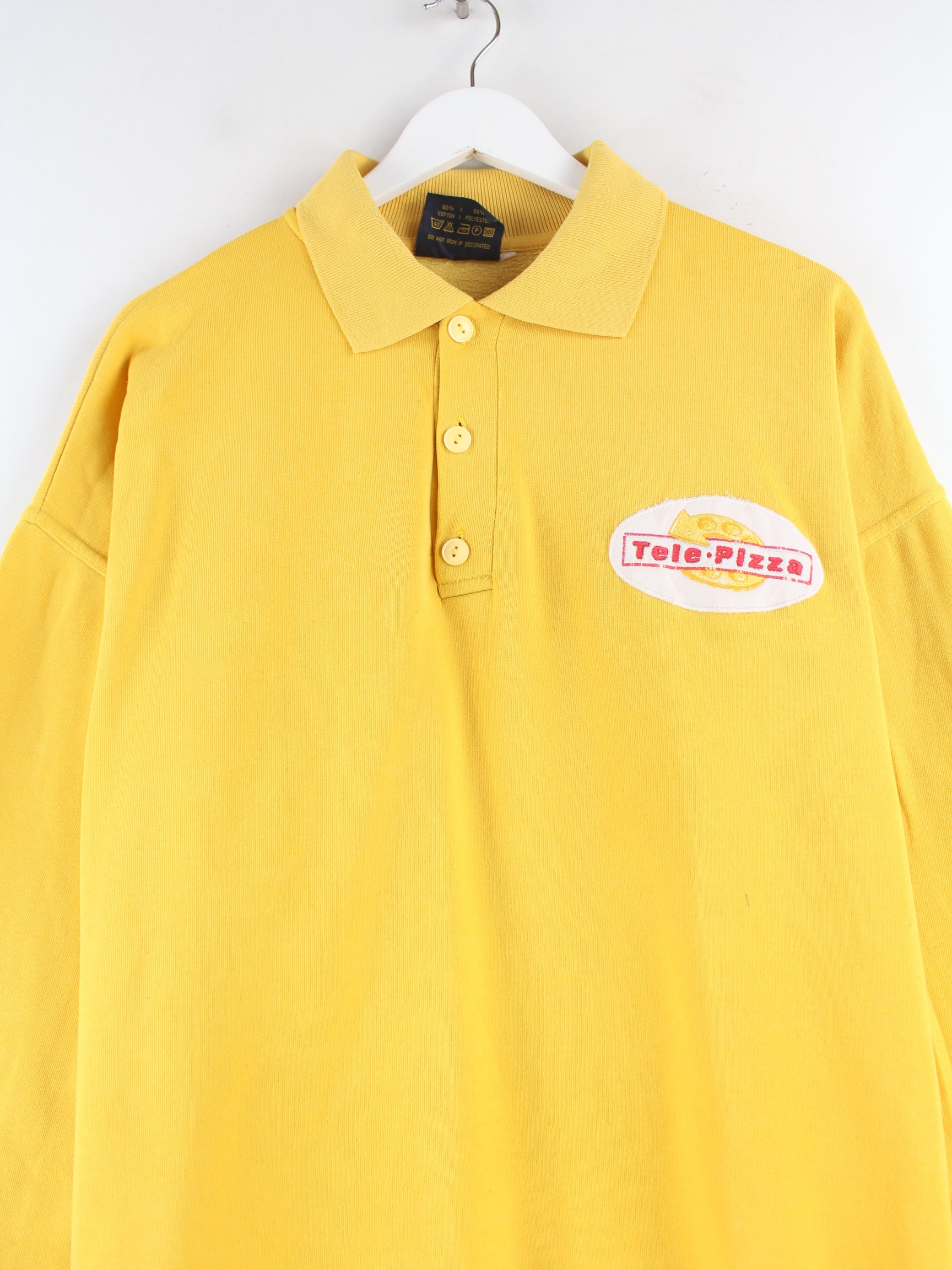 Vintage 90s Tele PIzza Embroidered Polo Sweater Gelb XL