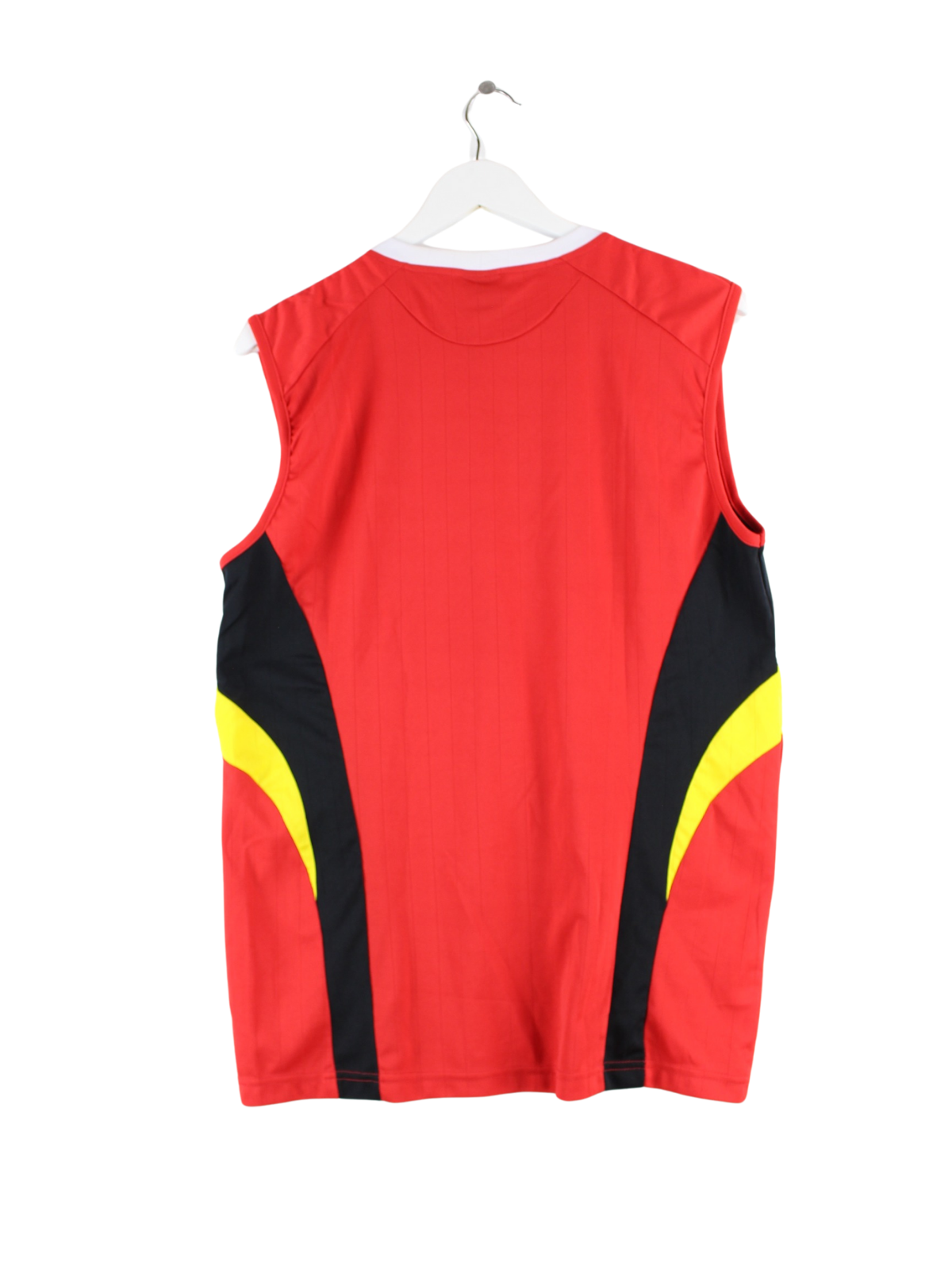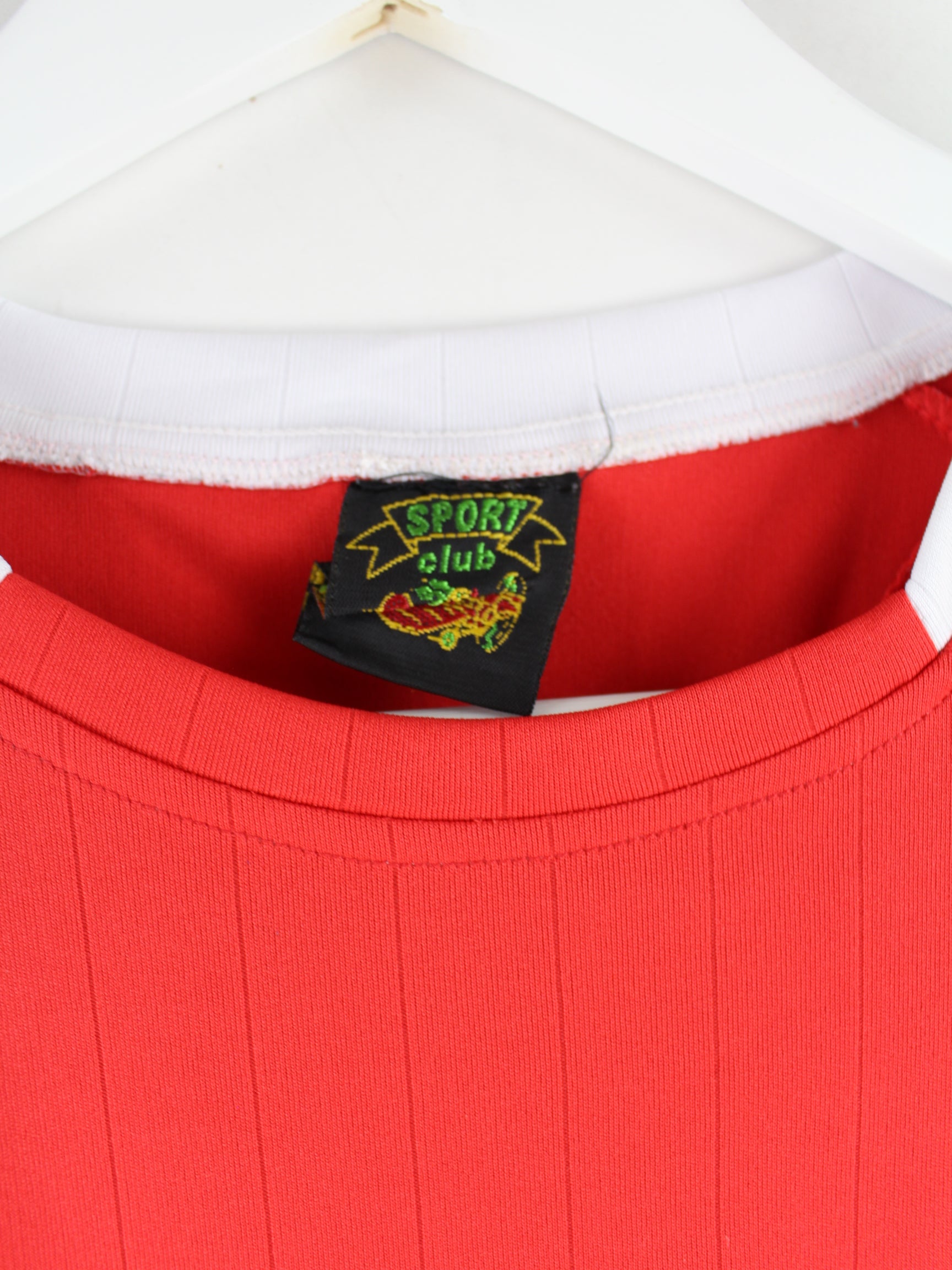 Roter Vintage Jersey aus den 90'ern in Größe M. Es ist aus Synthetik und in sehr gutem Zustand bei uns zu bekommen.