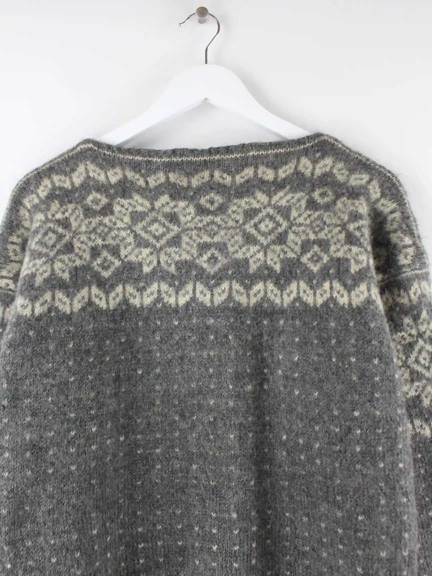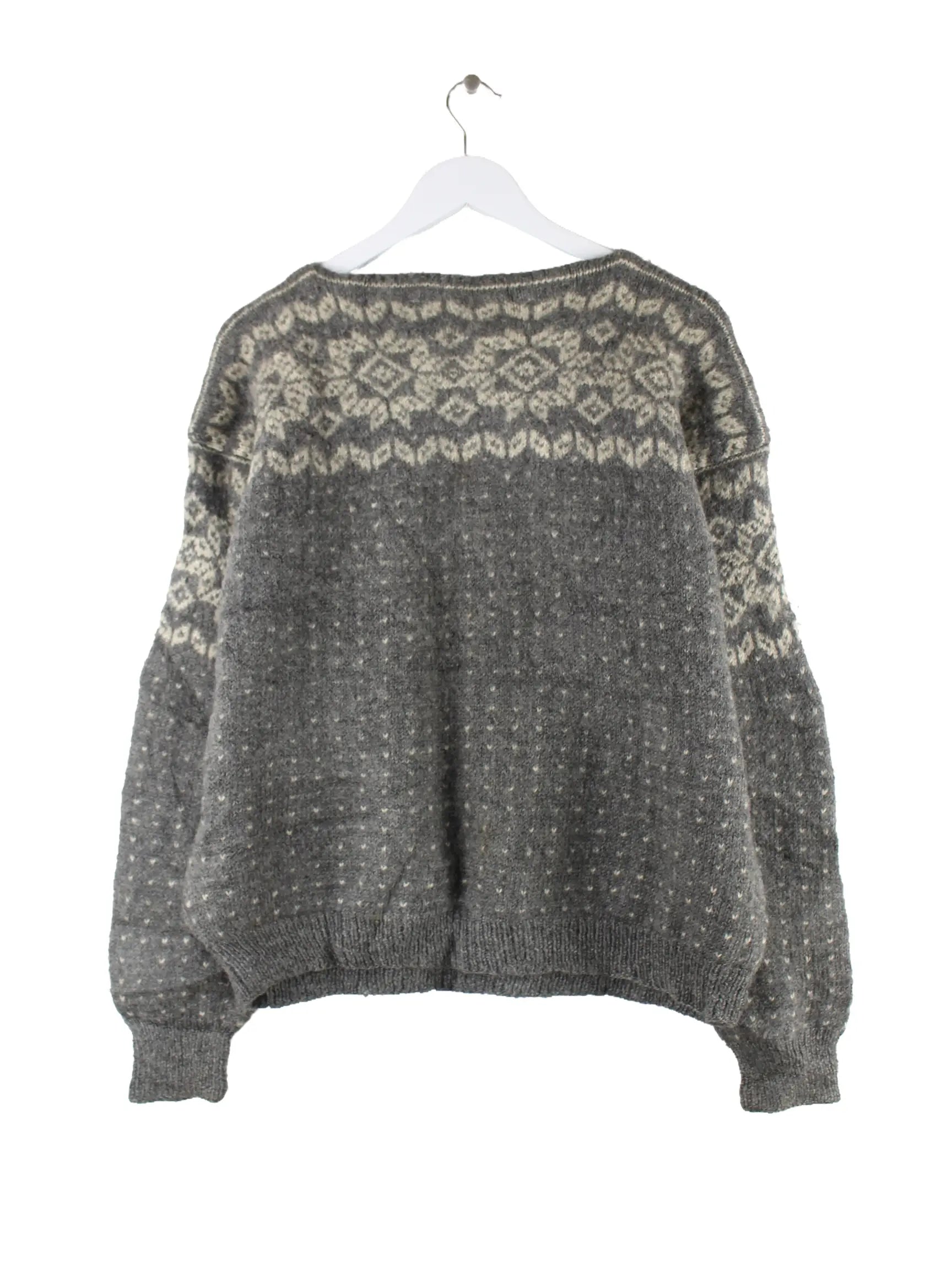 Grauer Vintage Pullover aus den 90'ern in Größe M. Er ist aus Wolle angefertigt und in sehr gutem Zustand auf Lager.