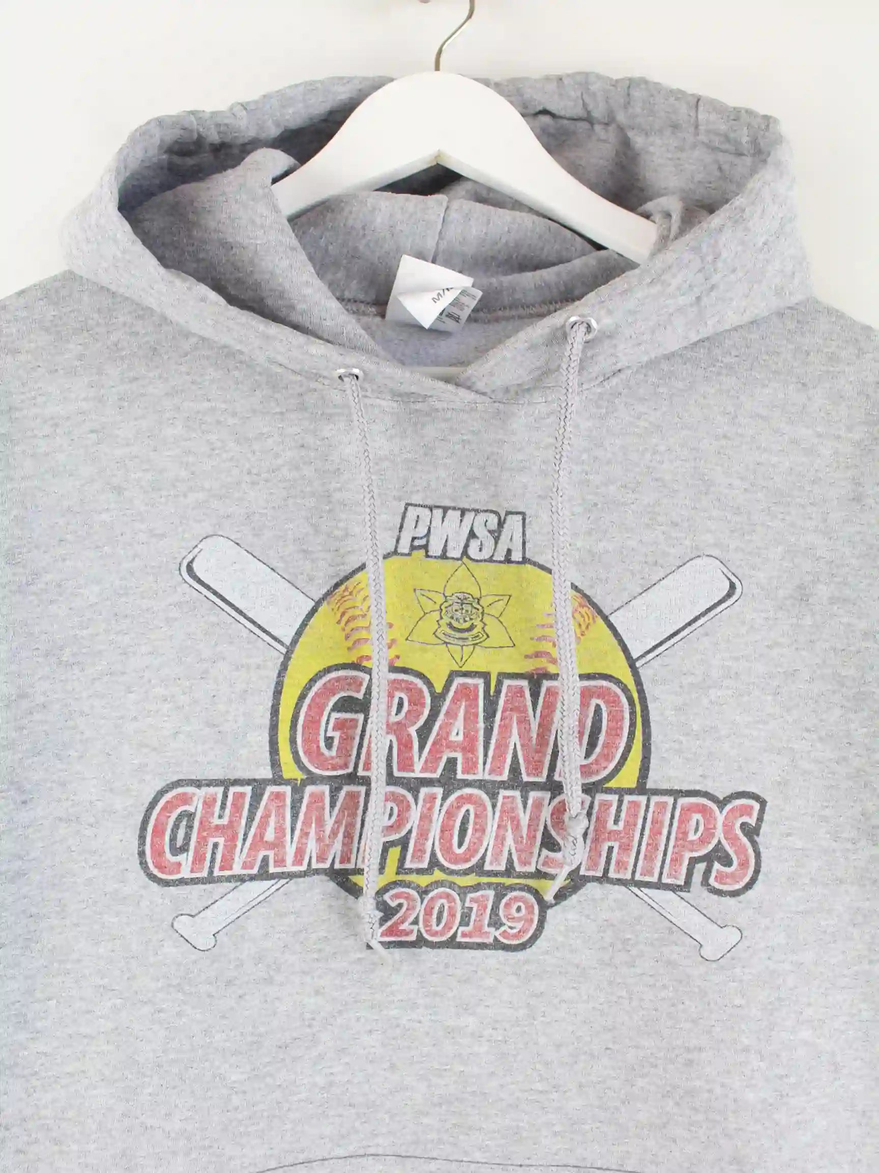 Vintage Hoodie in Größe M. Er ist aus einer Baumwollmischung hergestellt und in Grau im Angebot. Mit schönem Baseball Print.