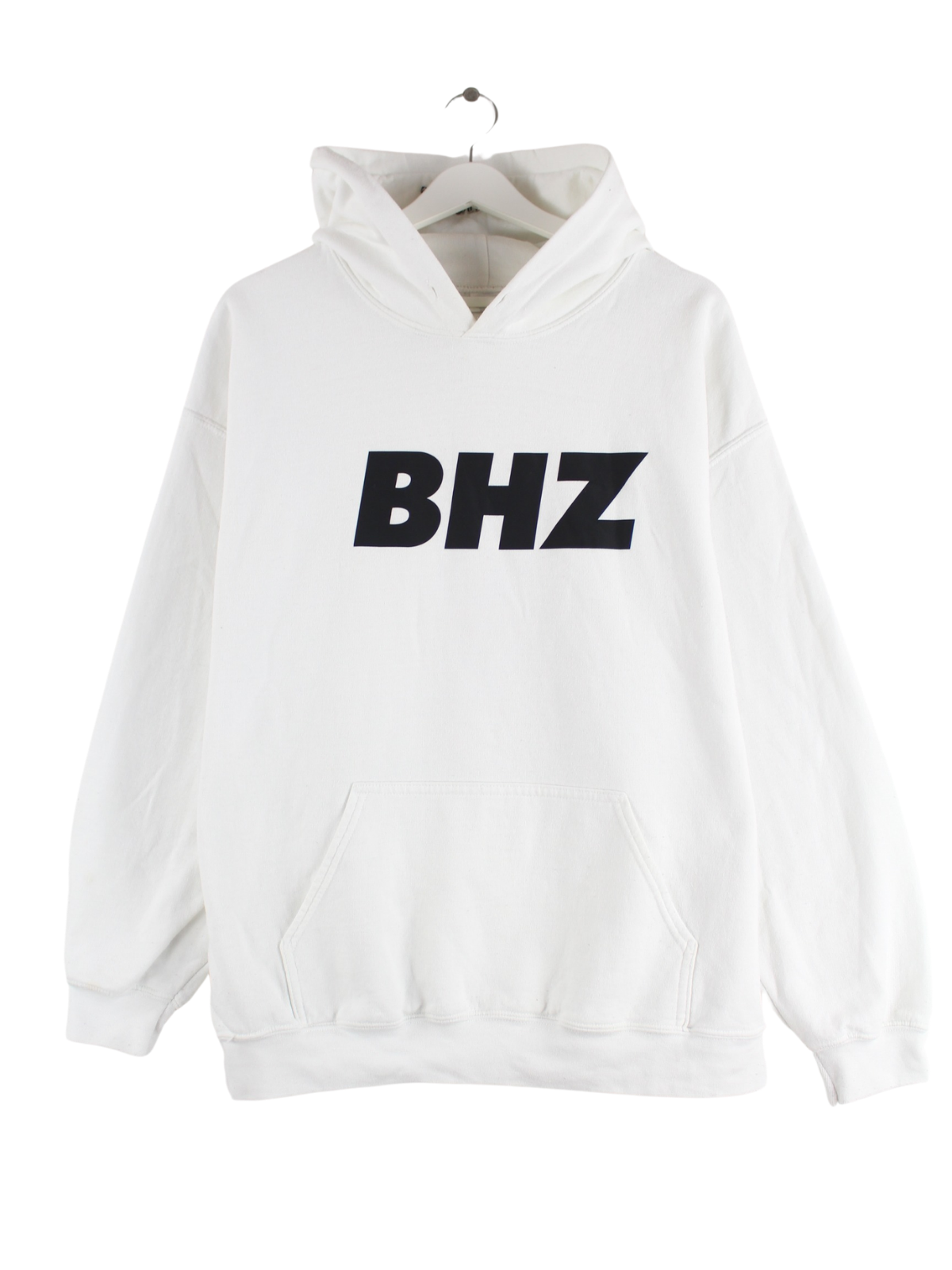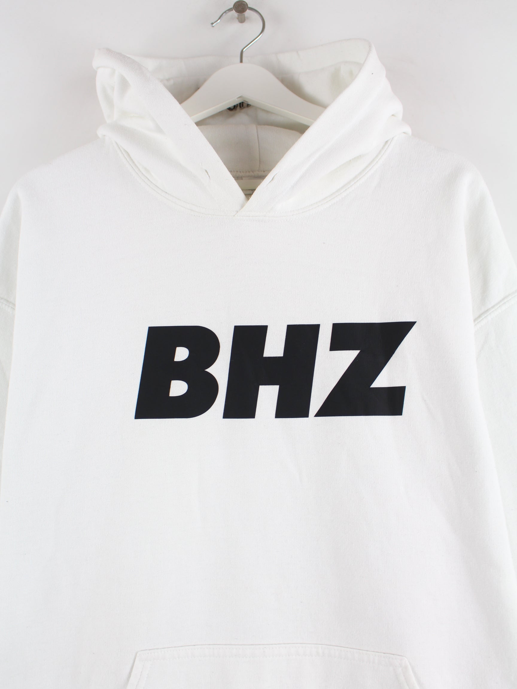 Weißer Vintage Hoodie in Größe L. Er ist aus einer Baumwollmischung hergestellt und in gutem Zustand vorrätig. Mit chiquem BHZ Print.