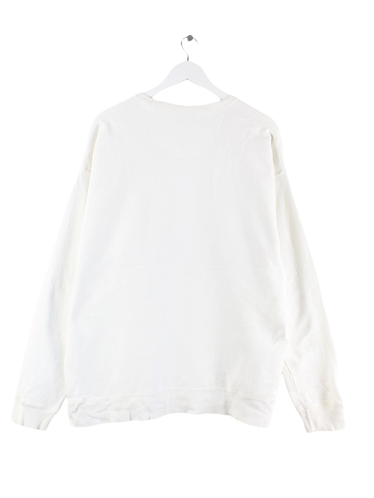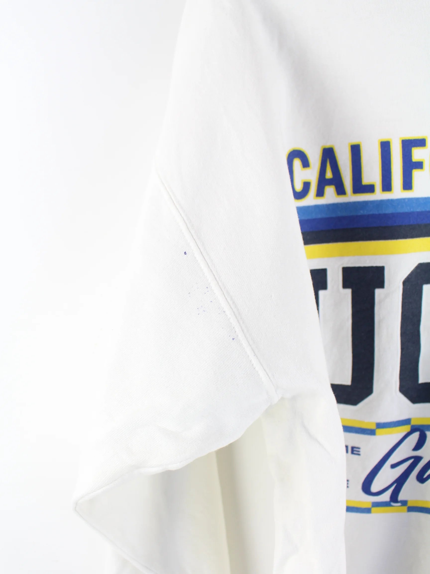 Vintage Sweater in Größe L. Er ist aus einer Baumwollmischung gefertigt und in Weiß zu bekommen. Mit seltenem California Print.
