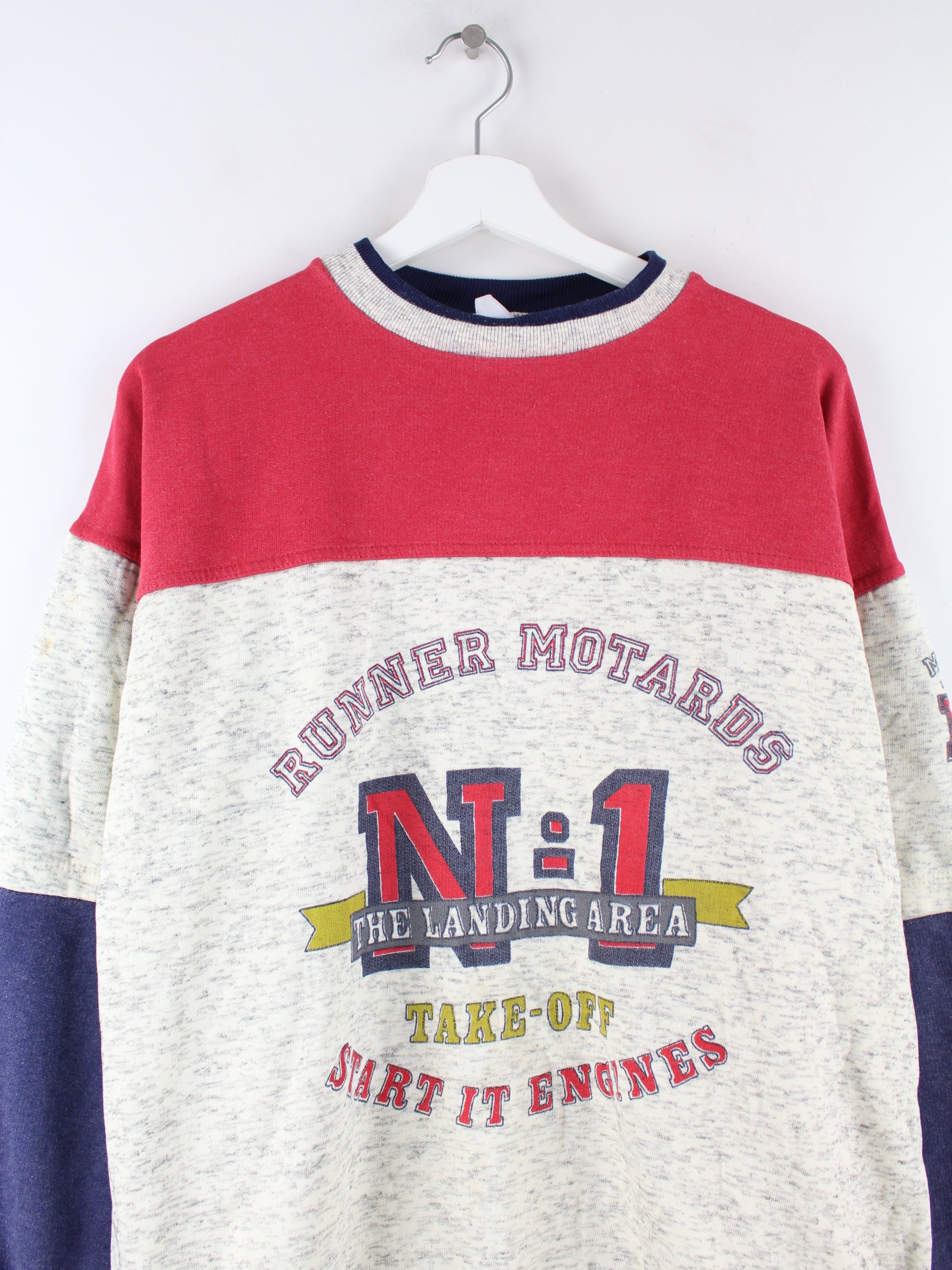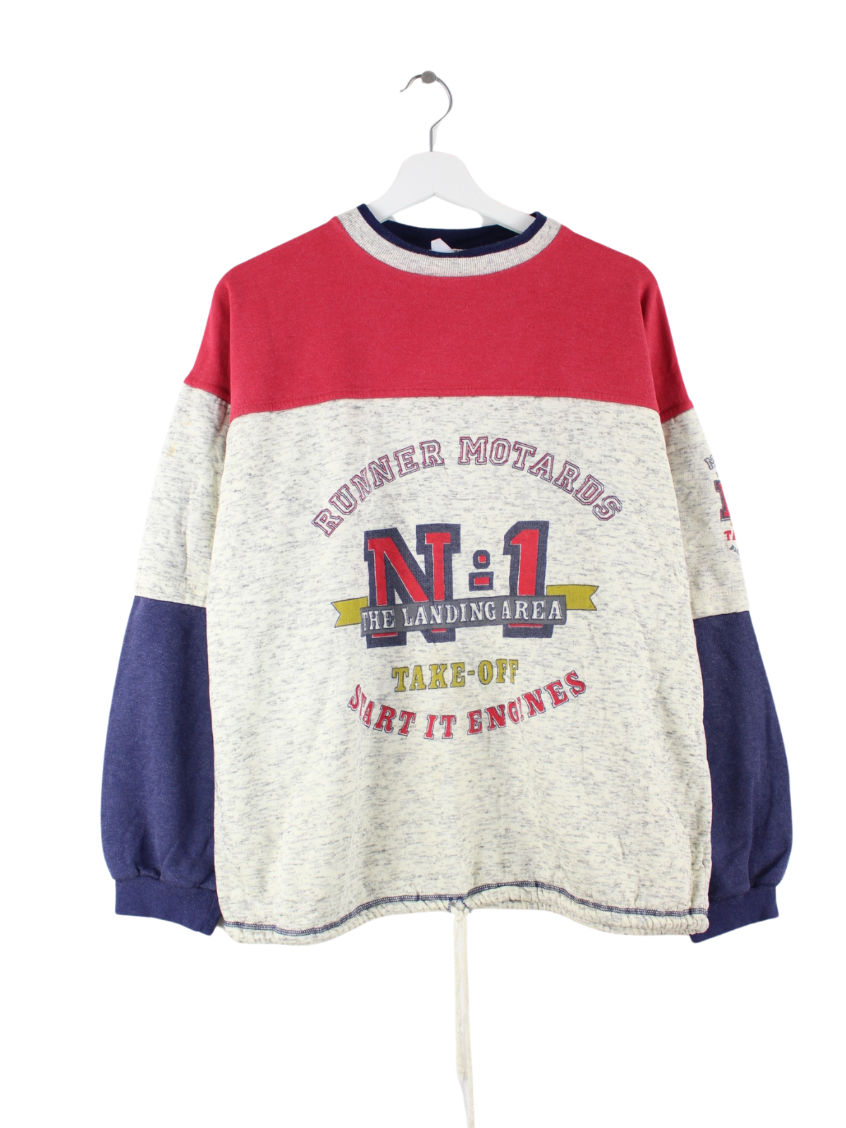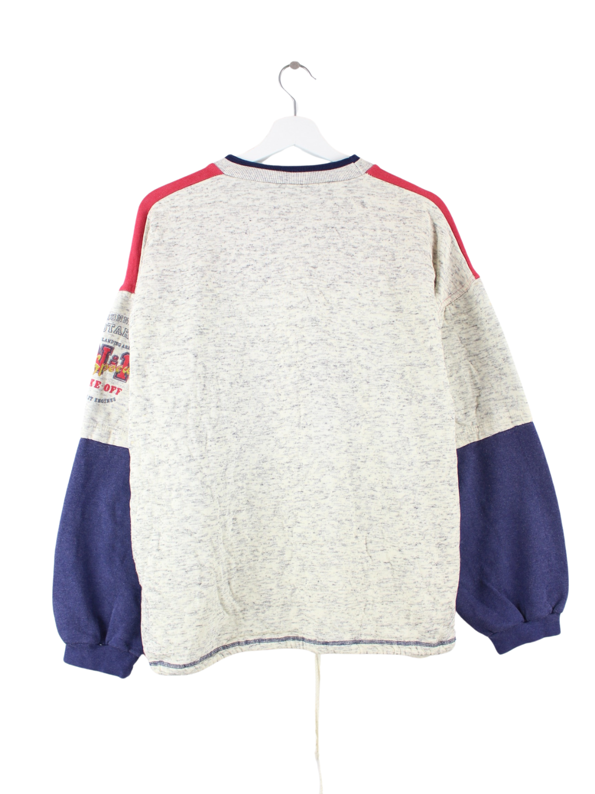 Vintage Sweater in Größe L aus den 80'ern. Er ist aus einer Baumwollmischung hergestellt und in Beige lieferbar. Mit schönem 80s Print.