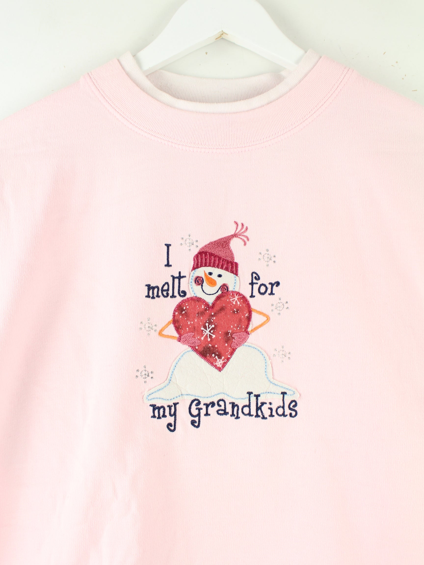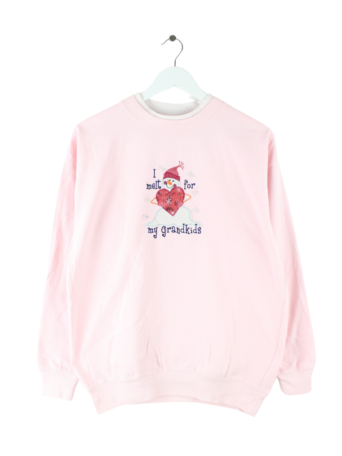 Vintage Damen 90s Embroidered Christmas Sweater Rosa M