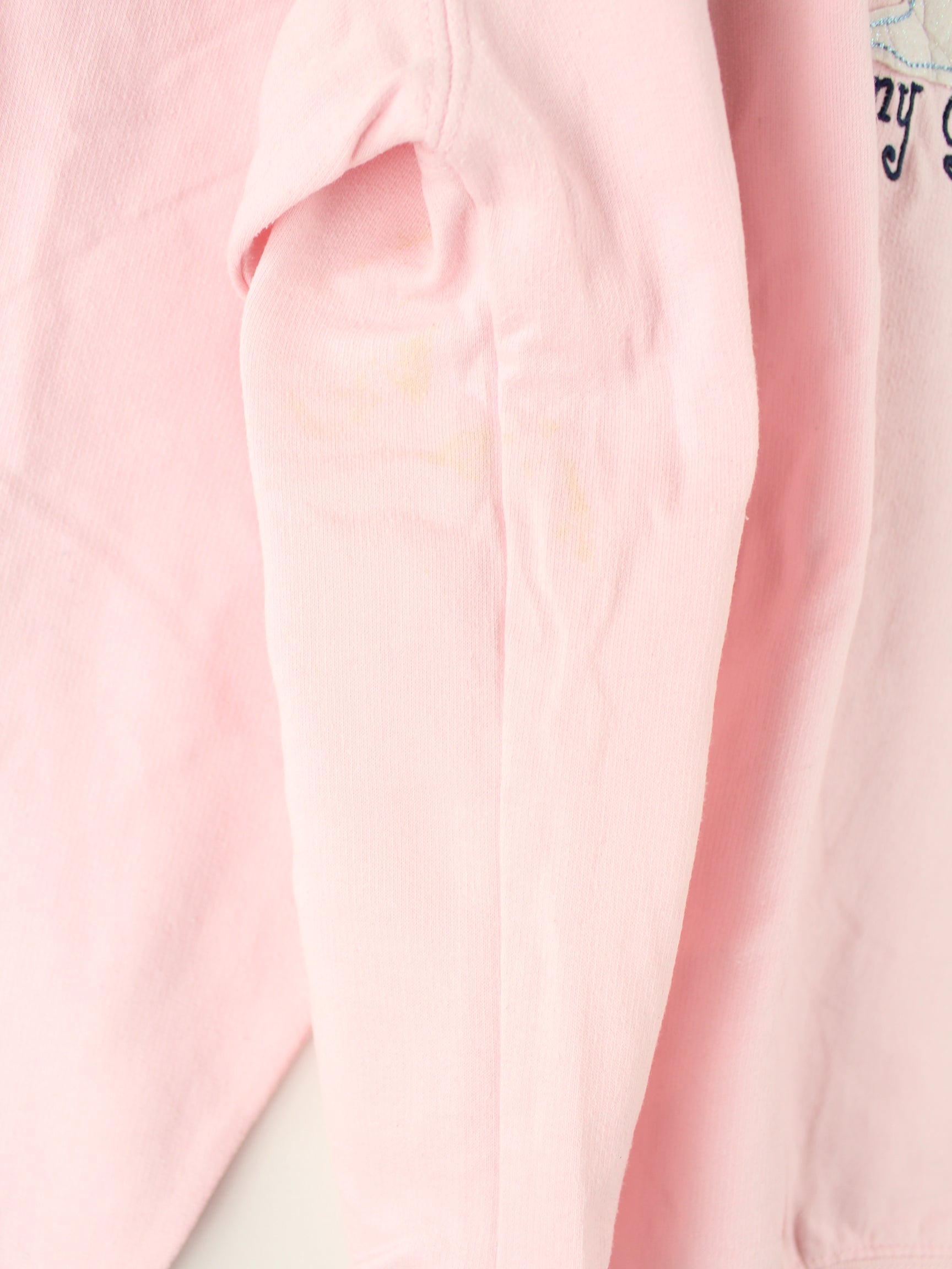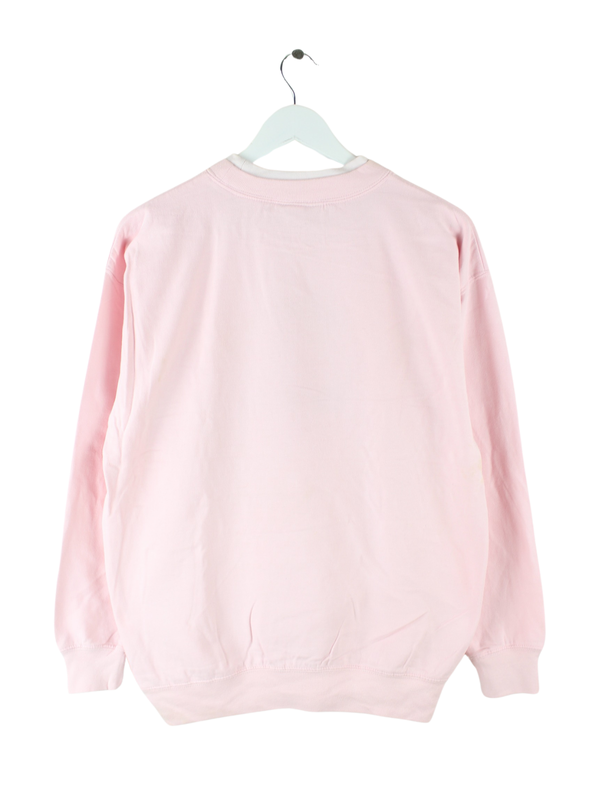 Vintage Sweater mit Stickereien in Größe M aus den 90'ern. Er ist aus einer Baumwollmischung gemacht und in Rosa bei uns vorrätig.