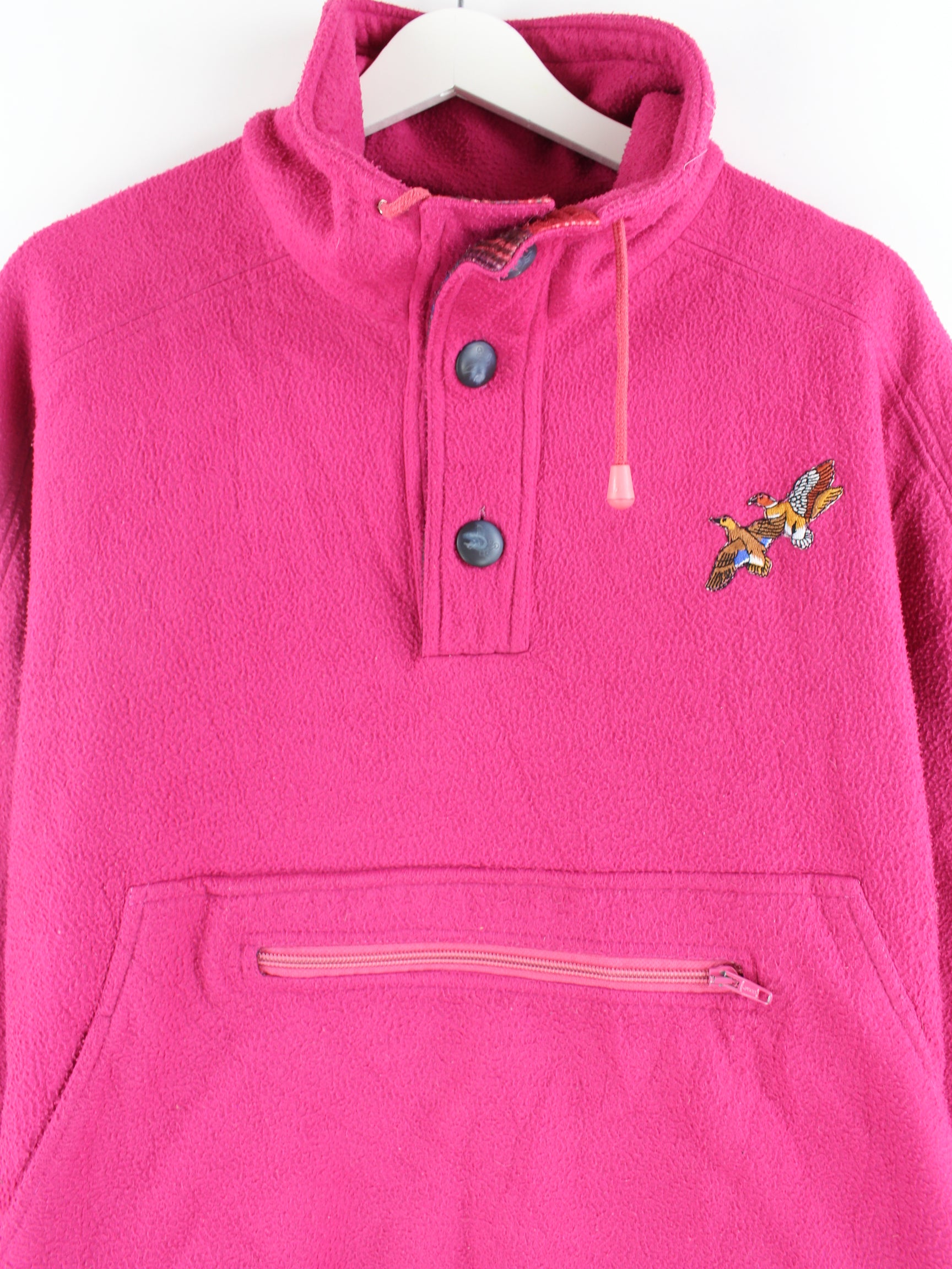 Vintage Damen 90s Embroidered Fleece Sweater Pink L