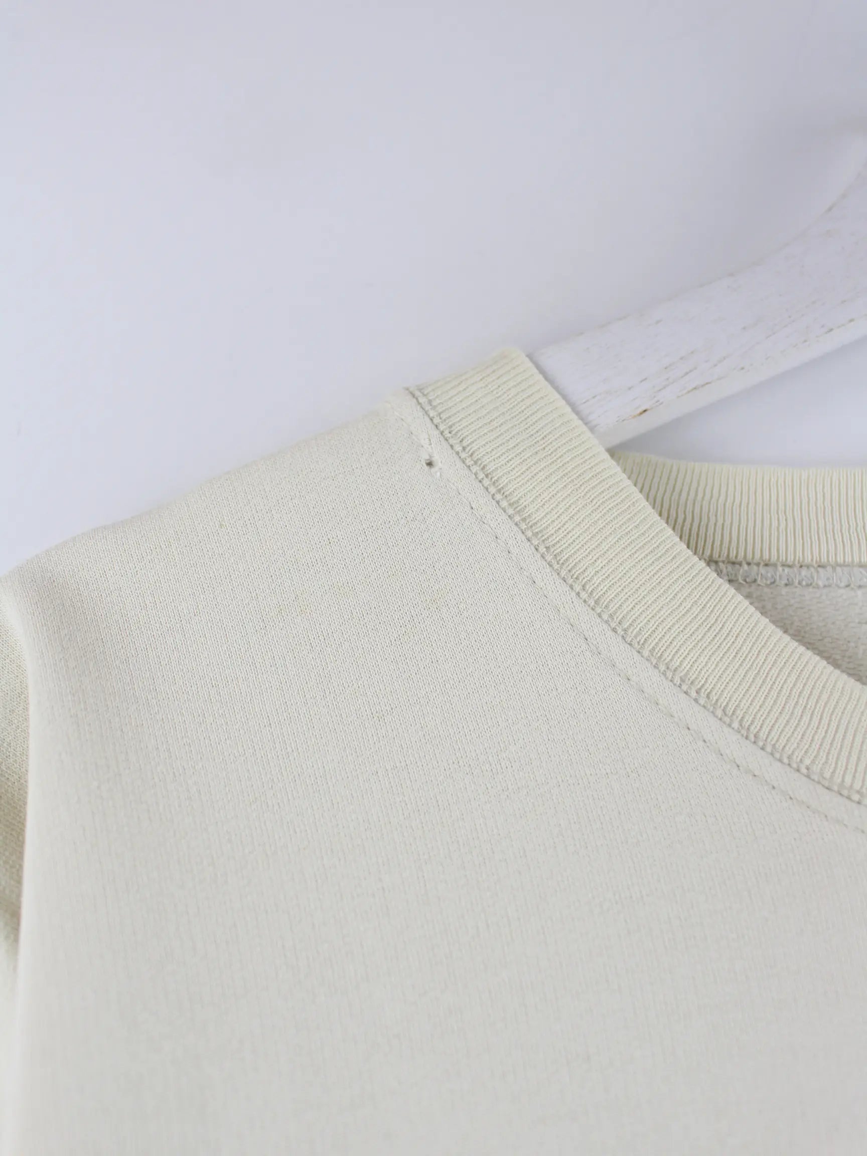 Vintage Sweater in Größe XL aus den 90'ern. Er ist aus einer Baumwollmischung gemacht und in Beige zu haben.