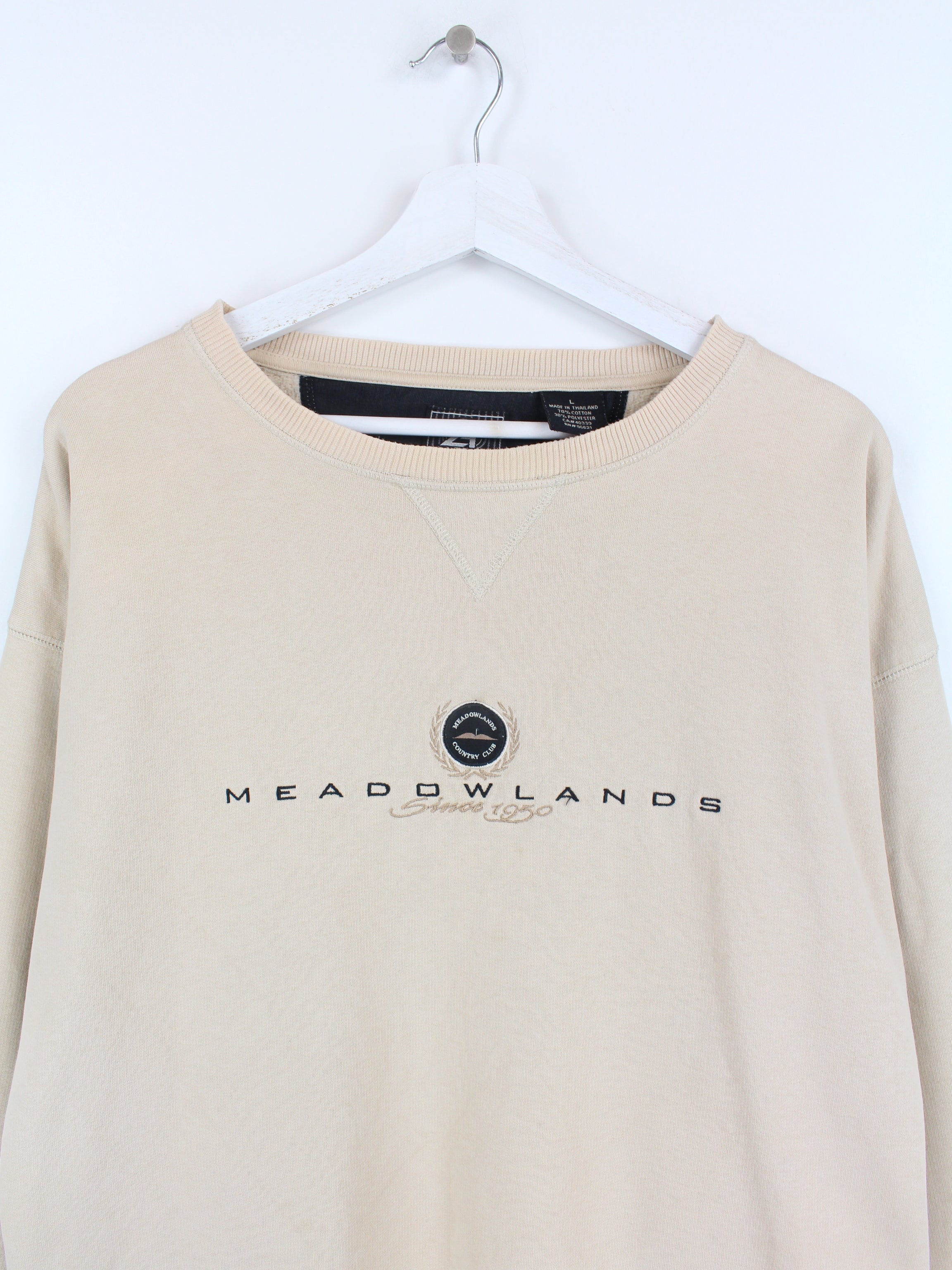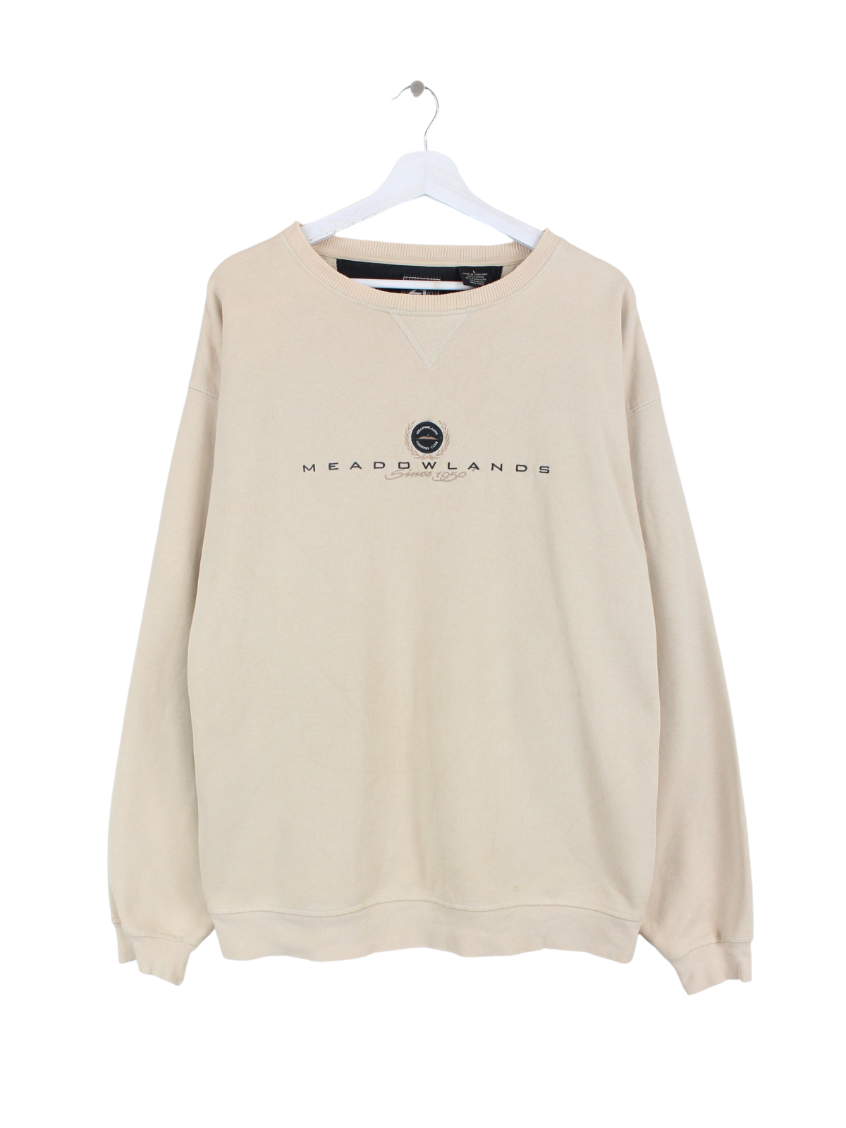 Beiger Vintage Sweater mit aufgesticktem Logo der Marke AEAD.