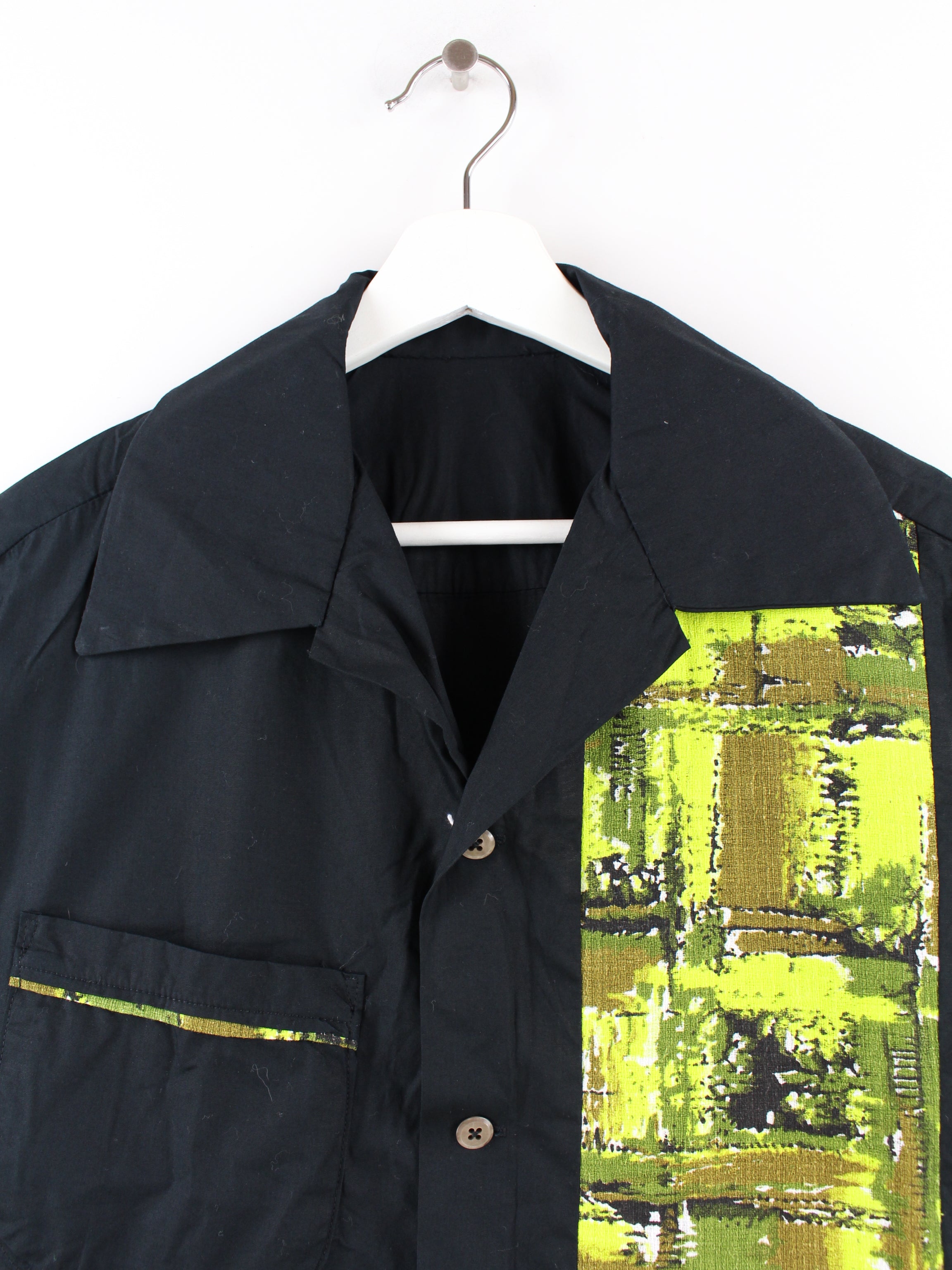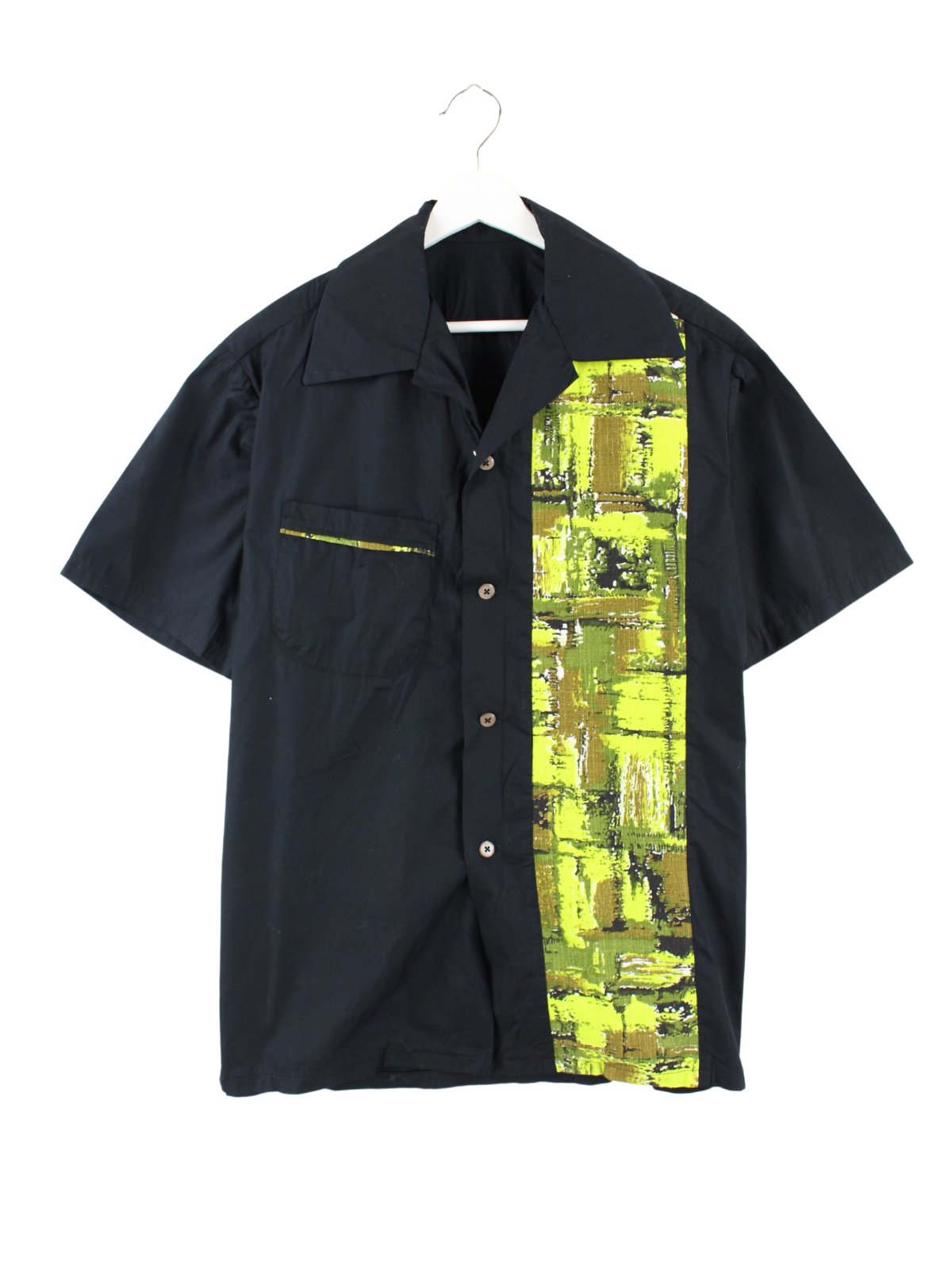 Schwarze Hawaii Hemd mit grünem Muster auf der Vorderseite.