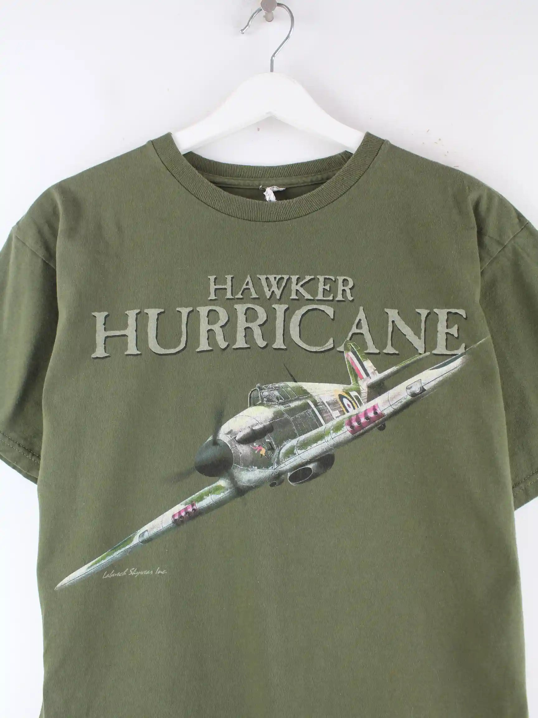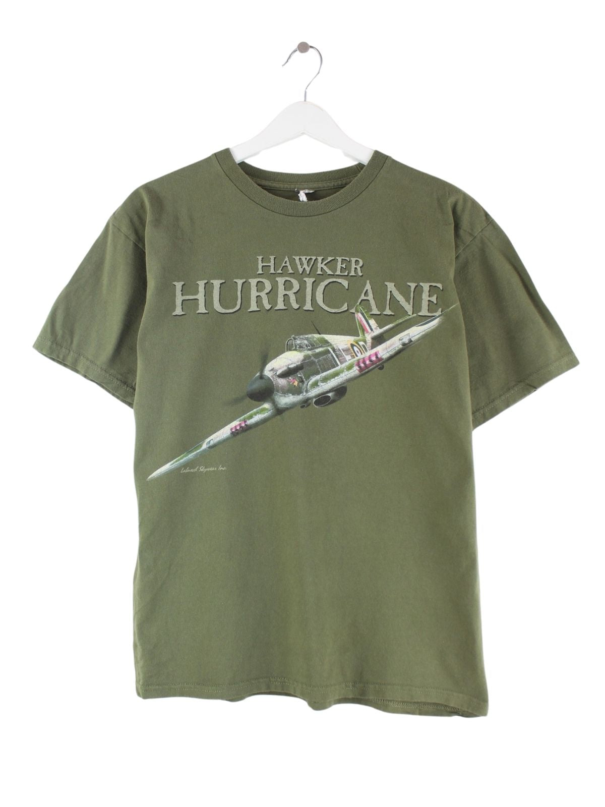 Grünes Vintage T-Shirt in Größe M. Es ist aus Baumwolle hergestellt und in sehr gutem Zustand zu haben. Mit chiquem Hurricane Print.
