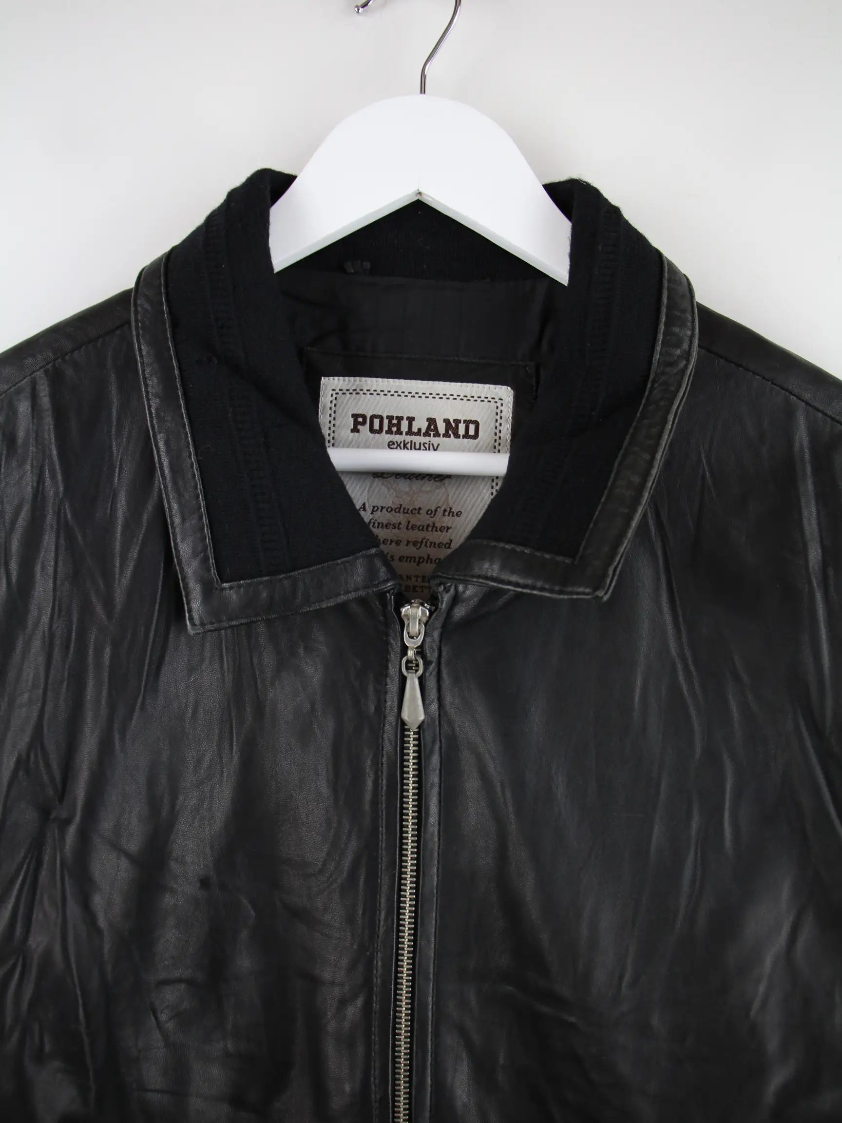Schwarze Vintage Jacke in Größe XXL. Sie ist aus Leder angefertigt und in gutem Zustand bei uns zu bekommen.
