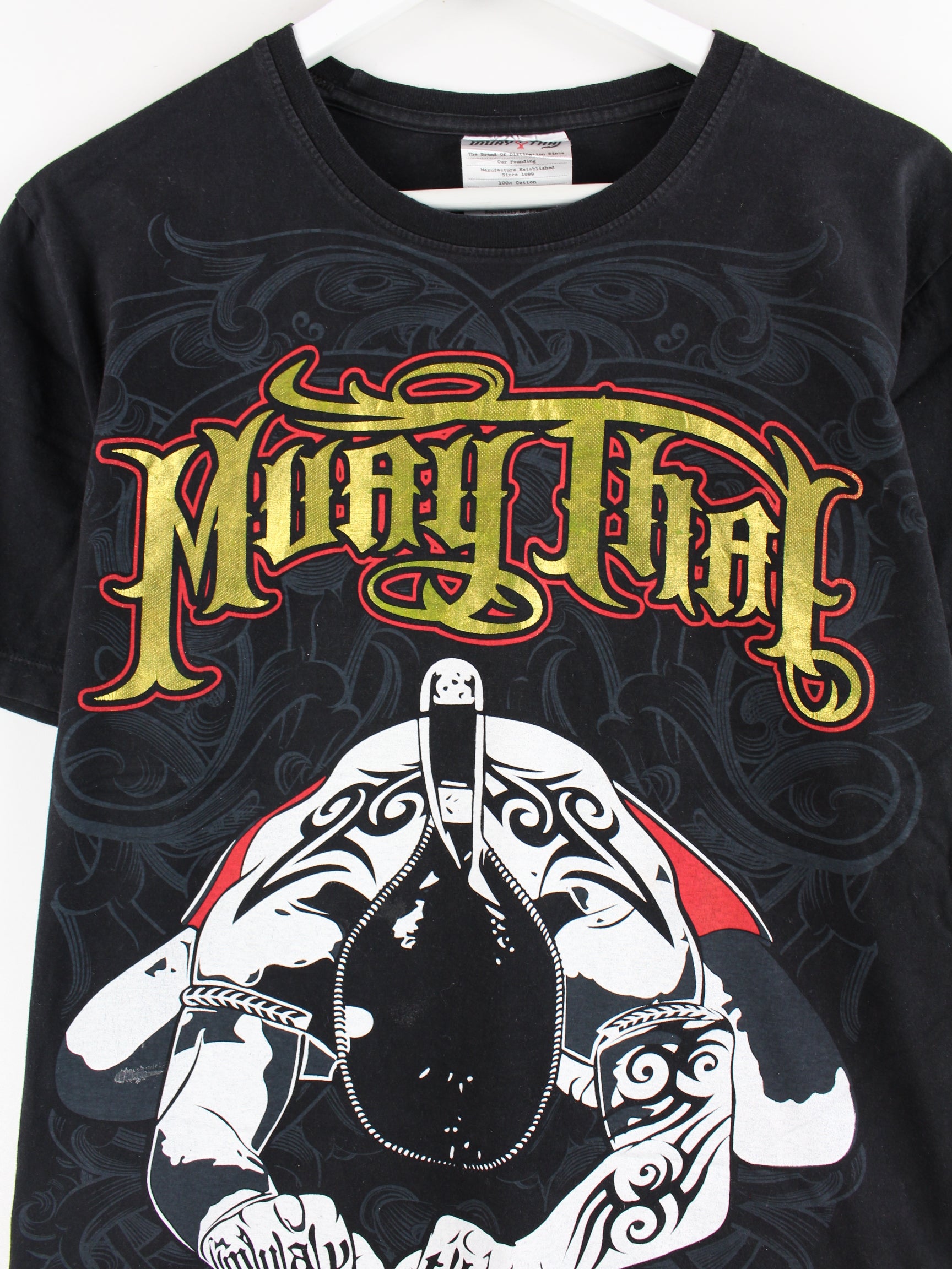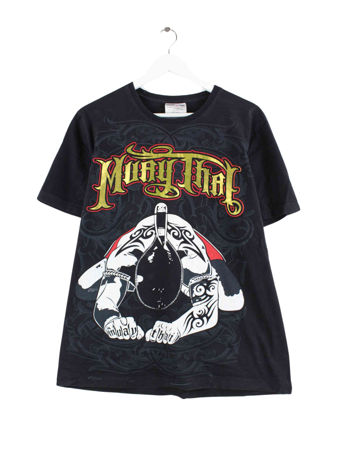 Vintage Muay Thai Print T-Shirt Schwarz S
