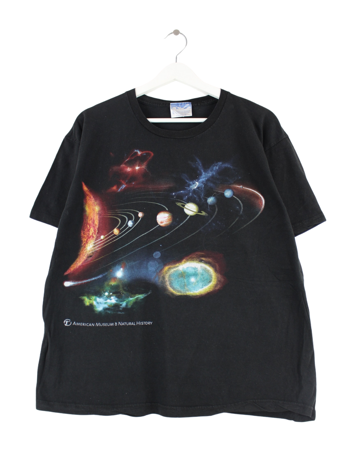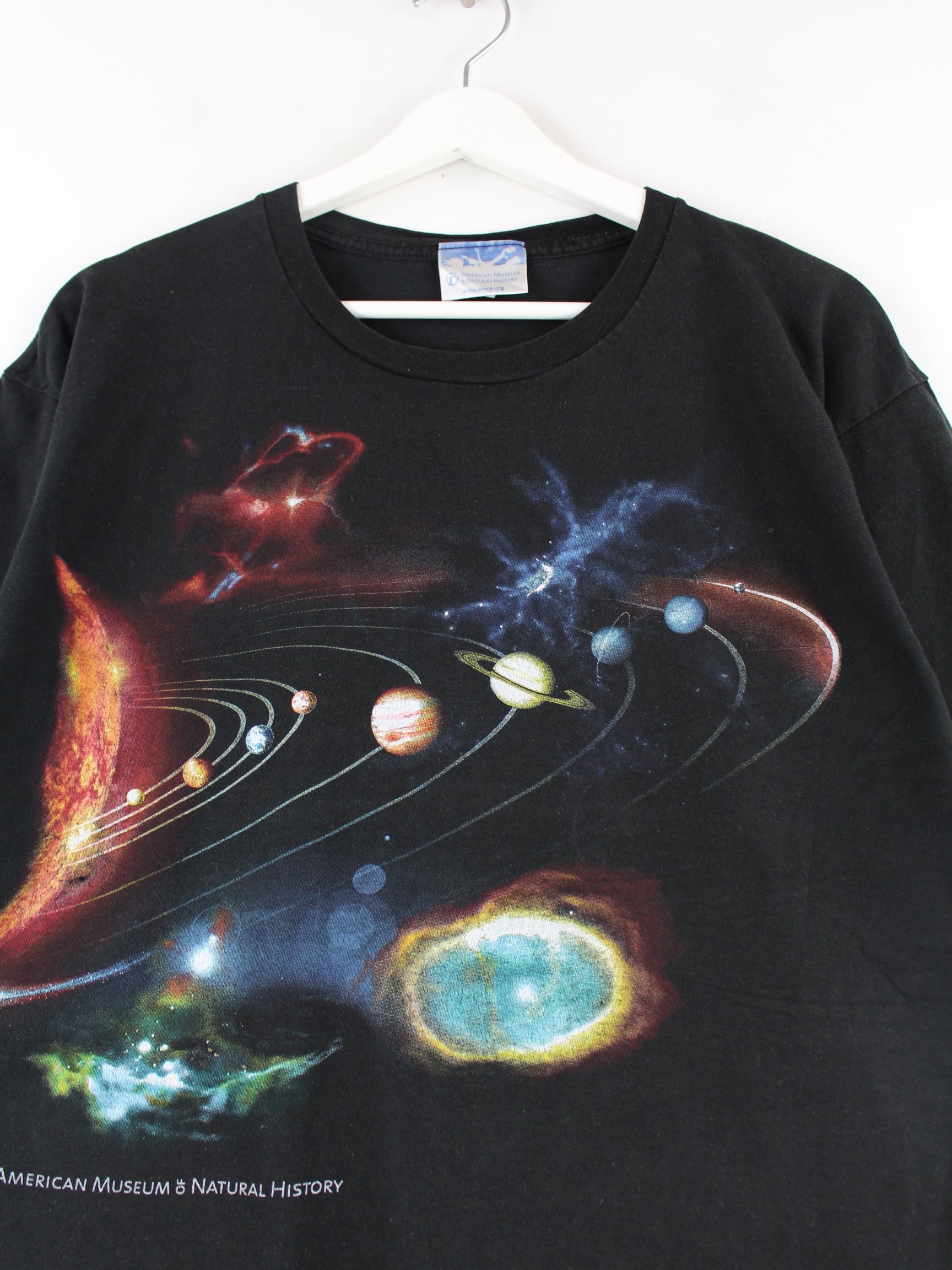 Schwarzes Vintage T-Shirt in Größe M. Es ist aus Baumwolle gemacht und in gutem Zustand zu bekommen. Mit tollem History Print.