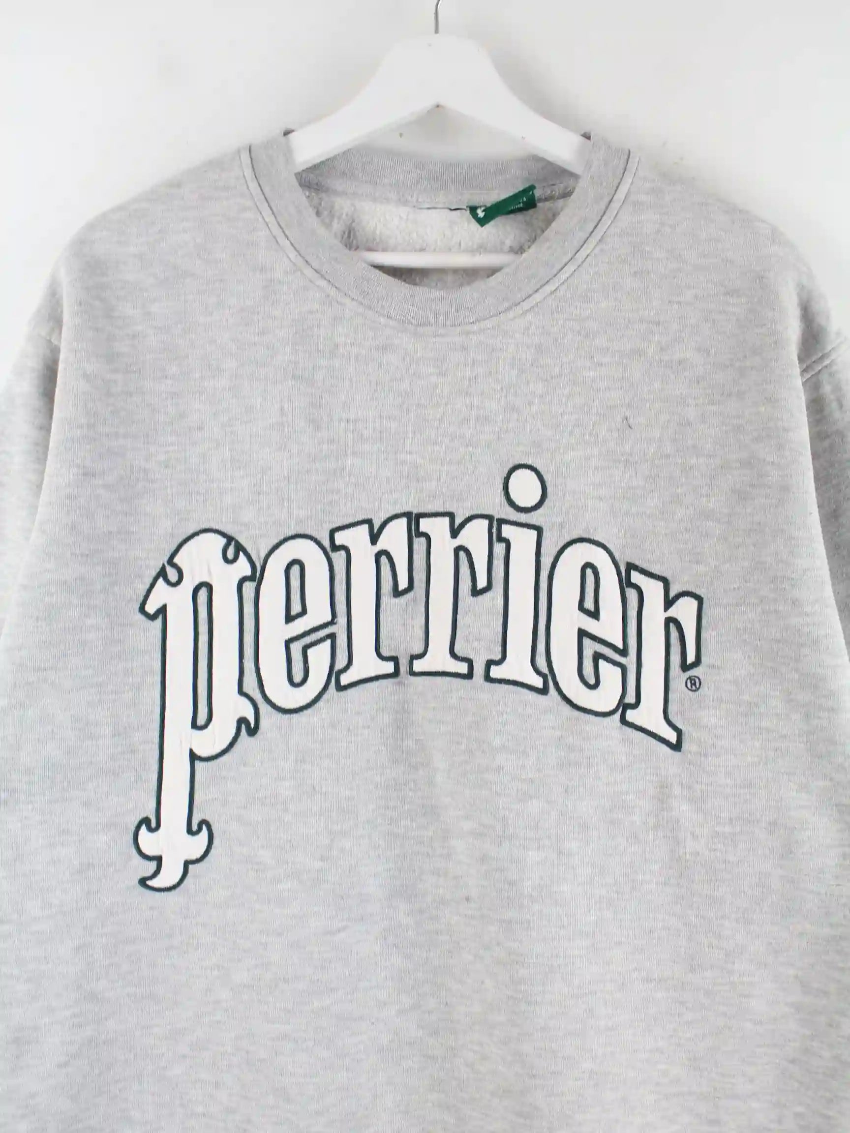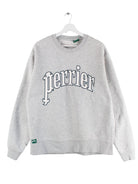 Grauer Vintage Sweater mit gesticktem Logo in Größe XL. Er ist aus einer Baumwollmischung gemacht und in sehr gutem Zustand bei uns vorrätig.