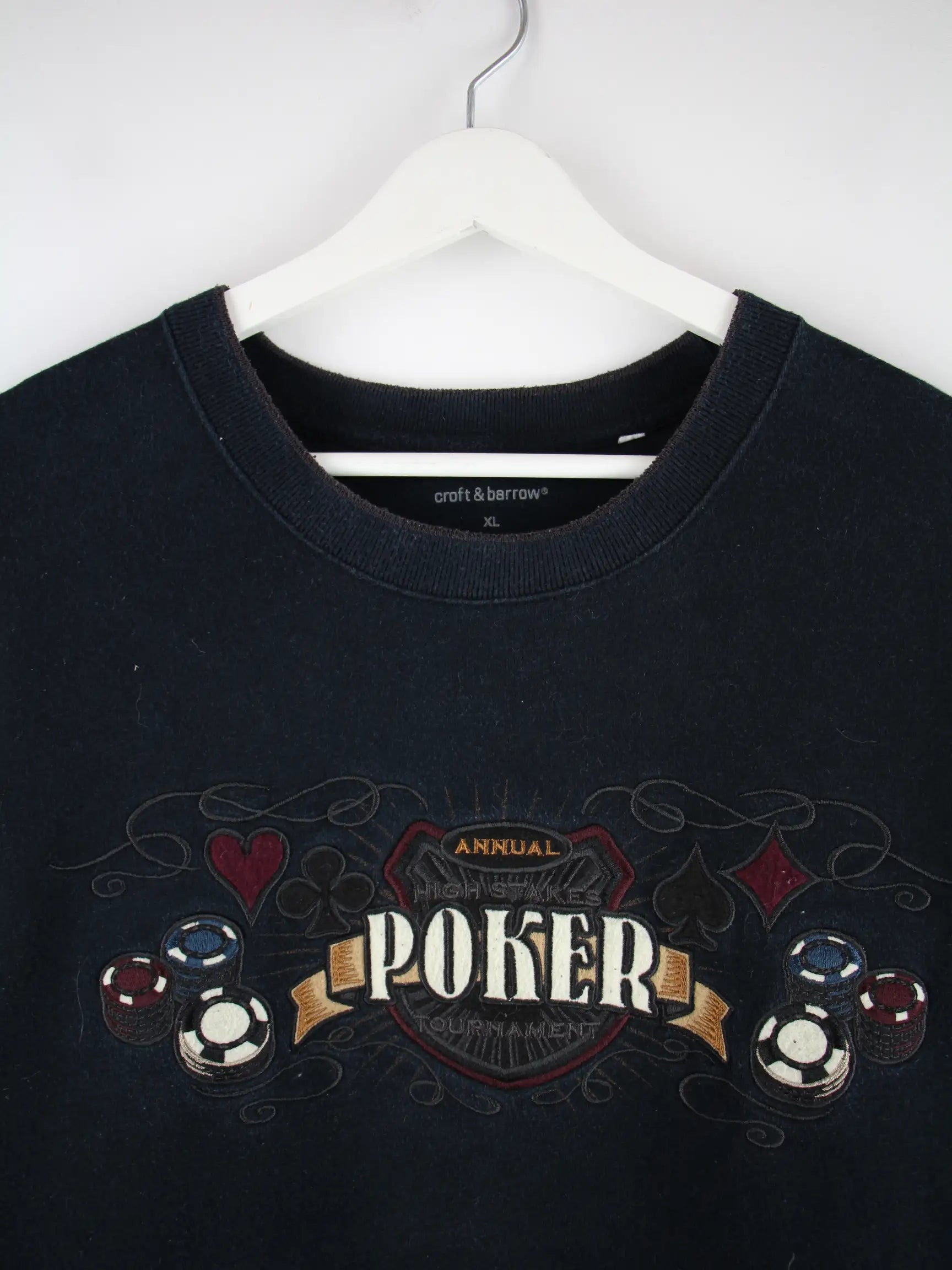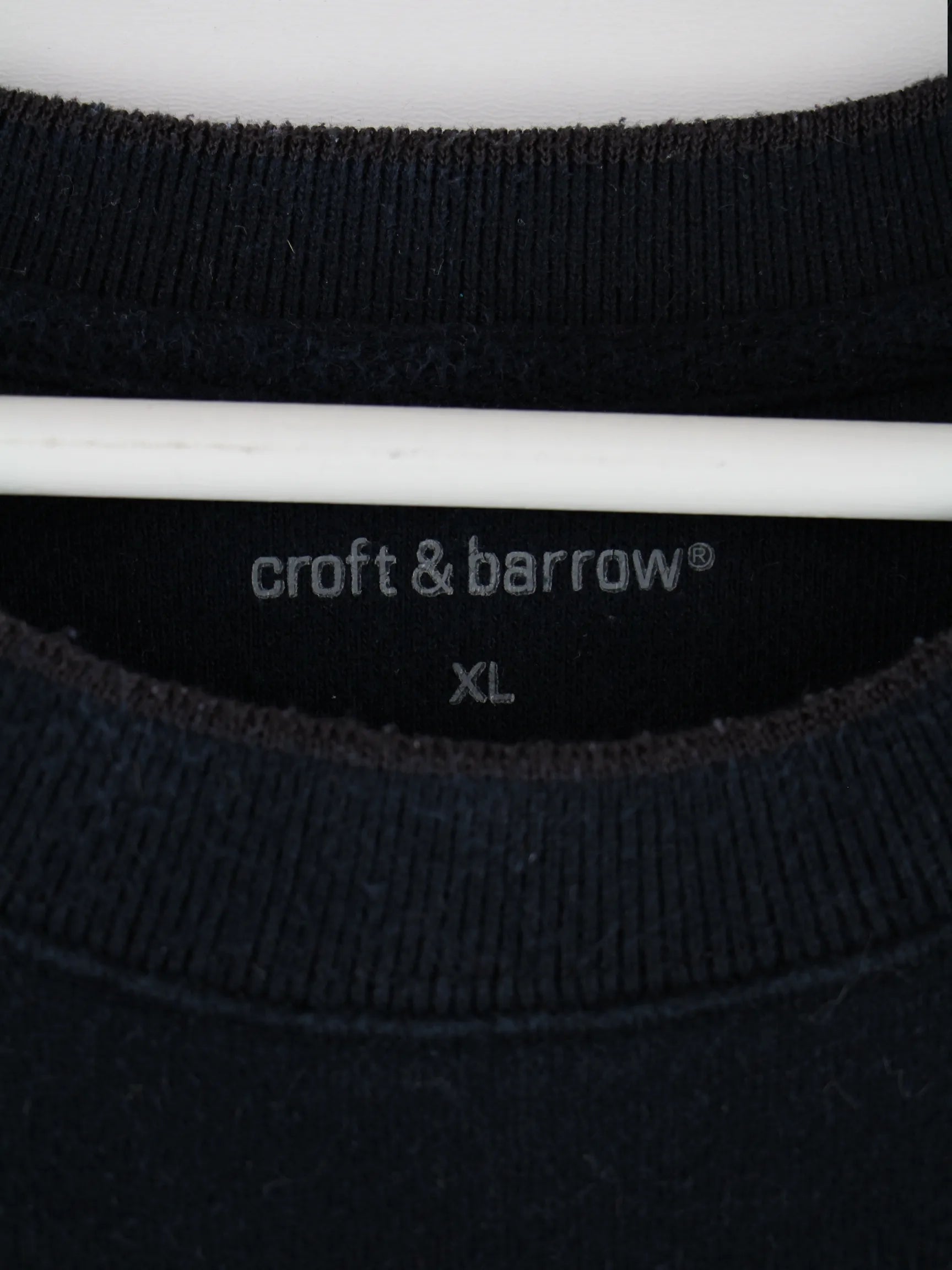 Vintage Sweater in Größe XL. Er ist aus einer Baumwollmischung hergestellt und in Schwarz im Bestand.