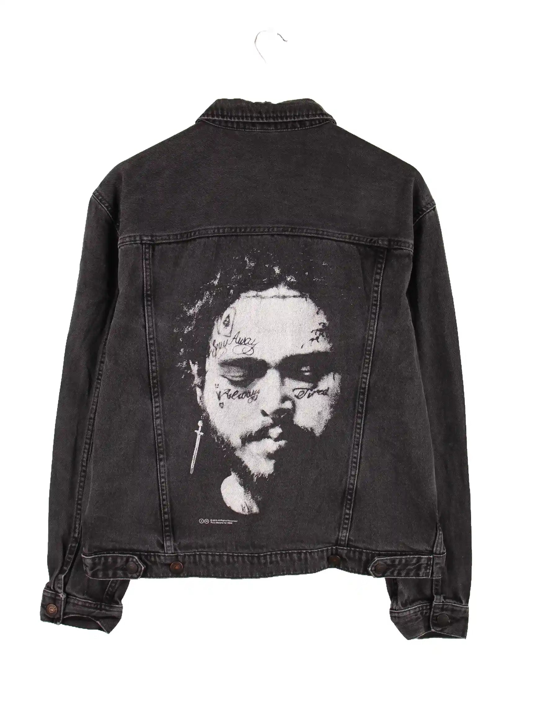 Vintage Post Malone Print Jeans Jacke Grau M