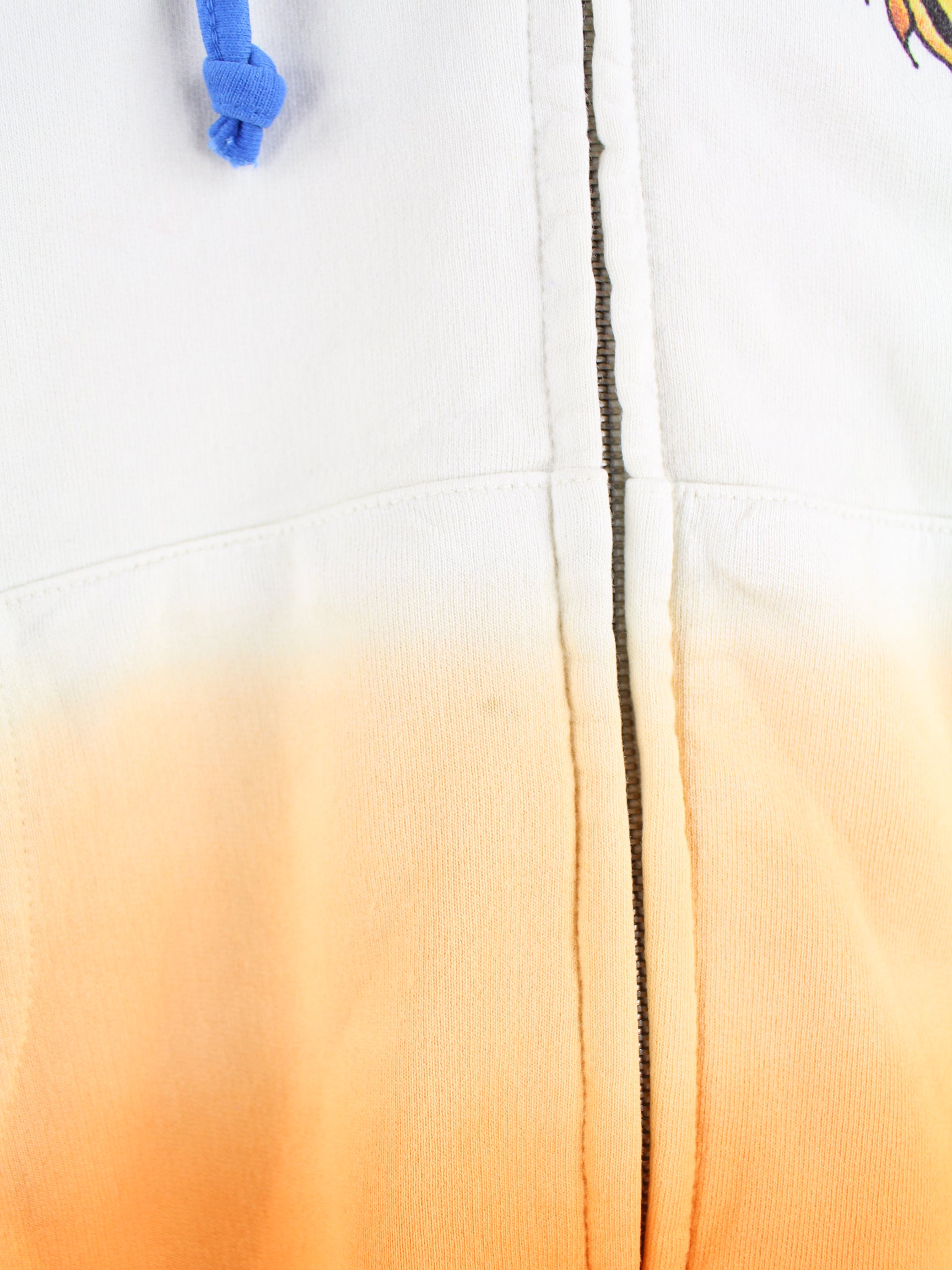 Vintage Hoodie mit langem Reißverschluß in Größe S. Er ist aus einer Baumwollmischung und in bunten Farben in Stock. Mit seltenem undefined Print.