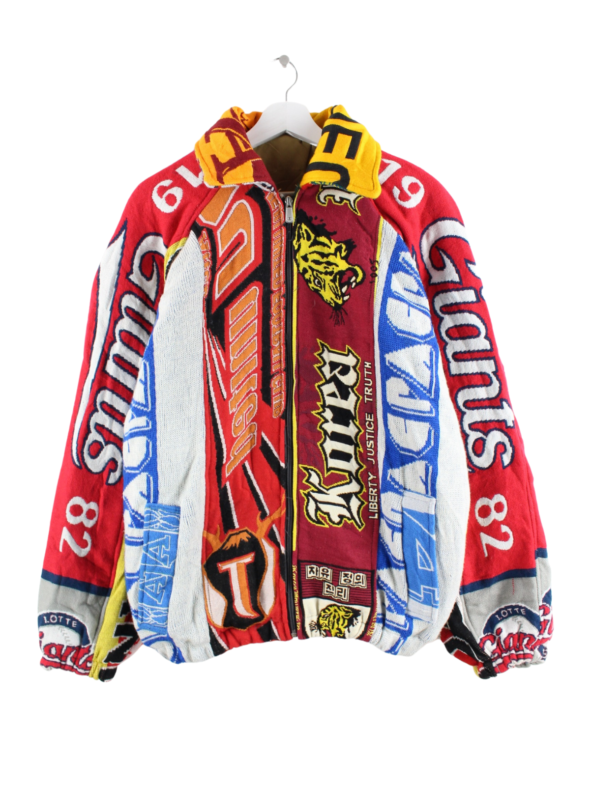 Vintage Rework Patchwork Schal Jacke Mehrfarbig L