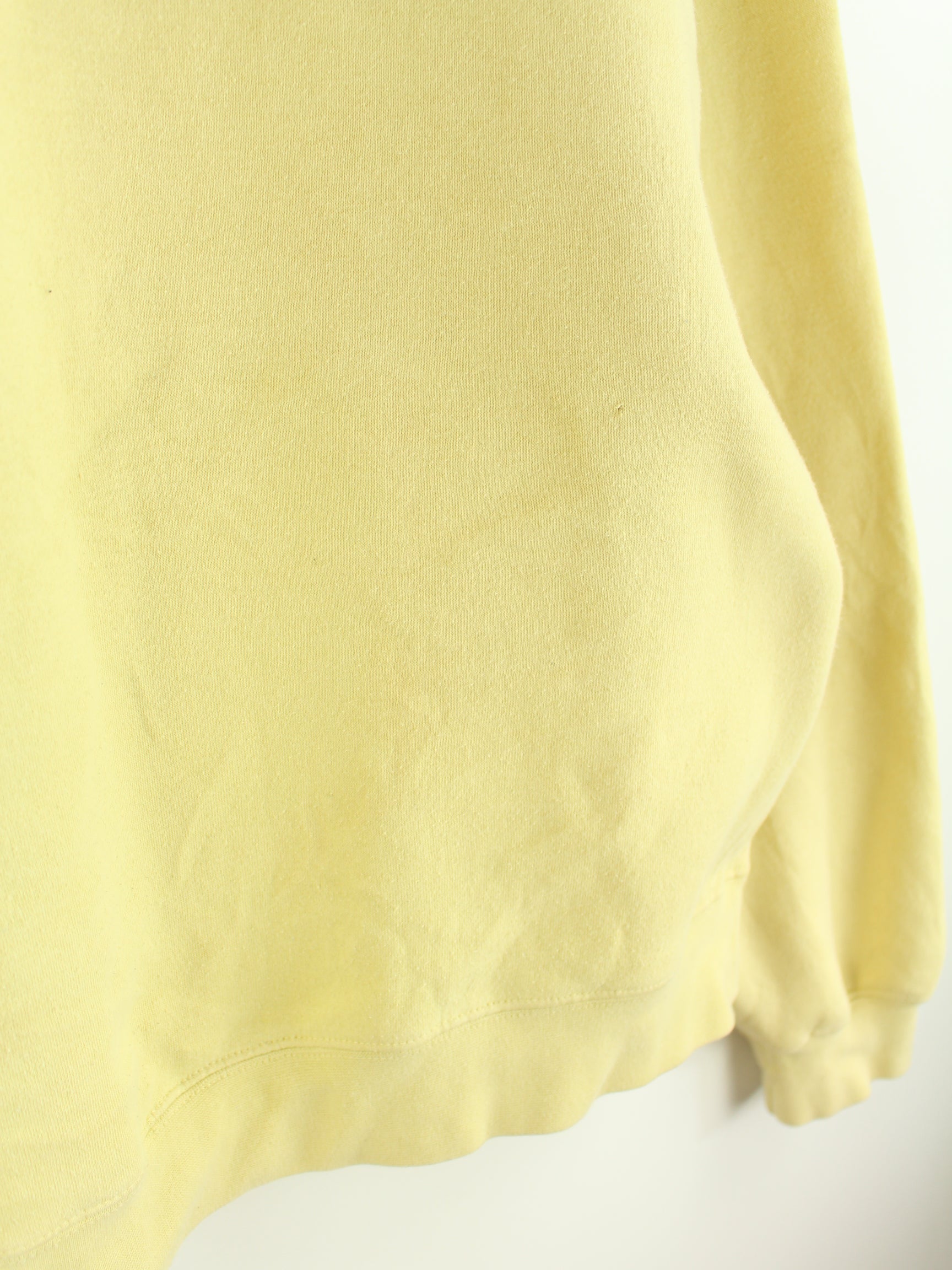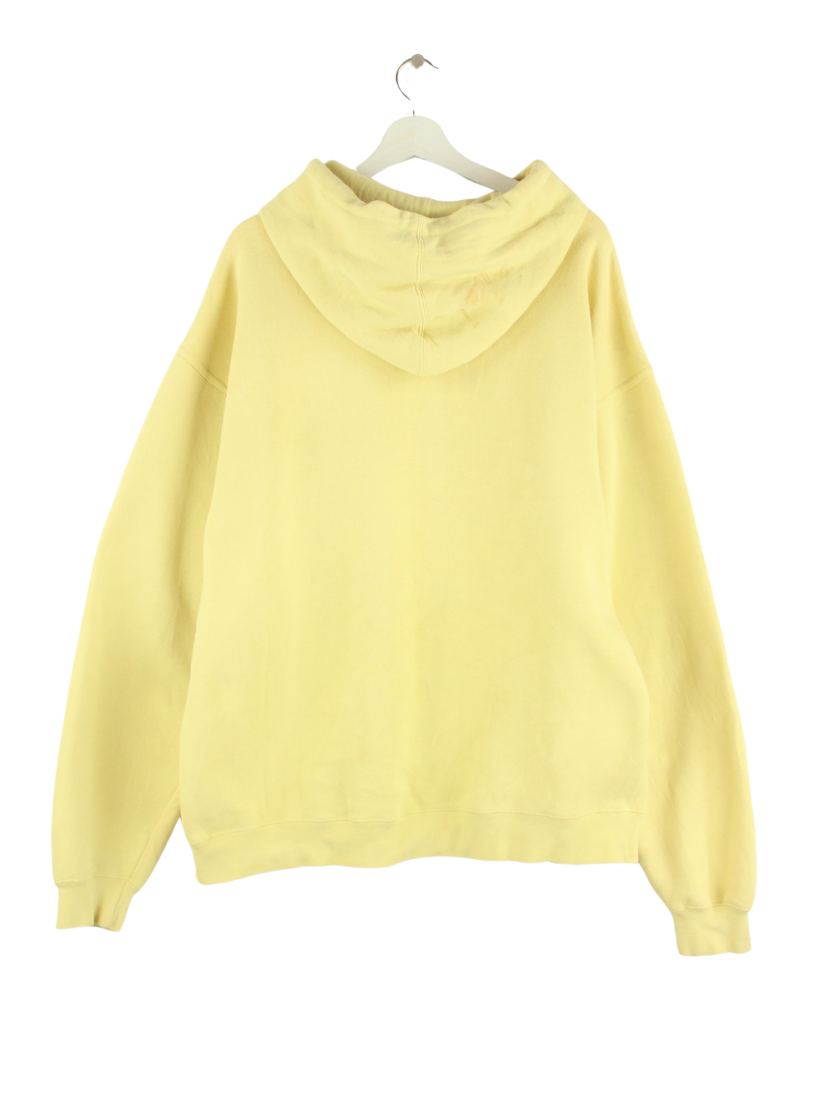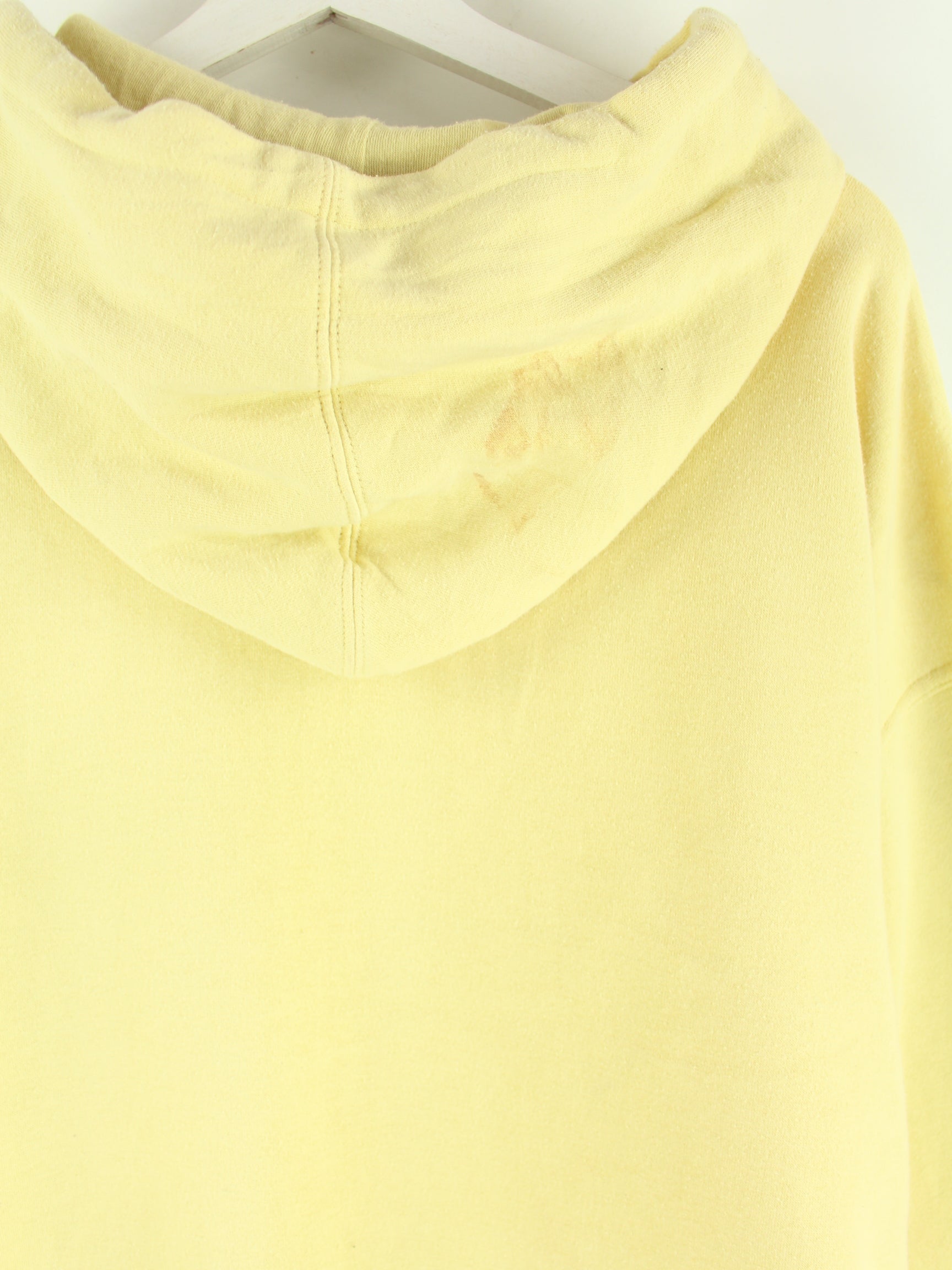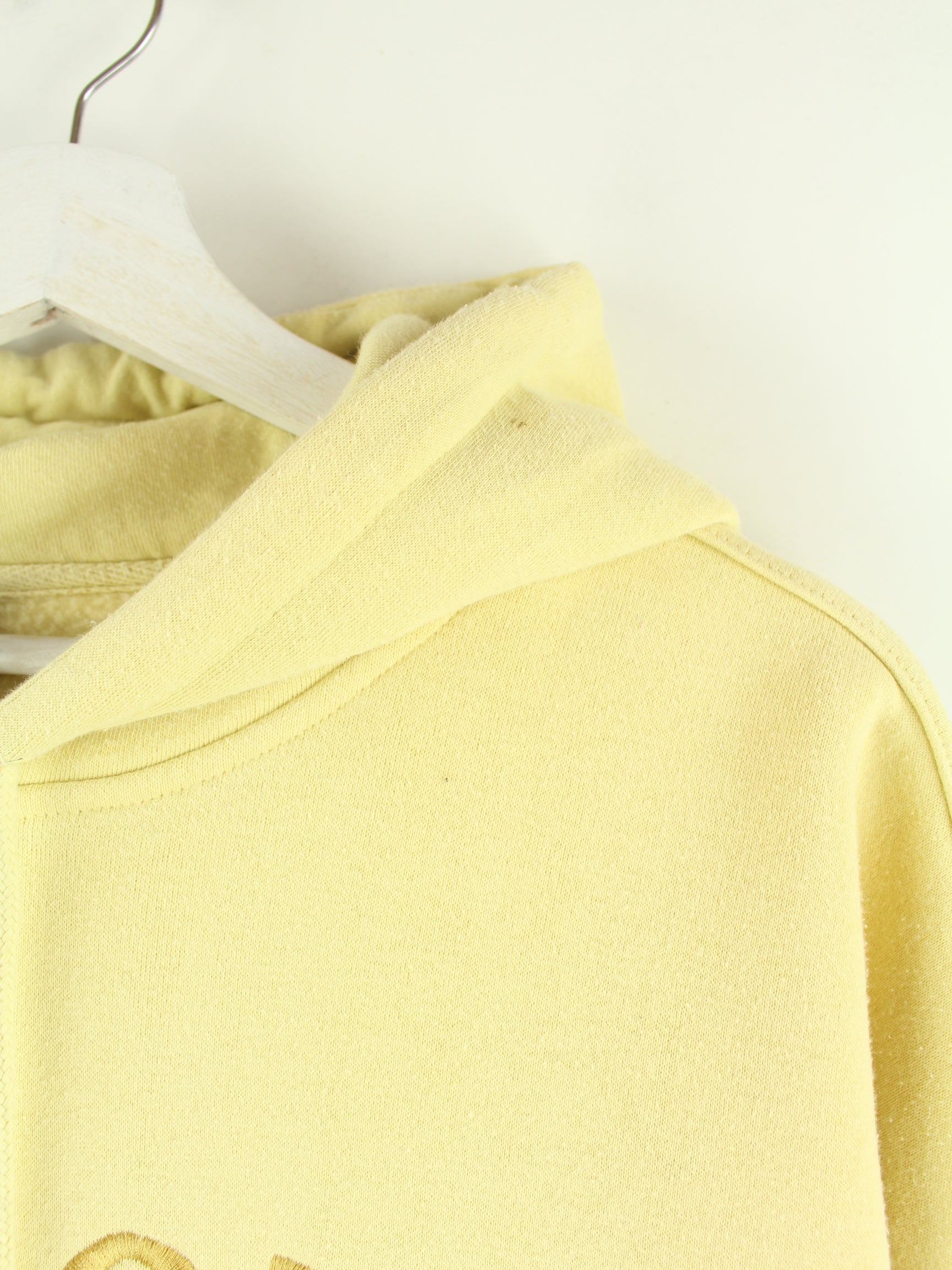 Gelber Vintage Hoodie mit gesticktem Logo aus Anfang der 2000'er in Größe XL. Er ist aus einer Baumwollmischung produziert und in gutem Zustand im Bestand.
