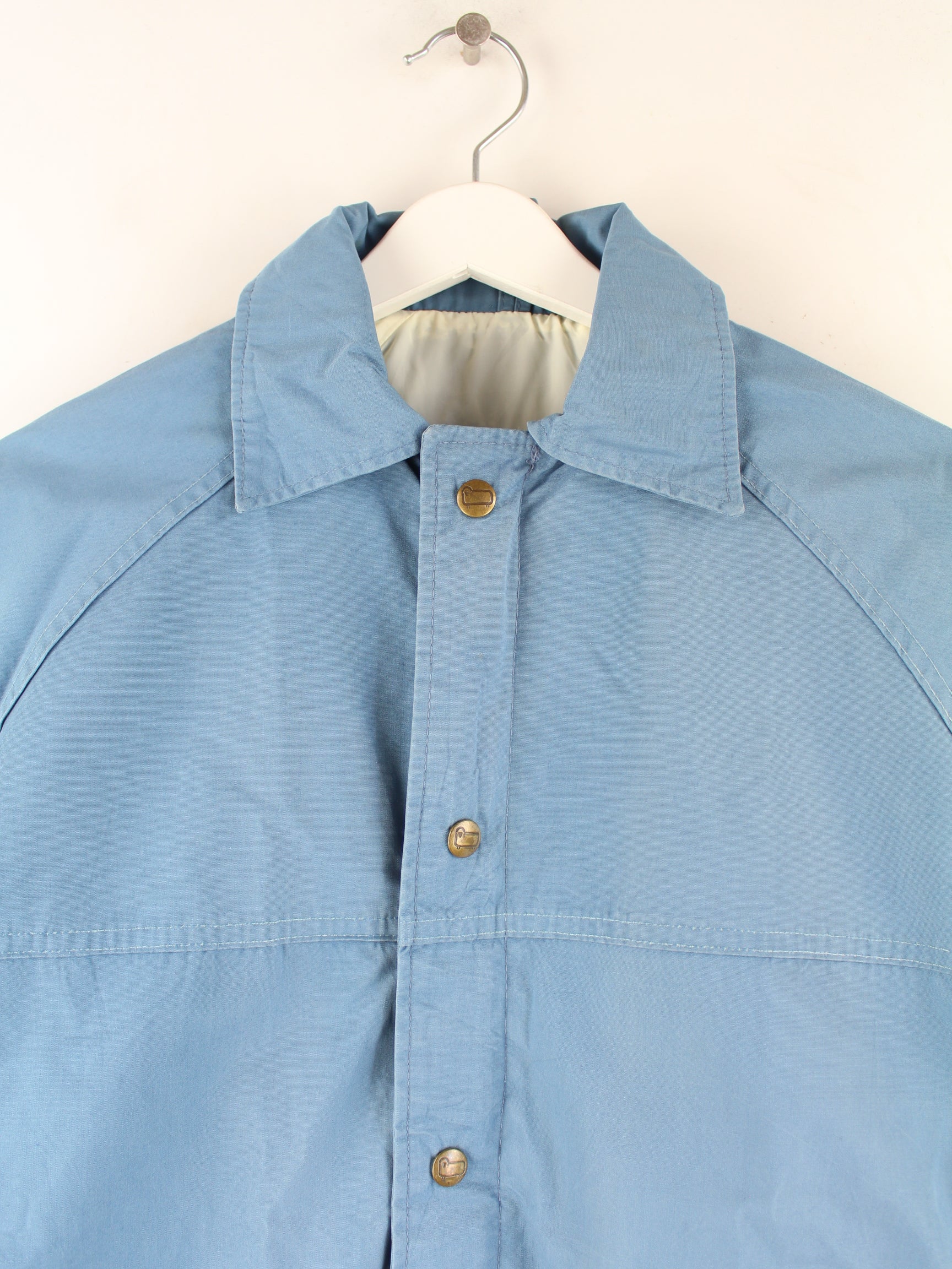 Leichte Jacke der Marke Woolrich in Größe M aus den 90'ern. Sie ist aus Synthetik hergestellt und in Blau auf Lager.